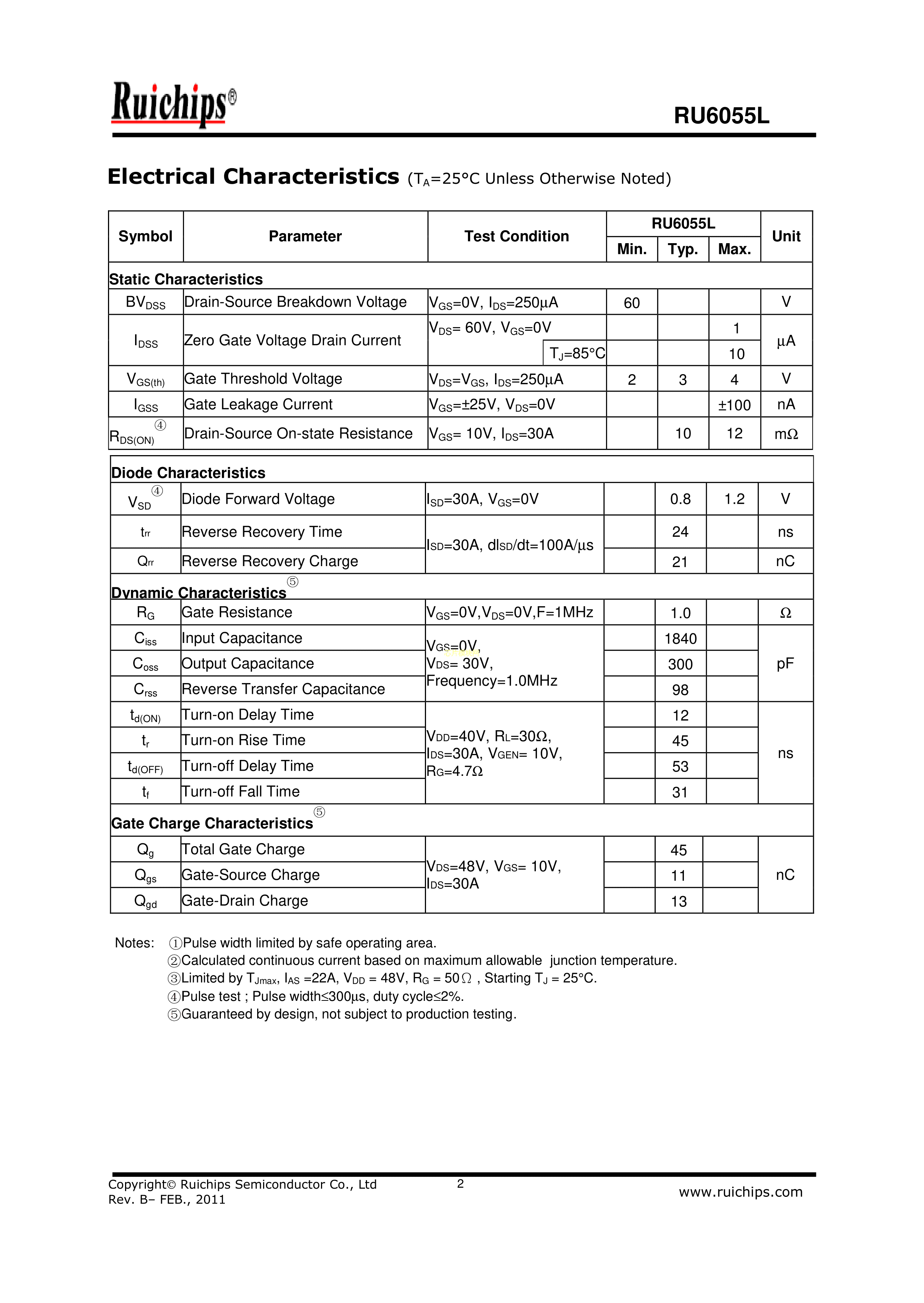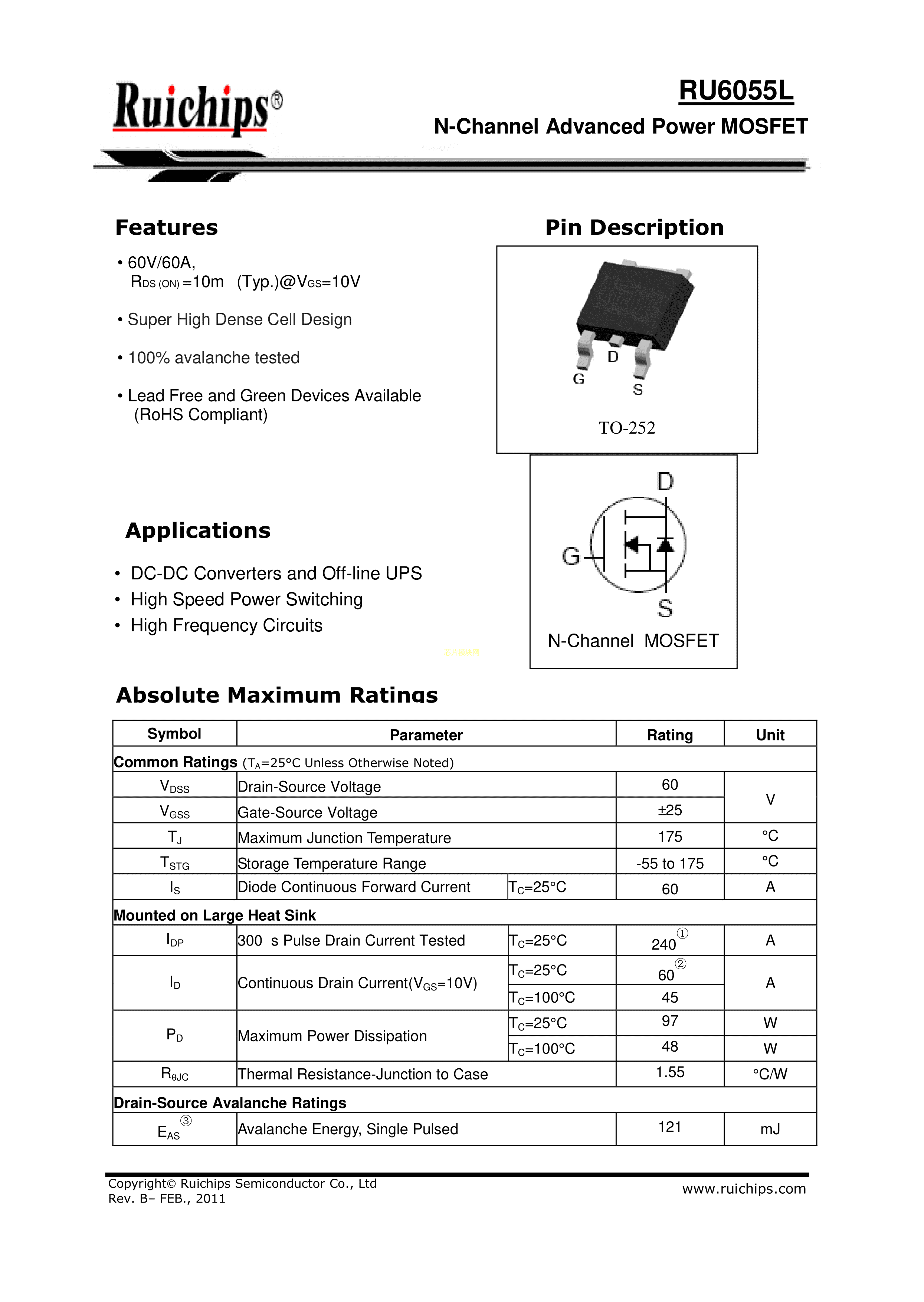RU6055L数据手册TO-252-2(DPAK)封装Ruichips(锐骏半导体)PDF规格书,中