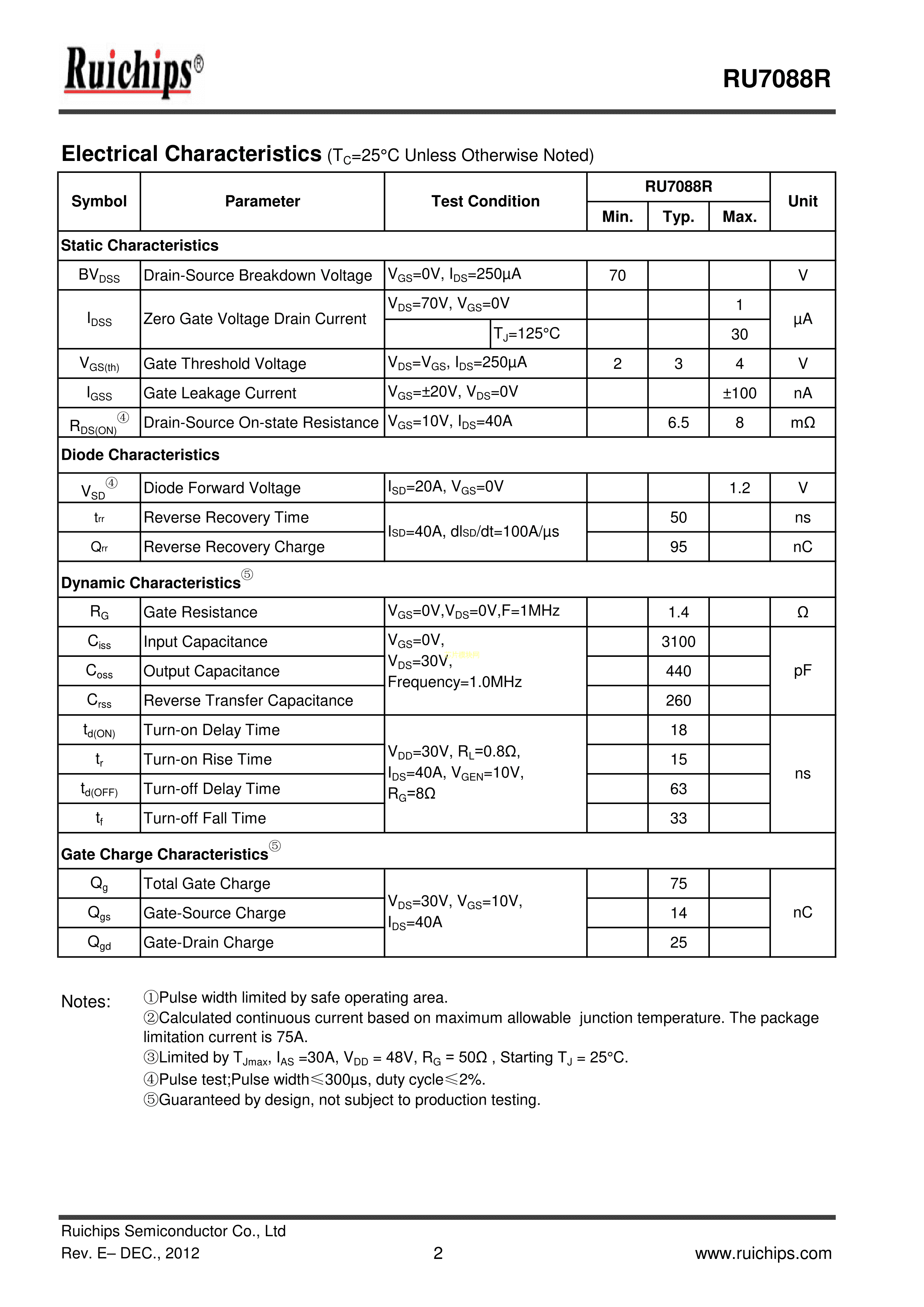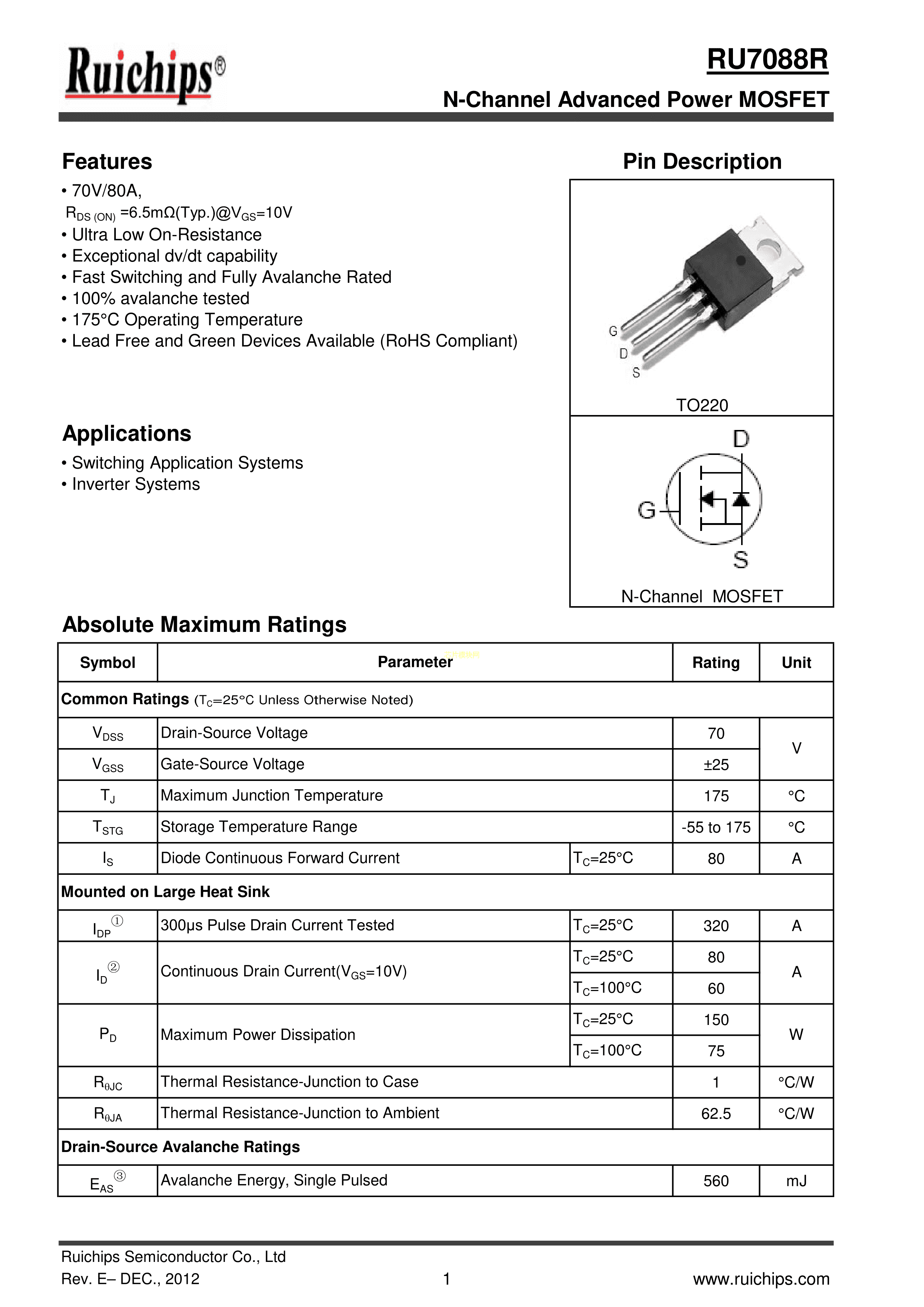 RU7088R数据手册TO-220封装Ruichips(锐骏半导体)PDF规格书,中英文下载