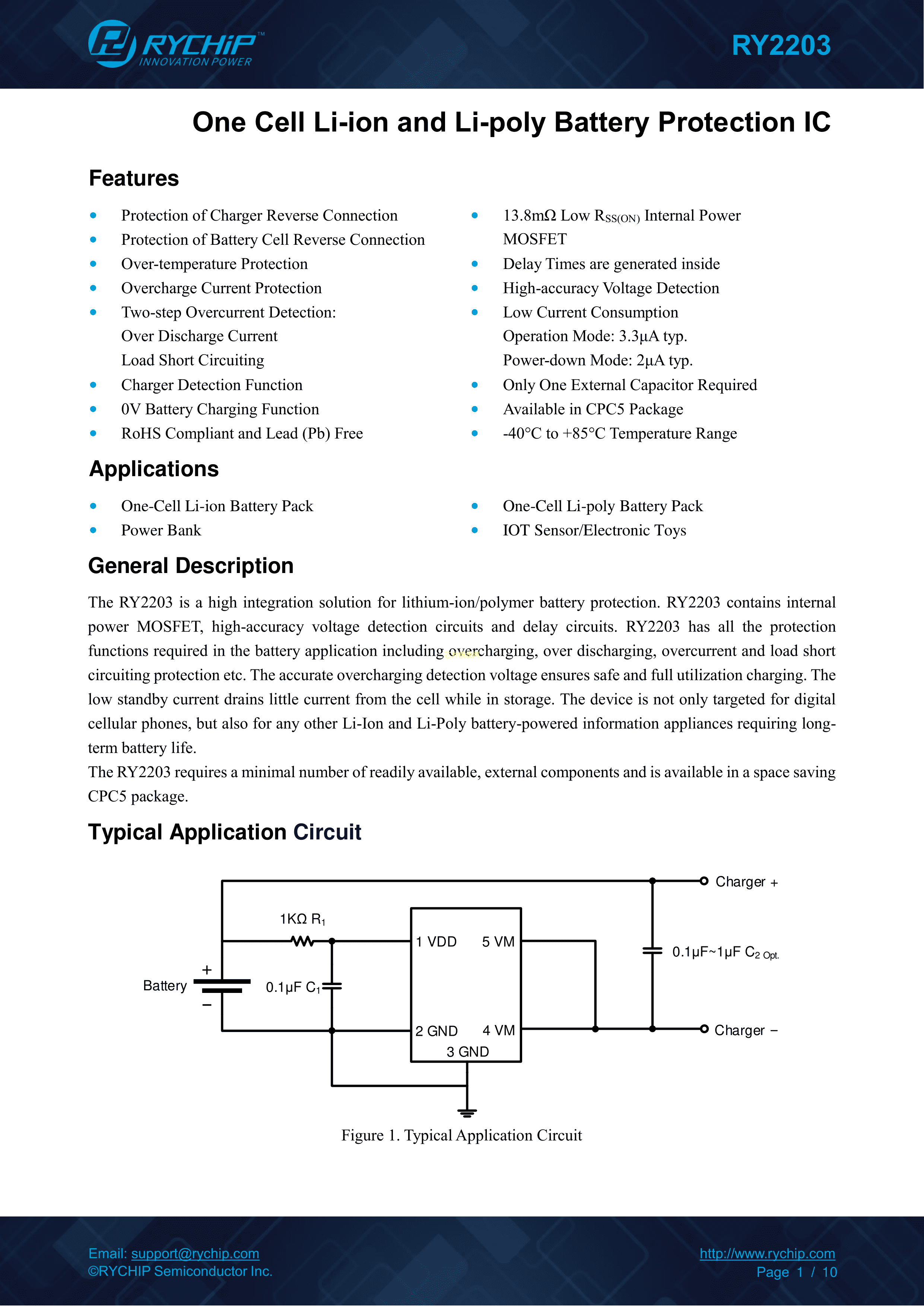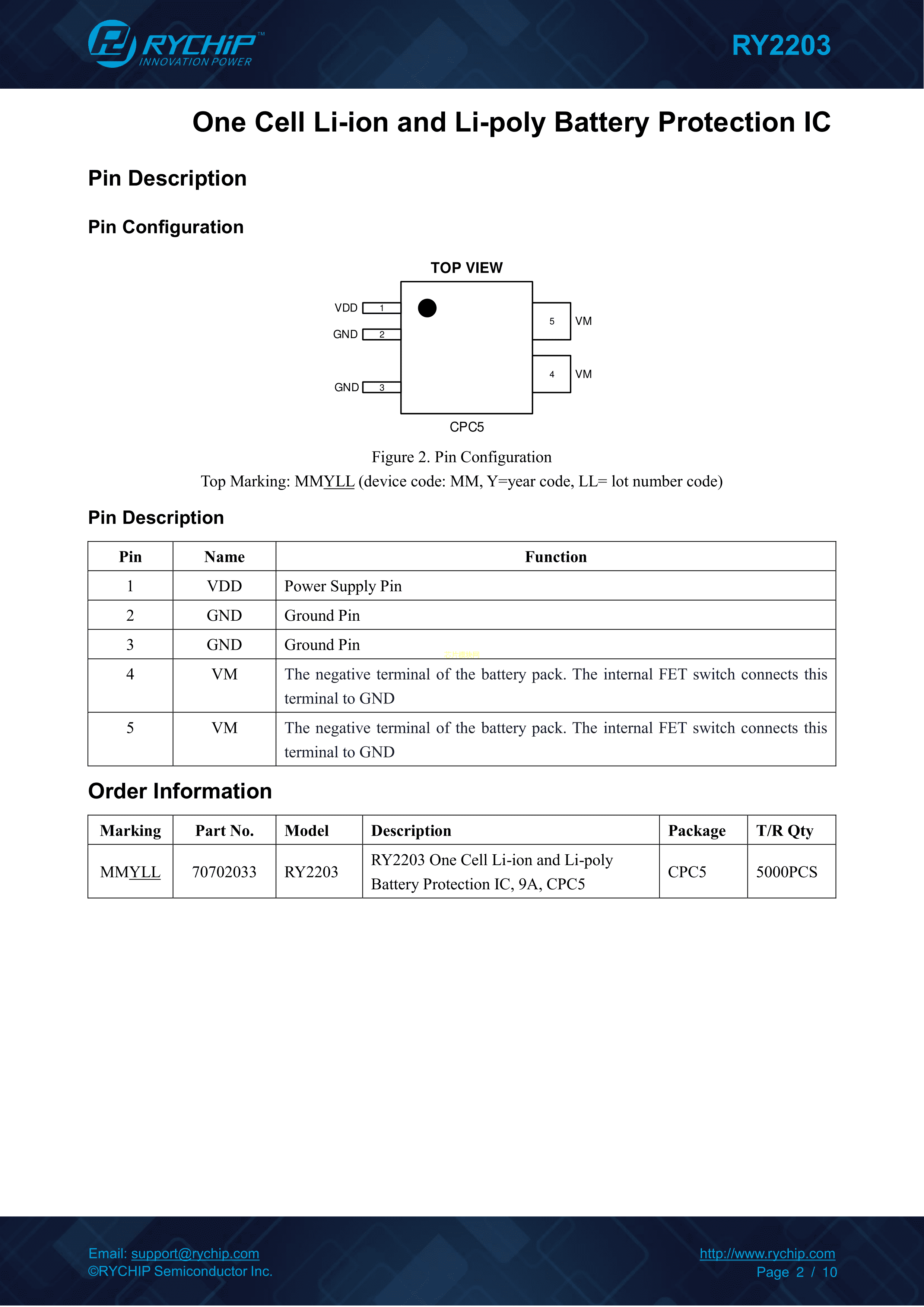 RY2203数据手册CPC5封装RYCHiP(蕊源)PDF规格书,中英文下载
