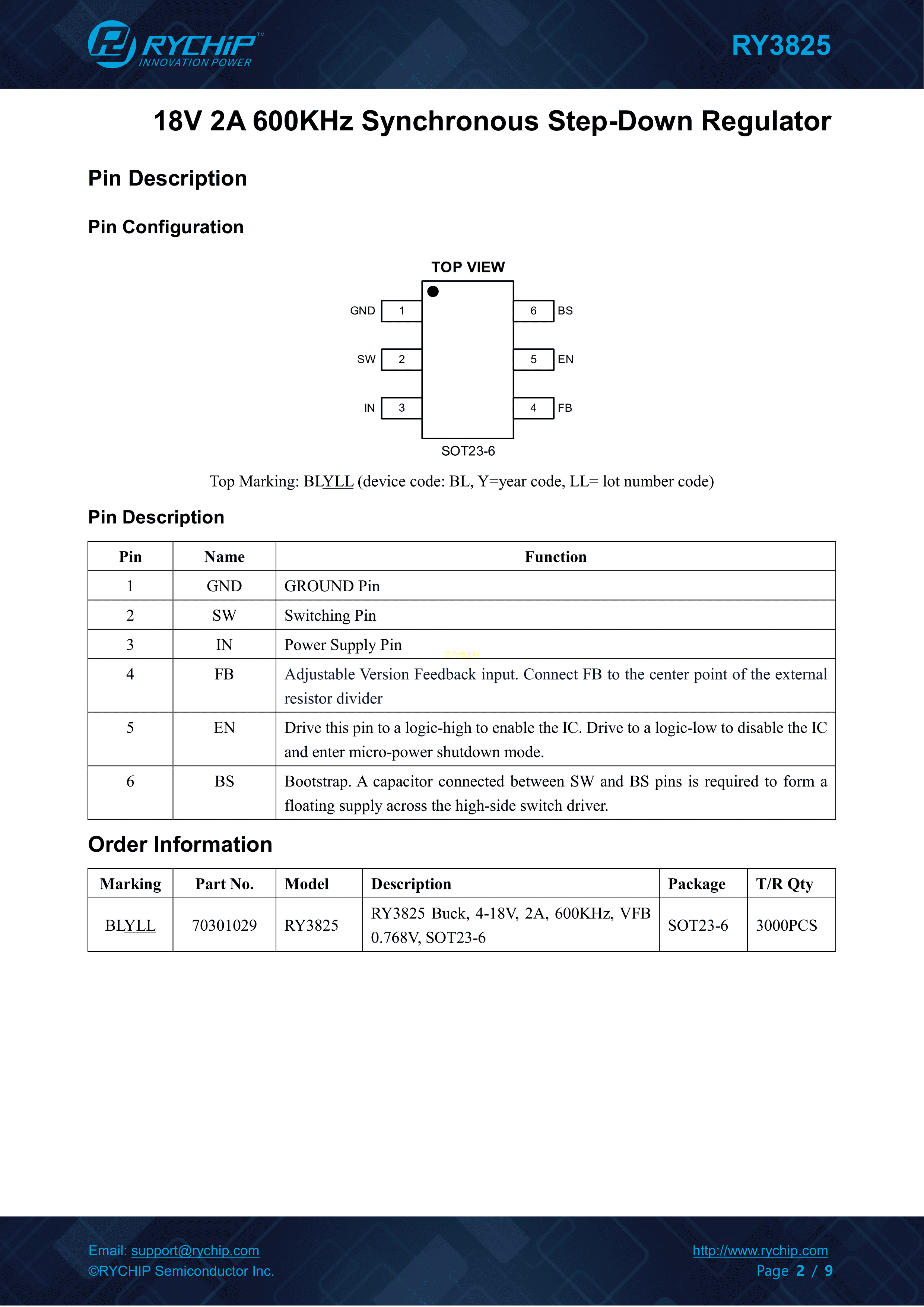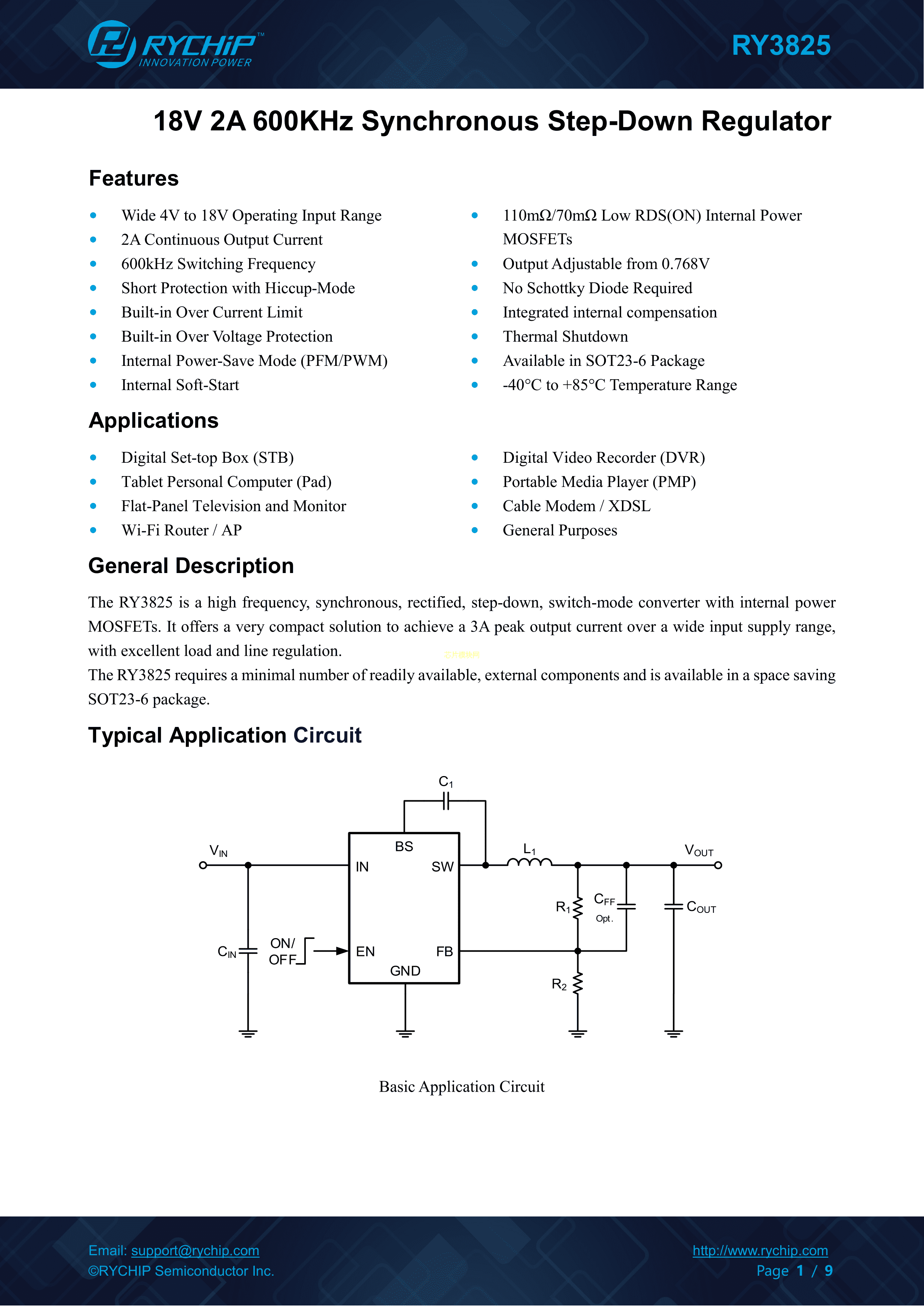 RY3825SOT23-6封装PDF规格书,中英文下载