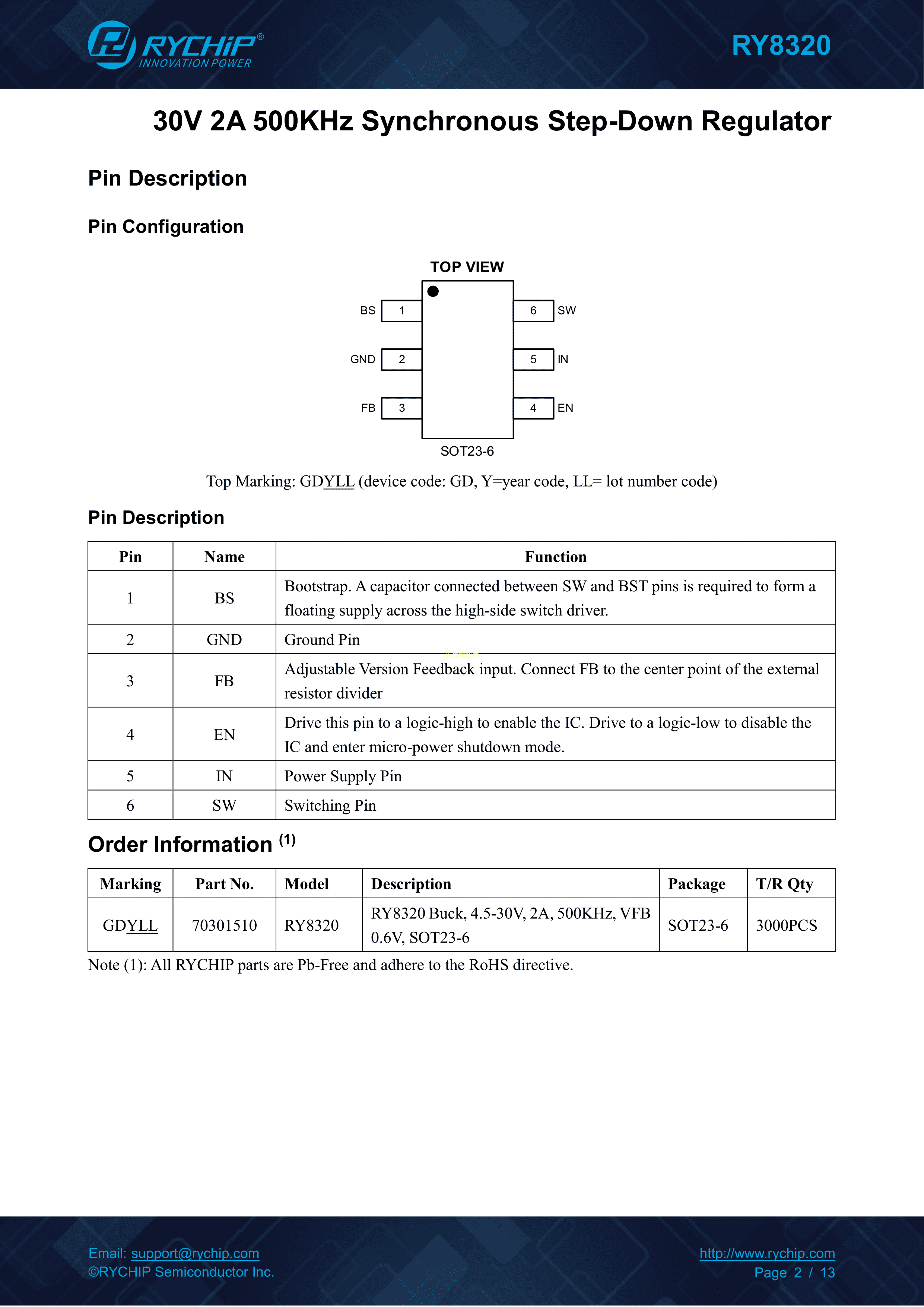 RY8320封装SPT23-6PDF规格书,中英文下载