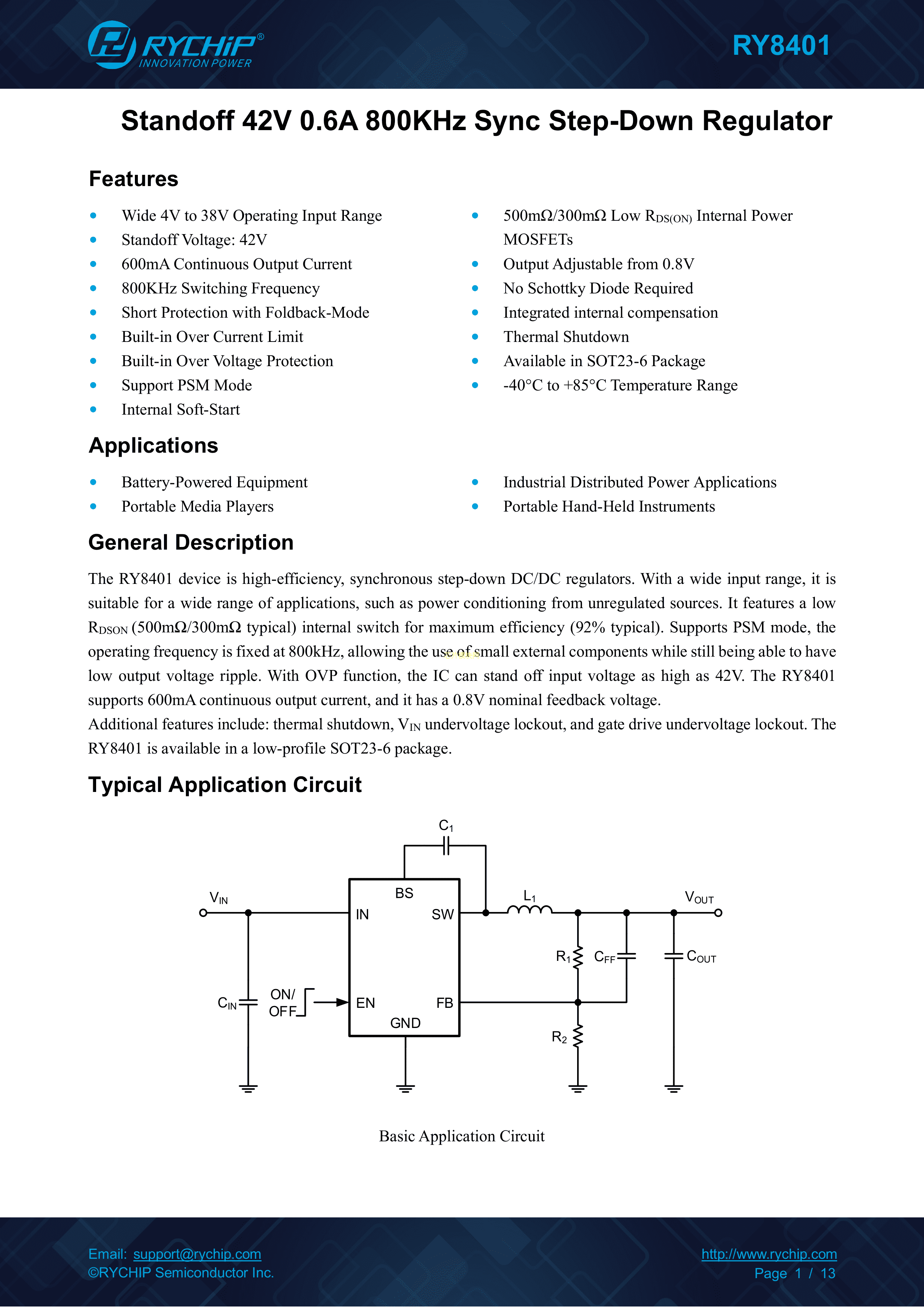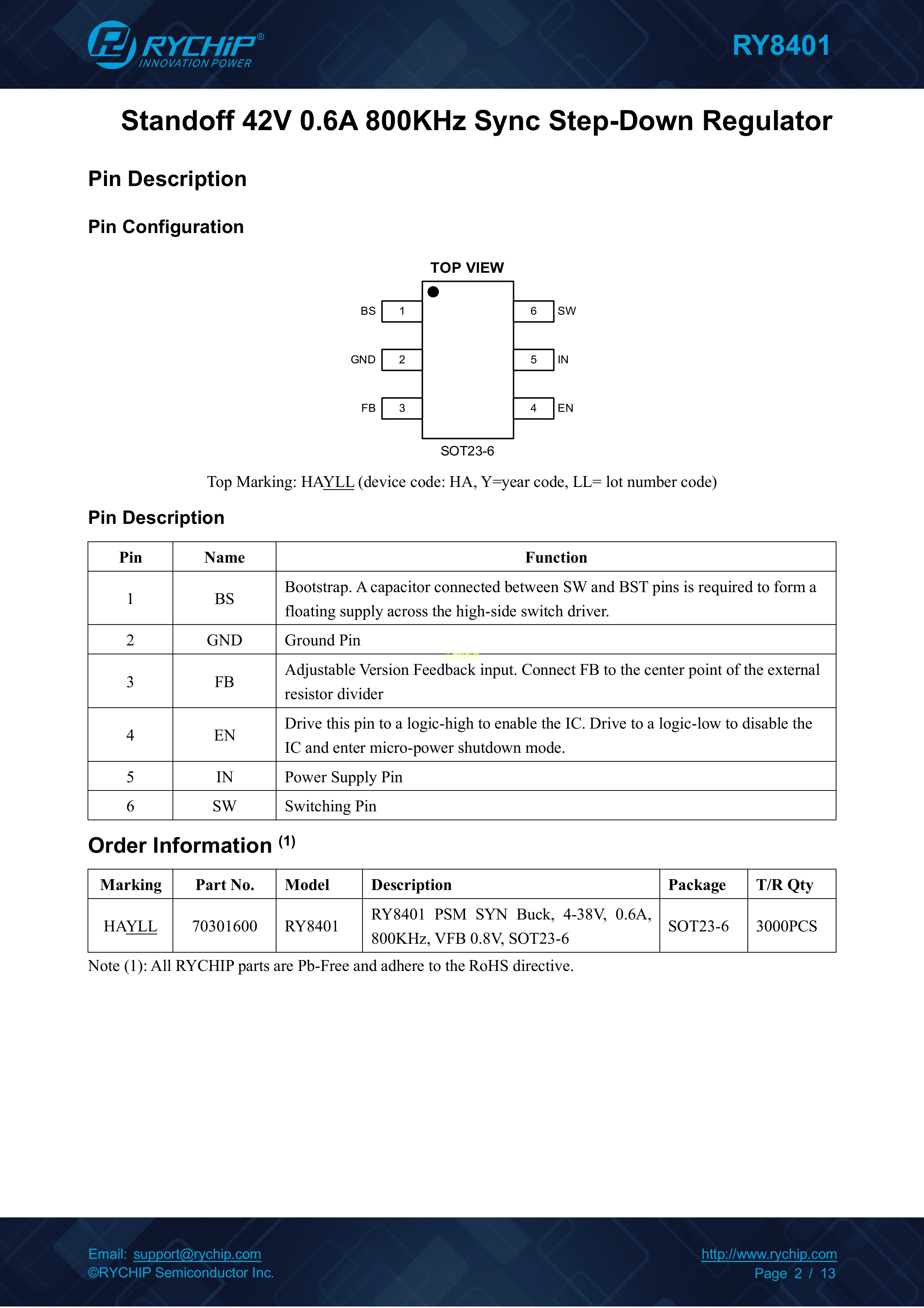 RY8401封装SPT23-6PDF规格书,中英文下载