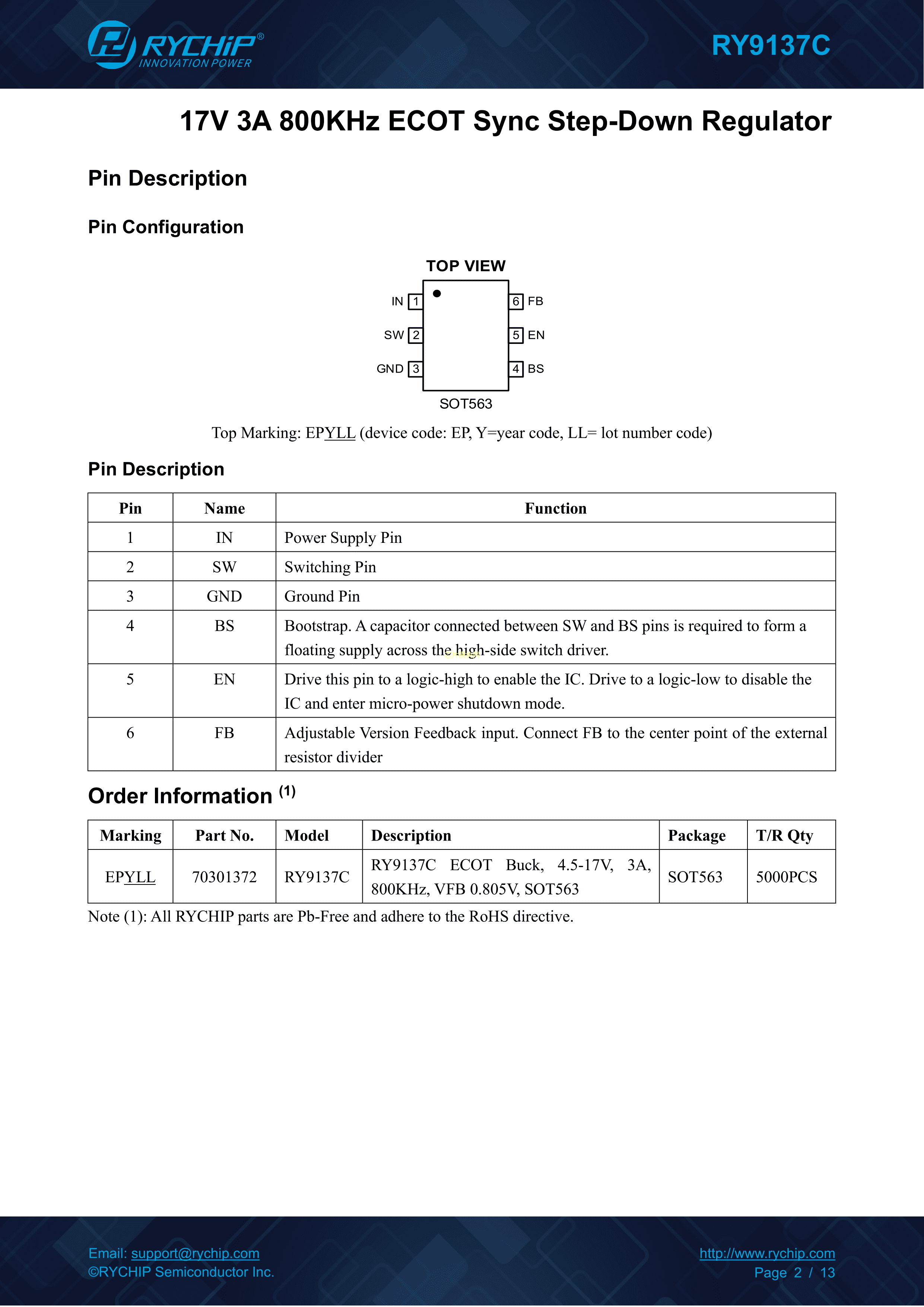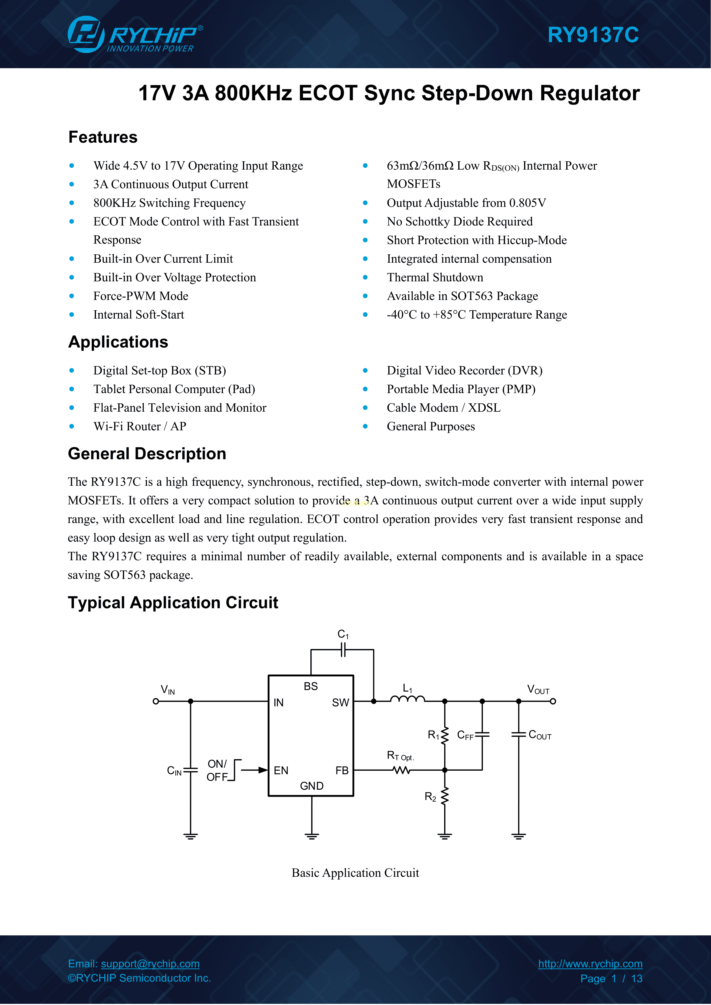 RY9137C数据手册SOT-563封装RYCHiP(蕊源)PDF规格书,中英文下载