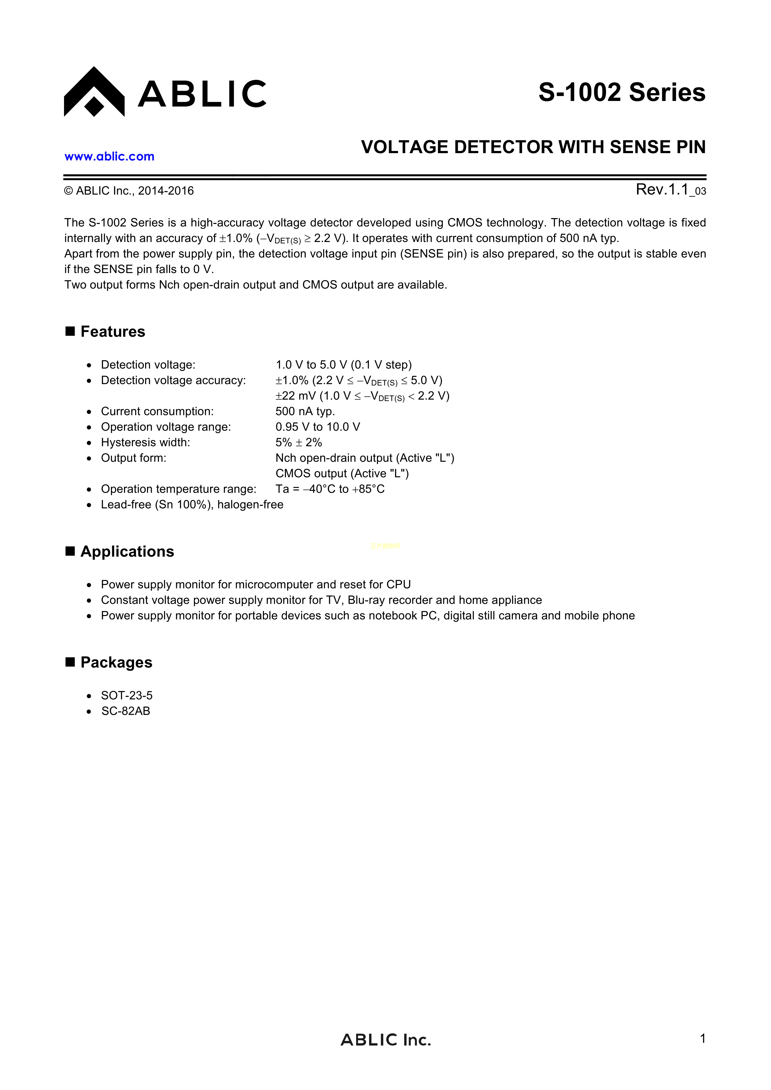 S-1002CA15I-M5T1U数据手册SOT-23-5封装ABLIC(艾普凌科)PDF规格书,中