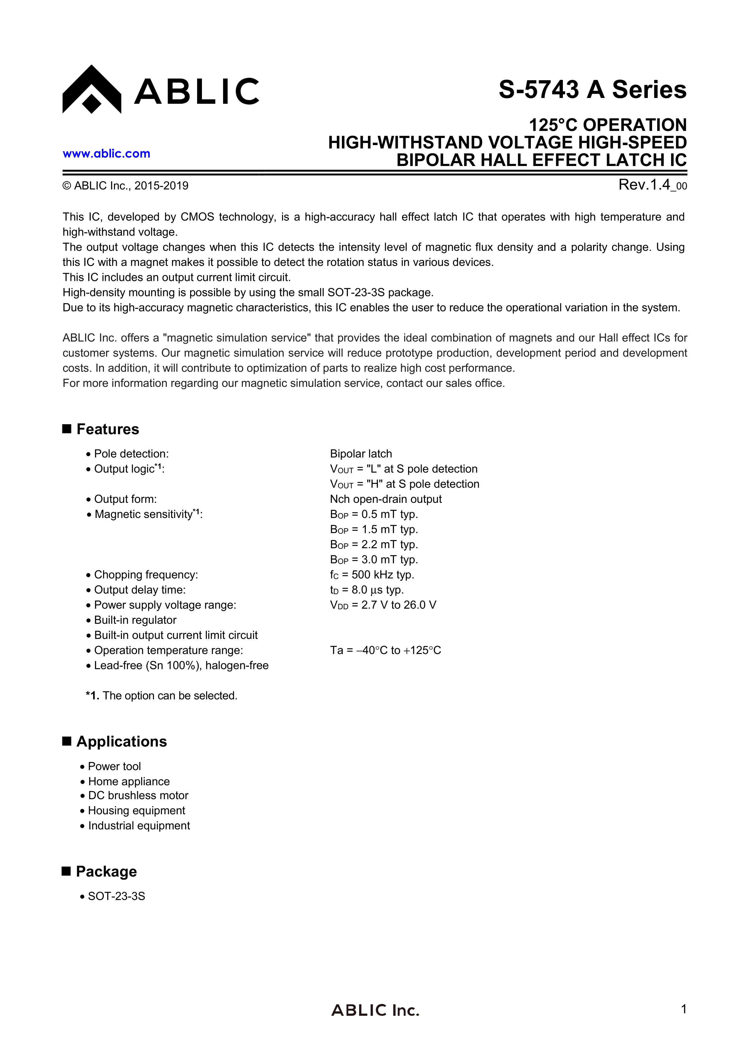 S-5743NBH9A-M3T4U数据手册SOT-23-3S封装ABLIC(艾普凌科)PDF规格书,