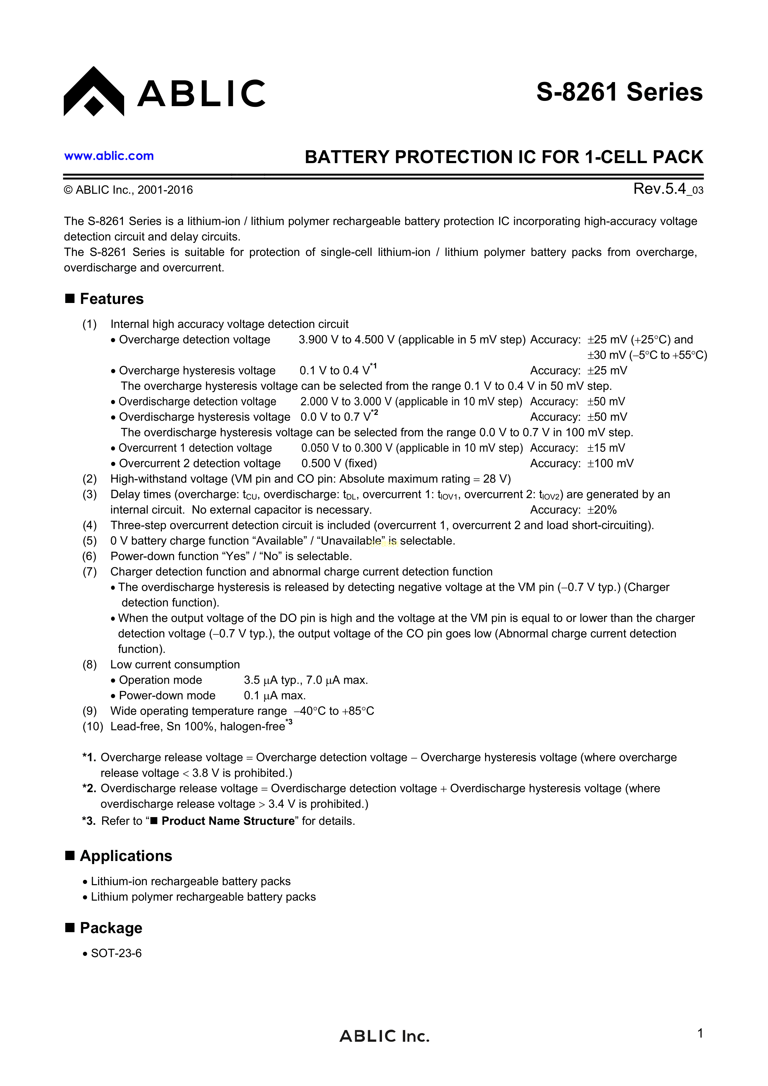 S-8261ABPMD-G3PT2S数据手册SOT-23-6封装ABLIC(艾普凌科)PDF规格书,