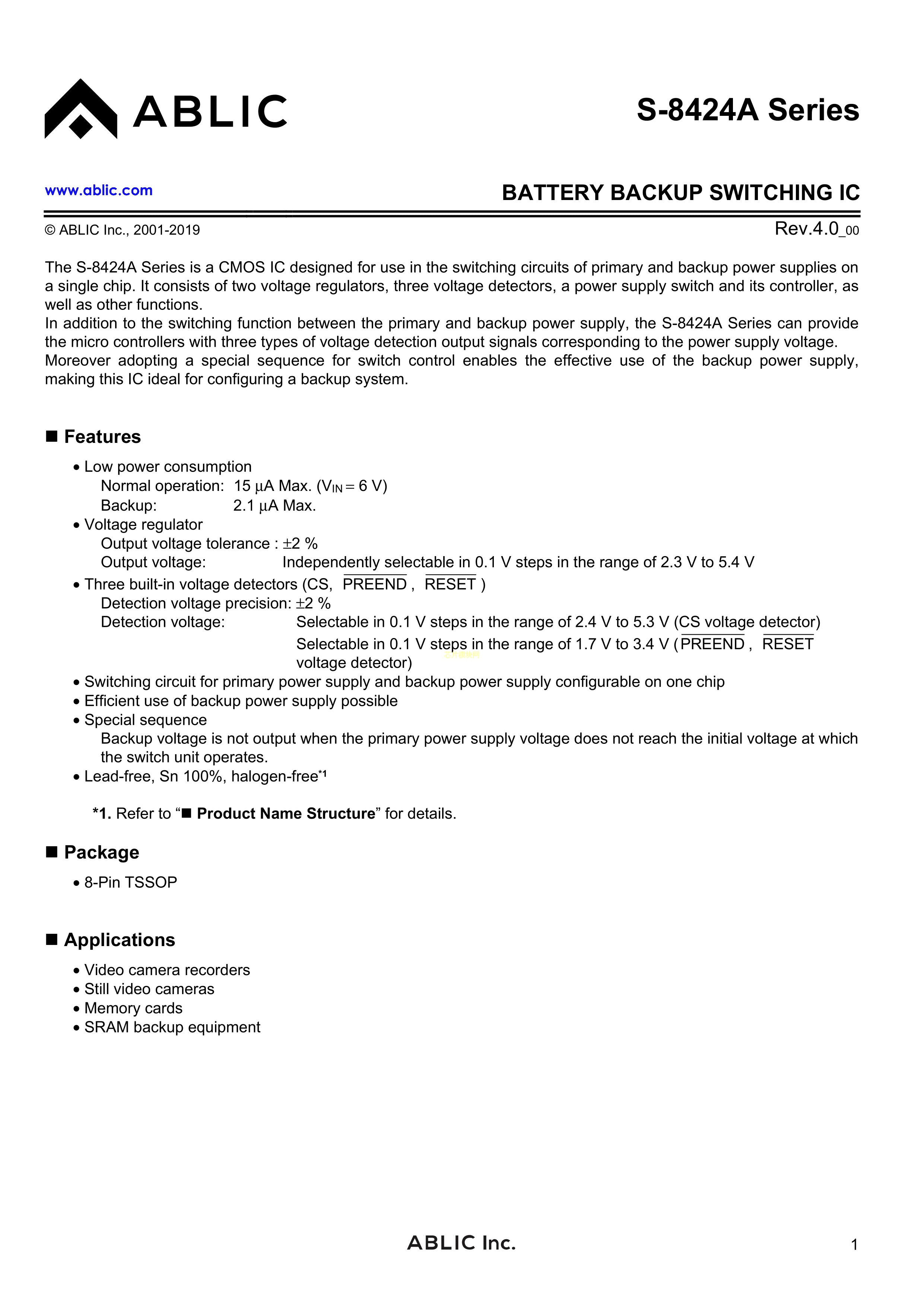 S-8424AADFT-TB-U数据手册TSSOP-8封装ABLIC(艾普凌科)PDF规格书,中英文
