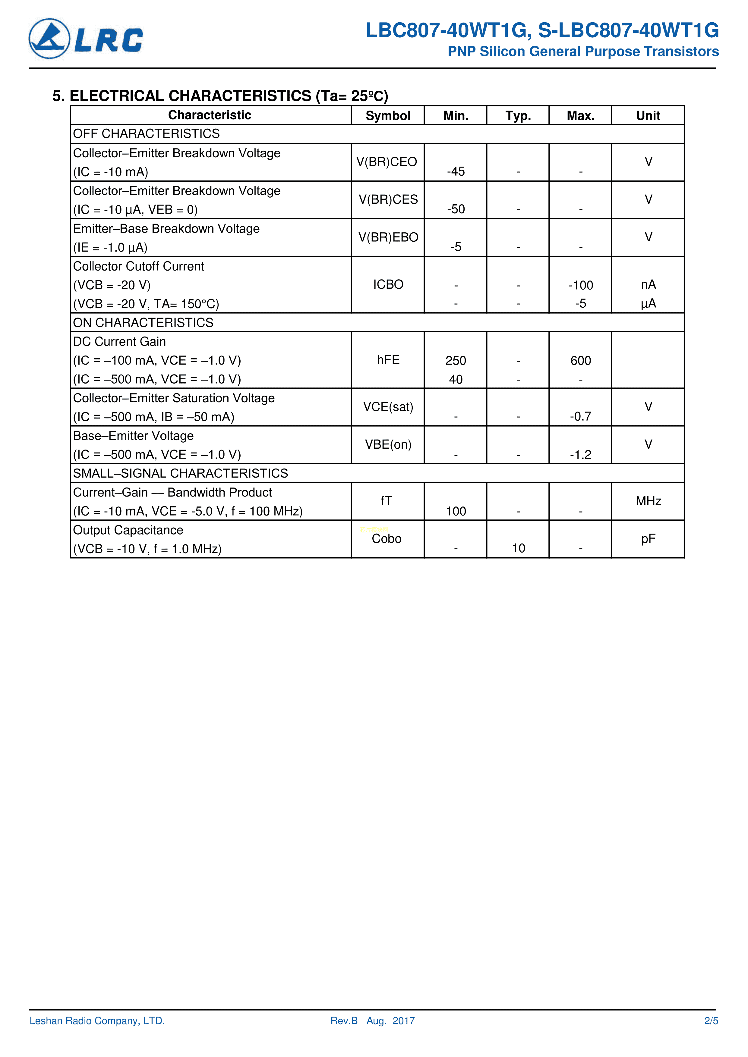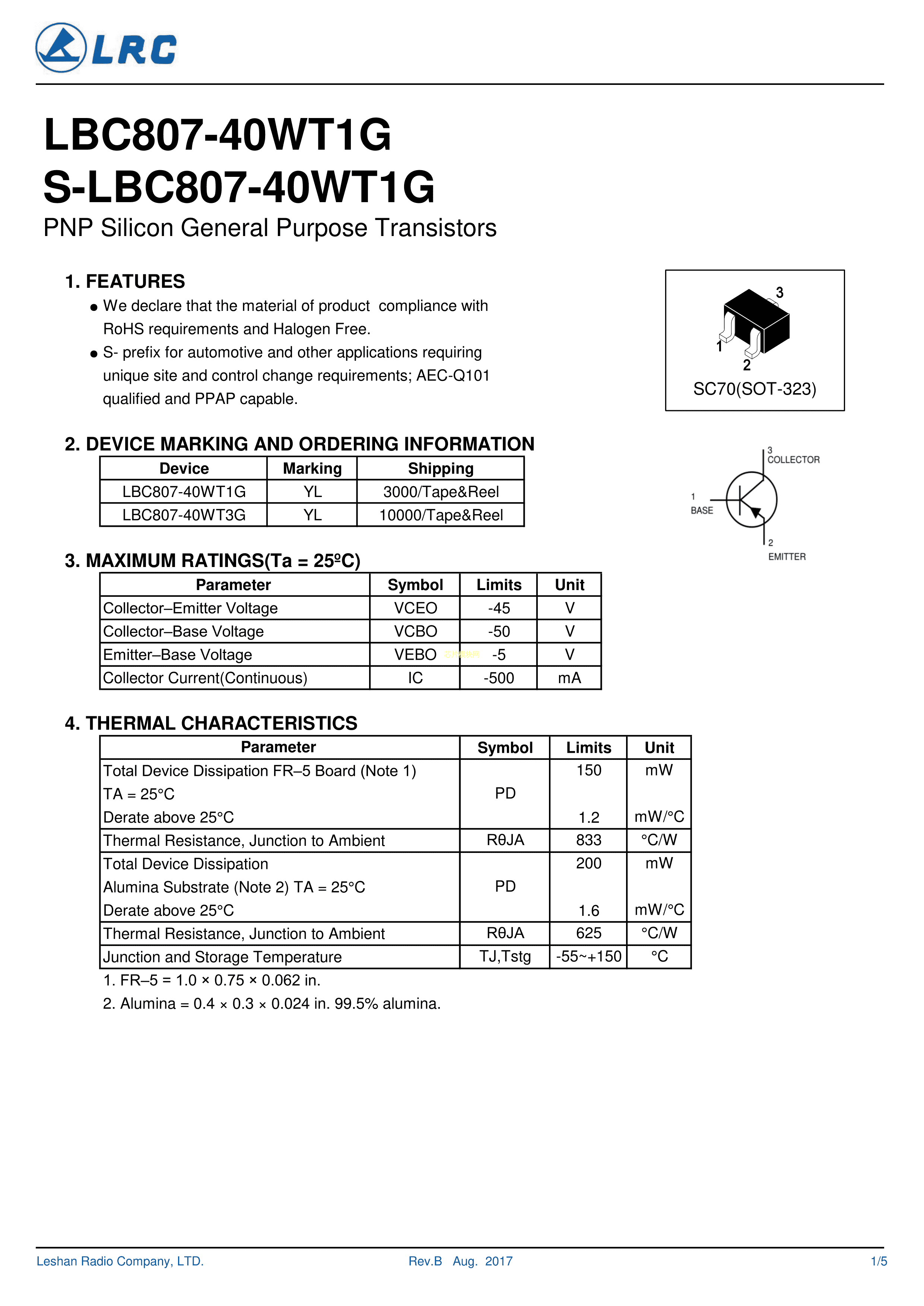 S-LBC807-40WT1G数据手册SC-70封装LRC(乐山无线电)PDF规格书,中英文下载