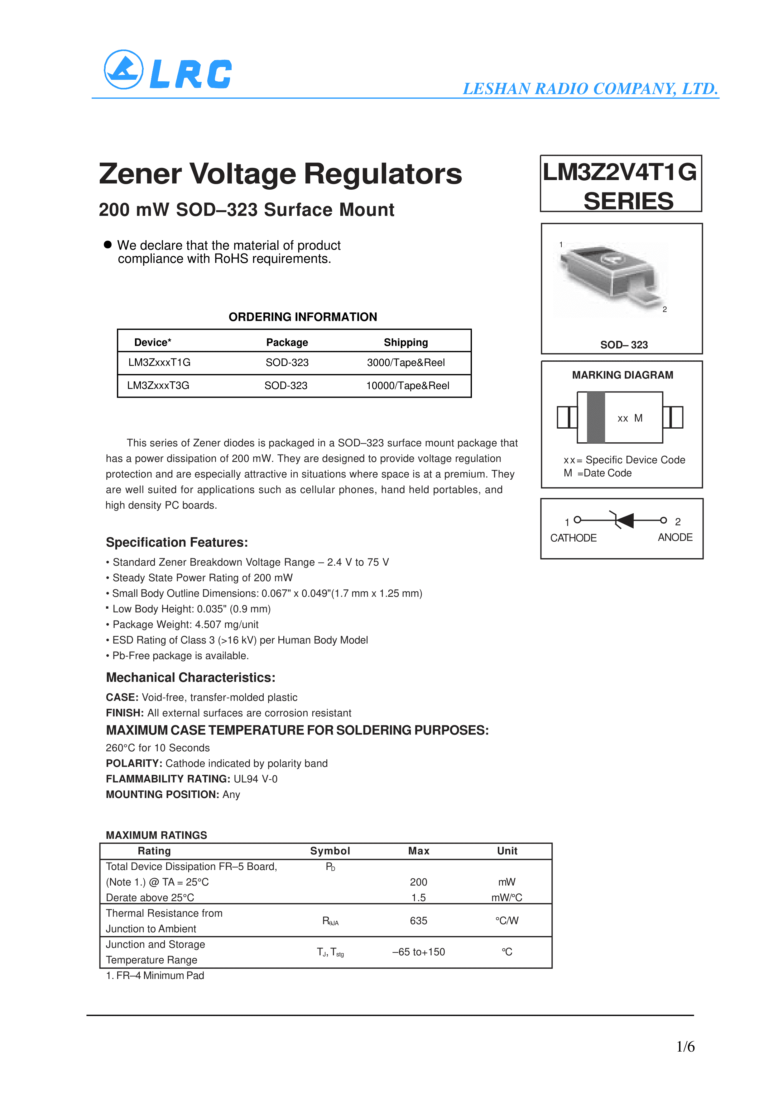 S-LM3Z43VT1G数据手册SOD-323封装LRC(乐山无线电)PDF规格书,中英文下载