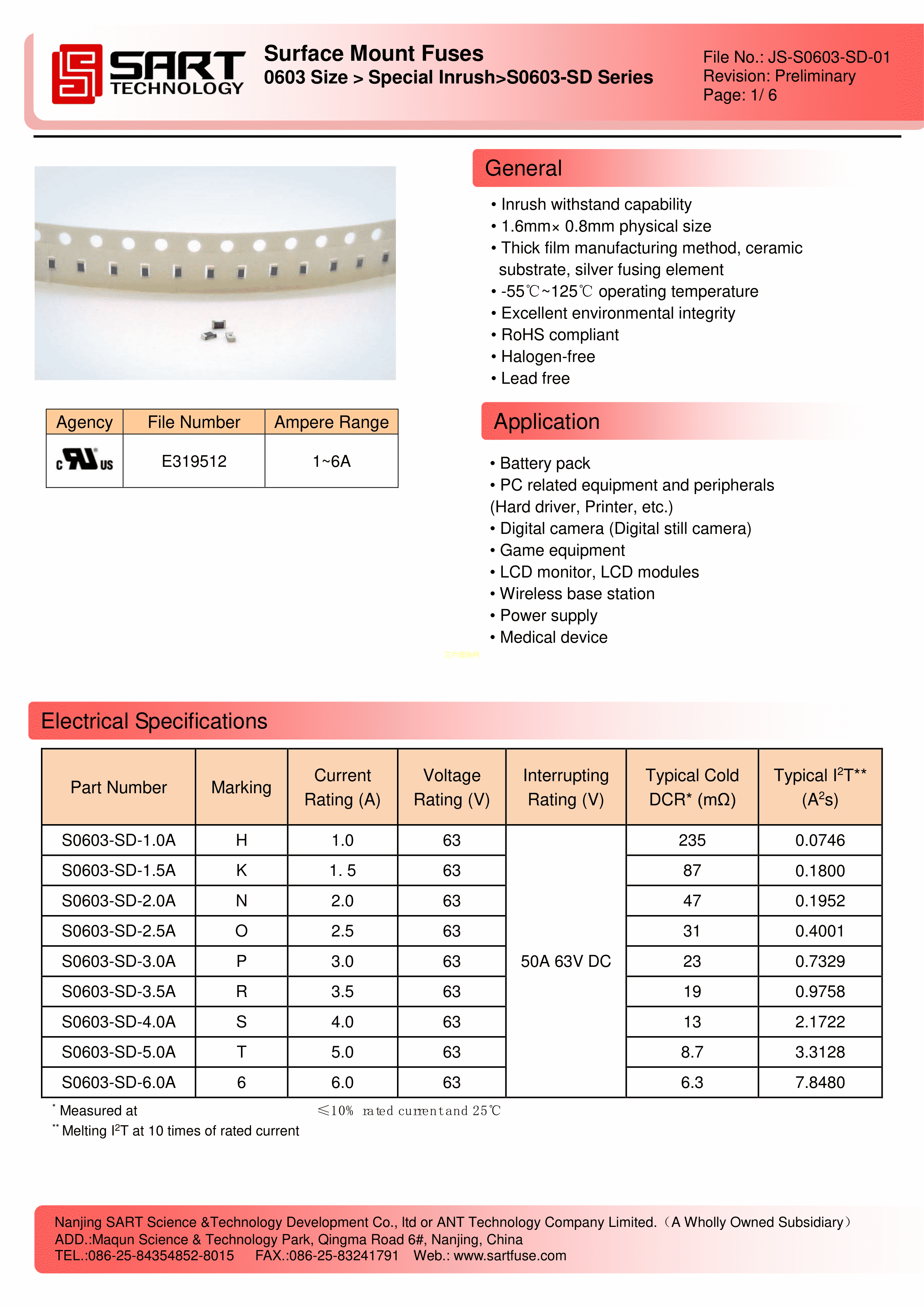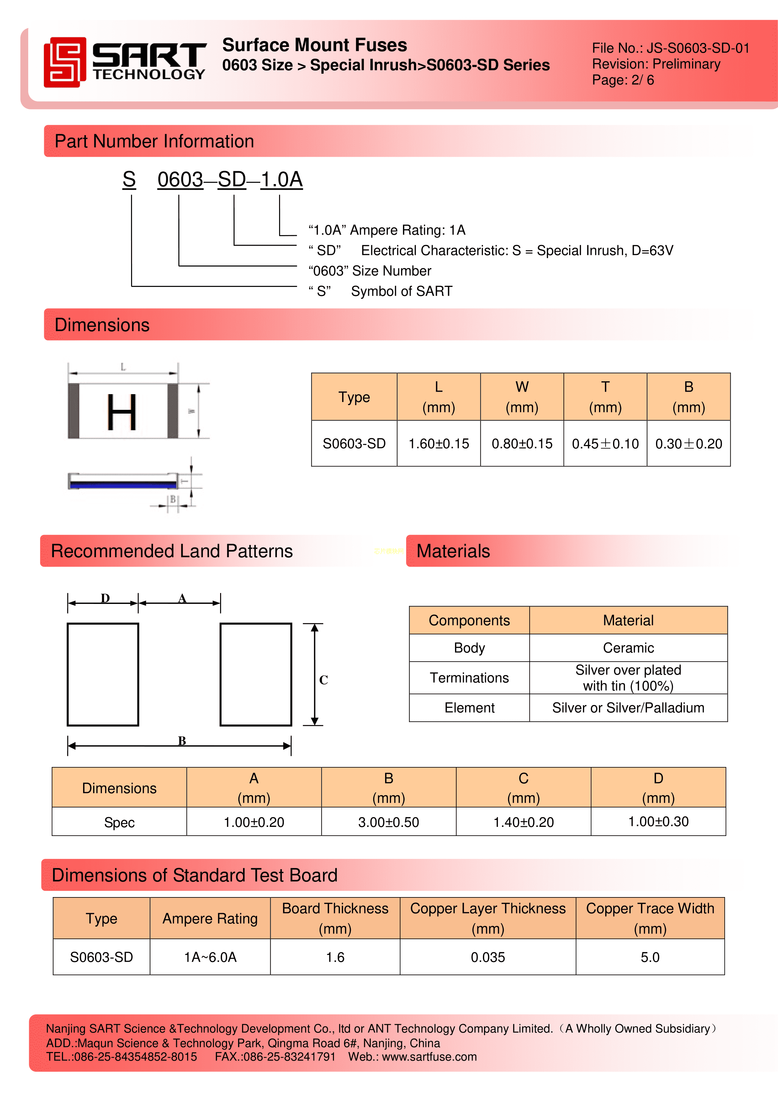 S0603-SD-1.5A数据手册0603封装SART(萨特)PDF规格书,中英文下载