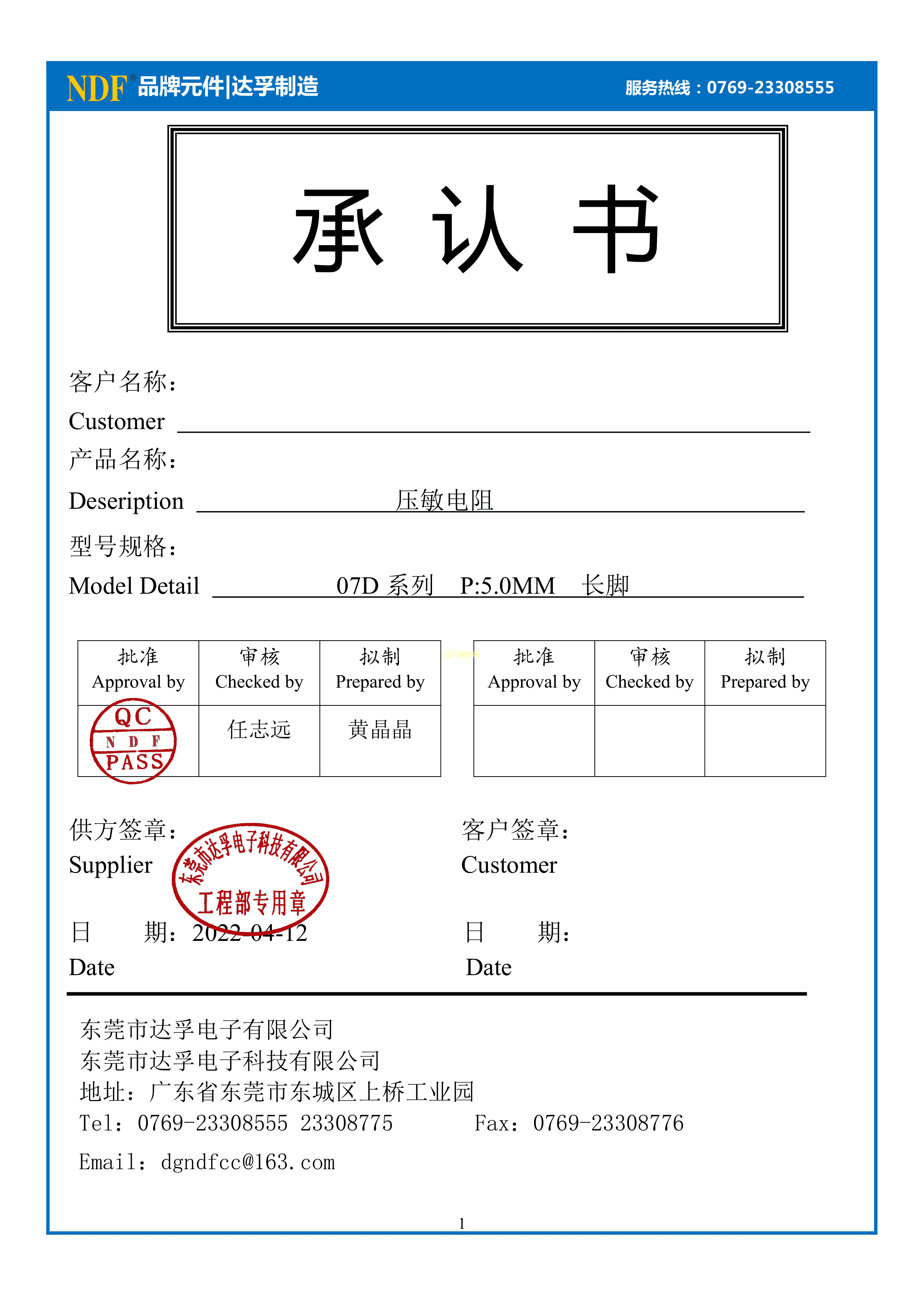 S07D561K55250L50A-NDF数据手册径向引线封装NDF(达孚)PDF规格书,中英文下载