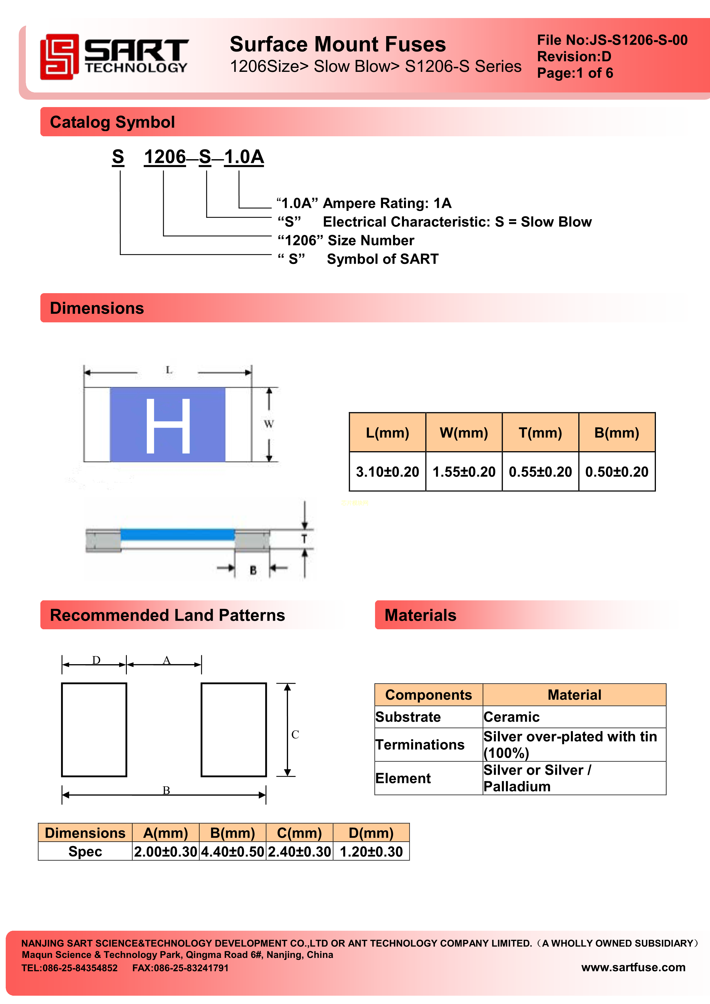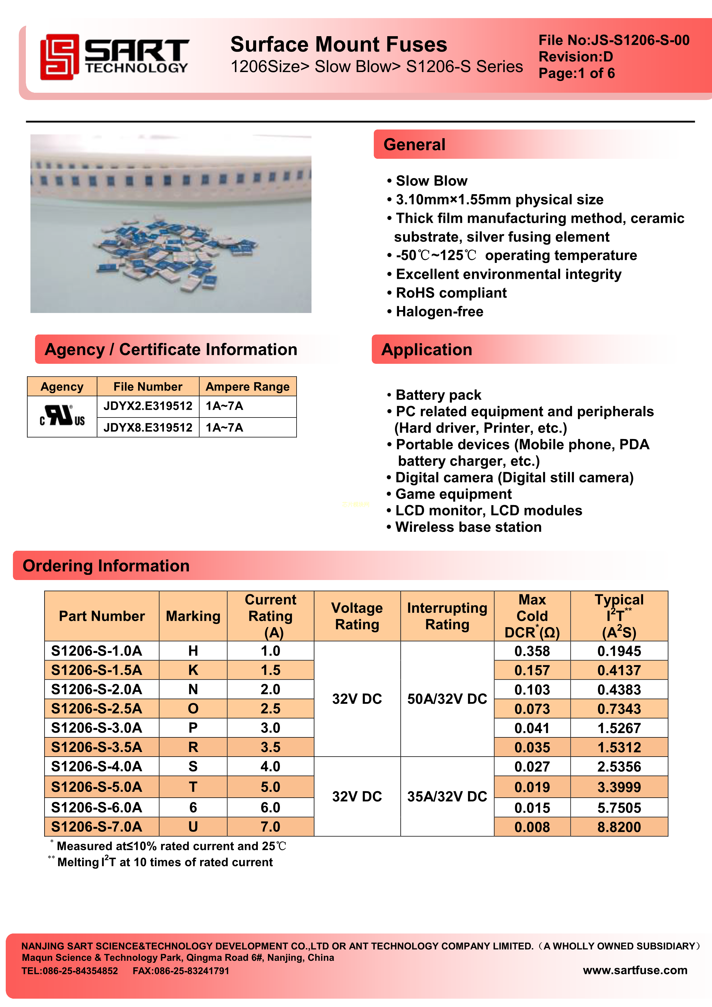 S1206-S-2.5A数据手册1206封装SART(萨特)PDF规格书,中英文下载