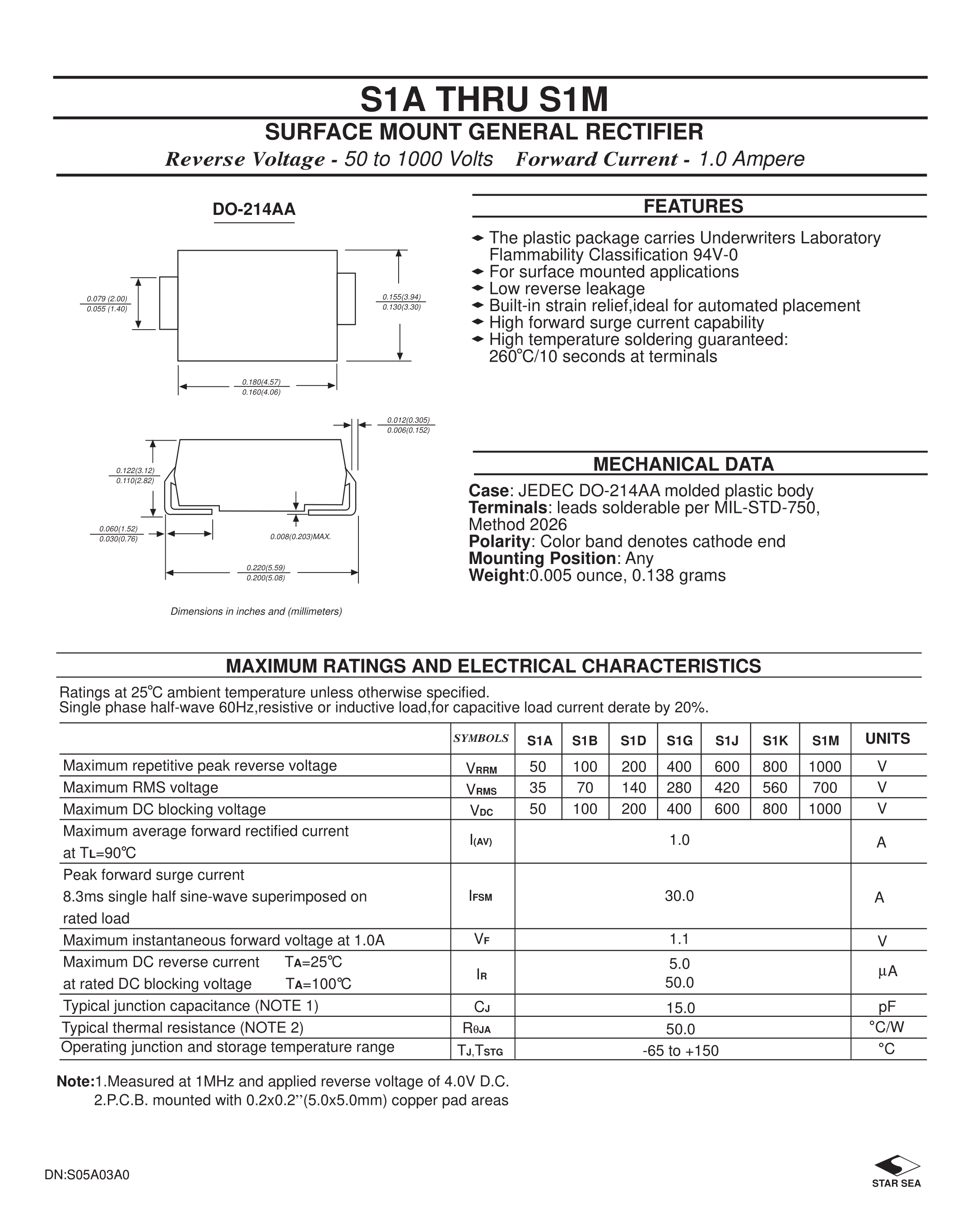S1D数据手册SMB封装星海PDF规格书,中英文下载