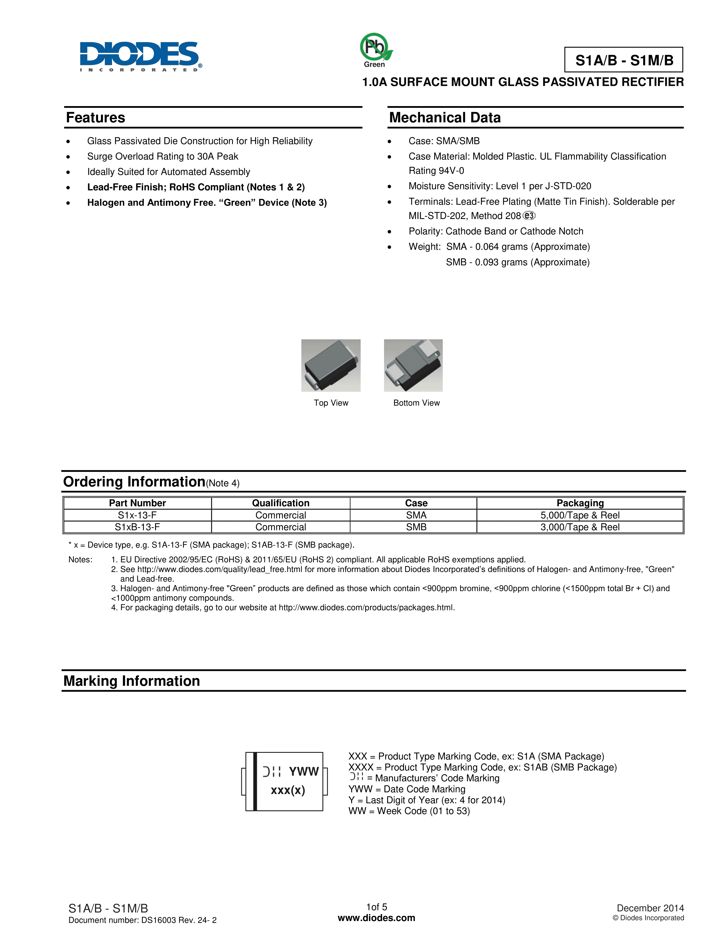 S1GT-04LC-F数据手册SMB(DO-214AA)封装DIODES(美台)PDF规格书,中英文