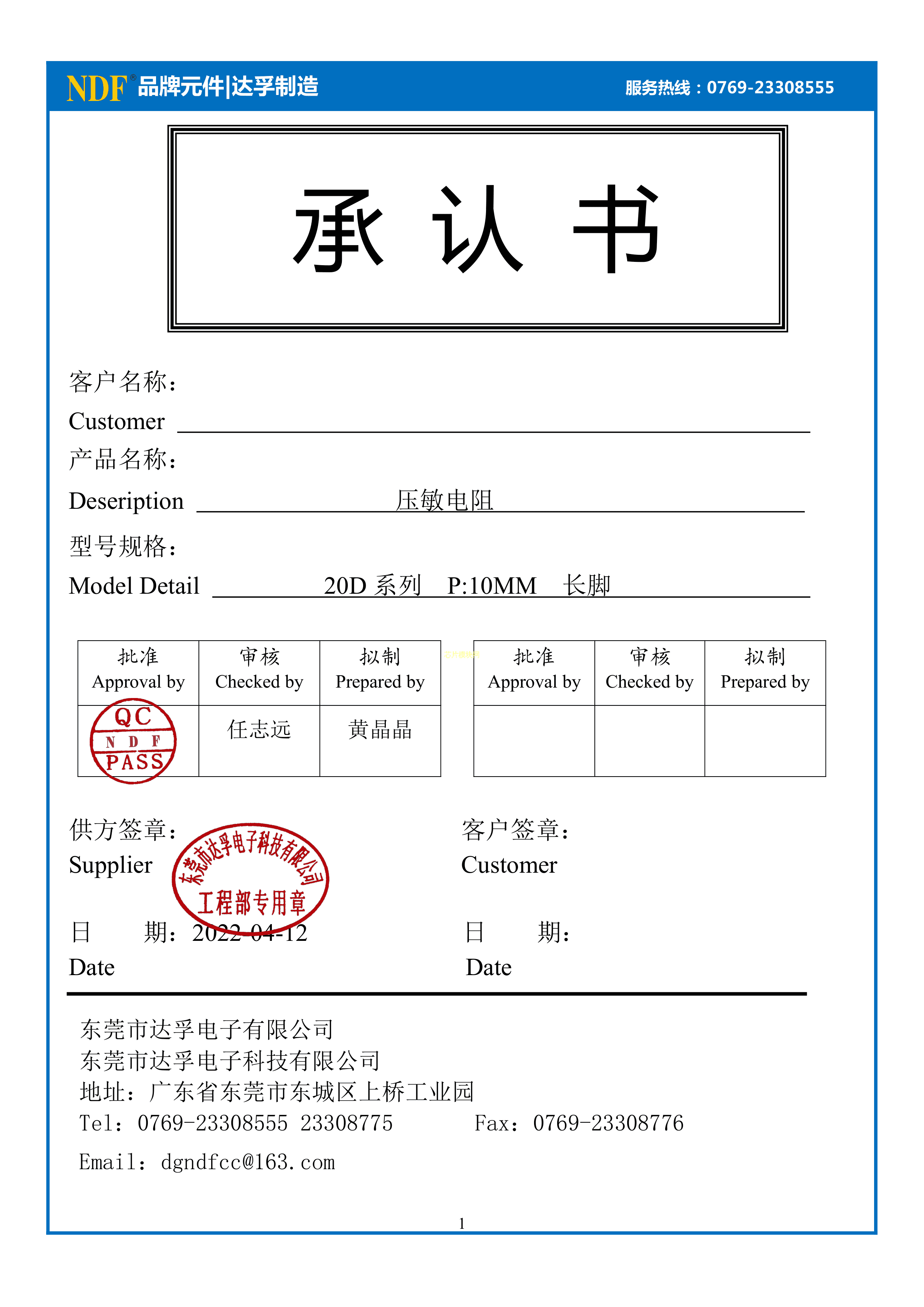 S20D561K98250L10-NDF数据手册径向引线封装NDF(达孚)PDF规格书,中英文下载