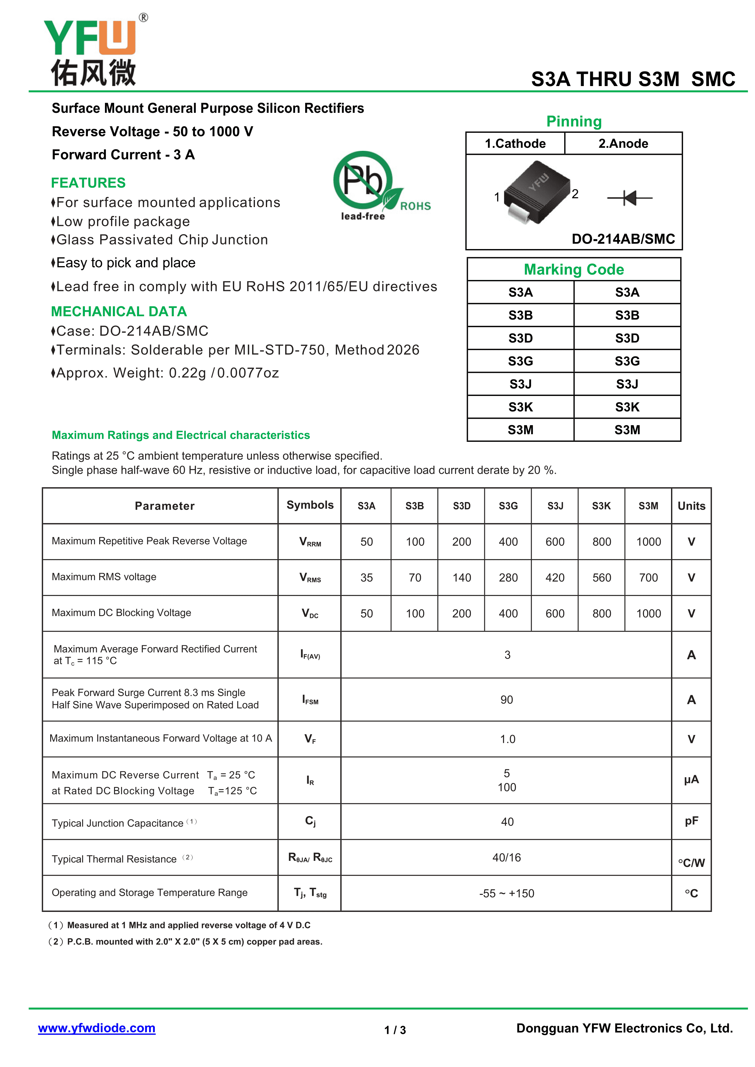 S3K数据手册SMC封装YFW(佑风微)PDF规格书,中英文下载