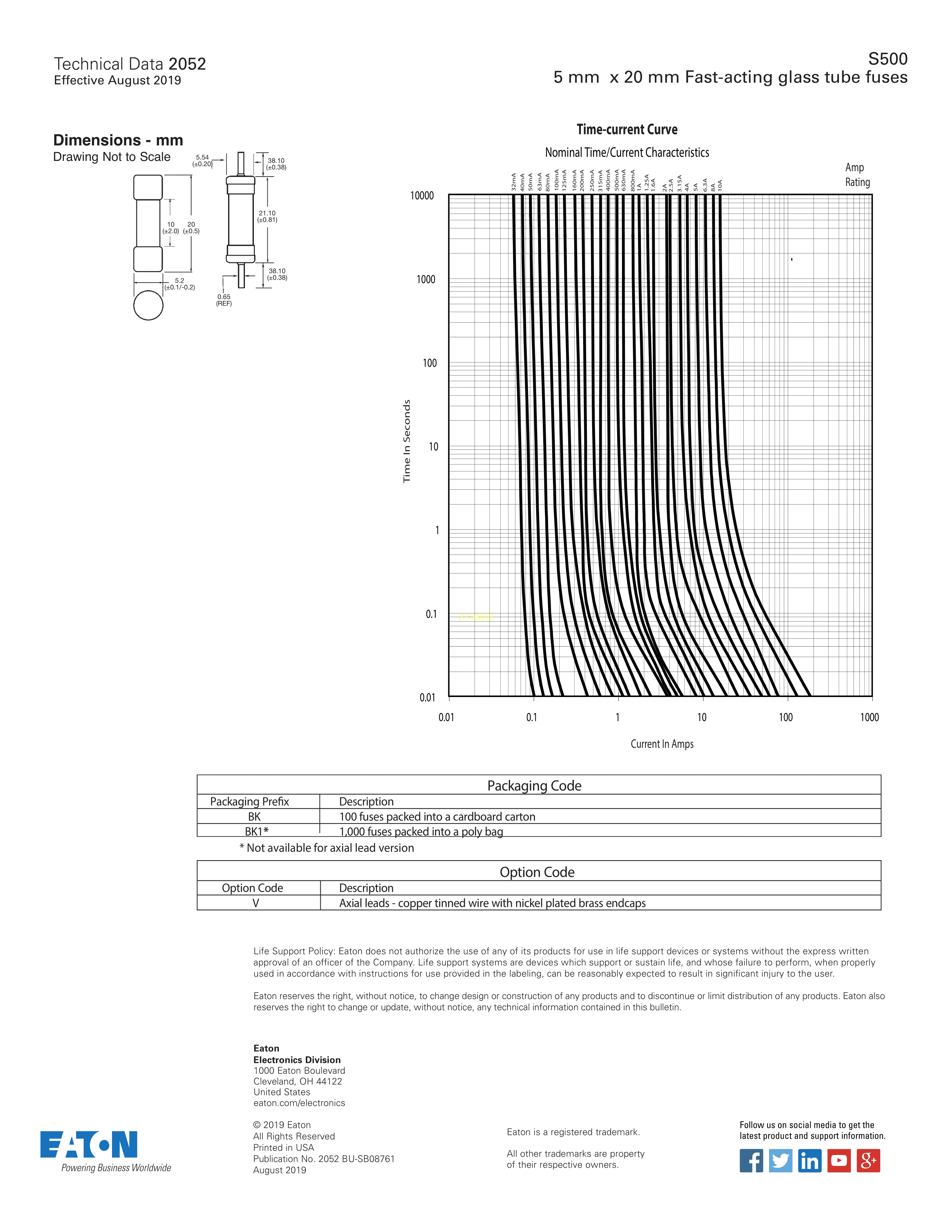 S500-100-R数据手册管5.2x20mm封装EATON(伊顿)PDF规格书,中英文下载