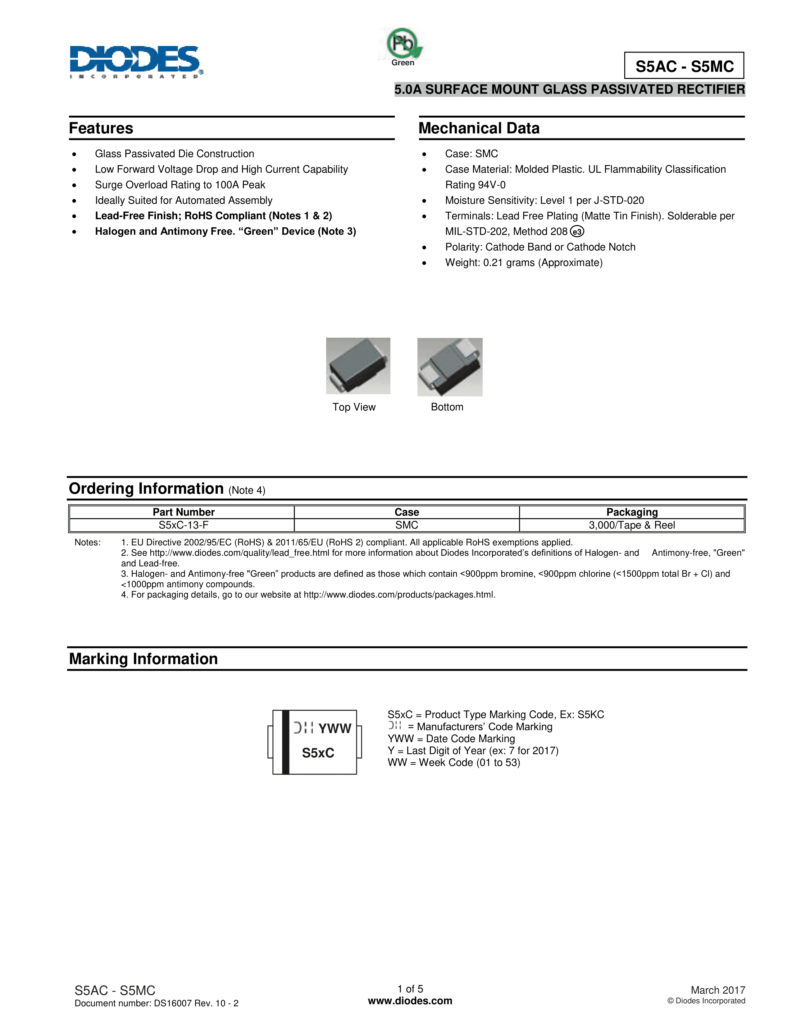 S5JC-13-F数据手册SMC(DO-214AB)封装DIODES(美台)PDF规格书,中英文下载