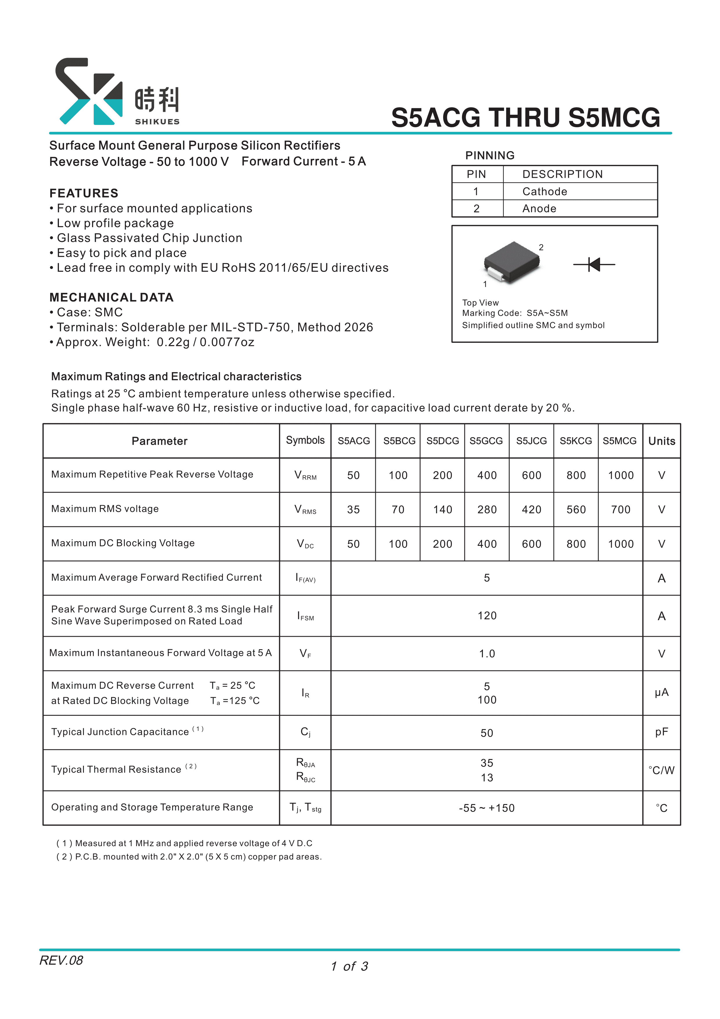 S5MCG数据手册SMC封装SHIKUES(时科)PDF规格书,中英文下载