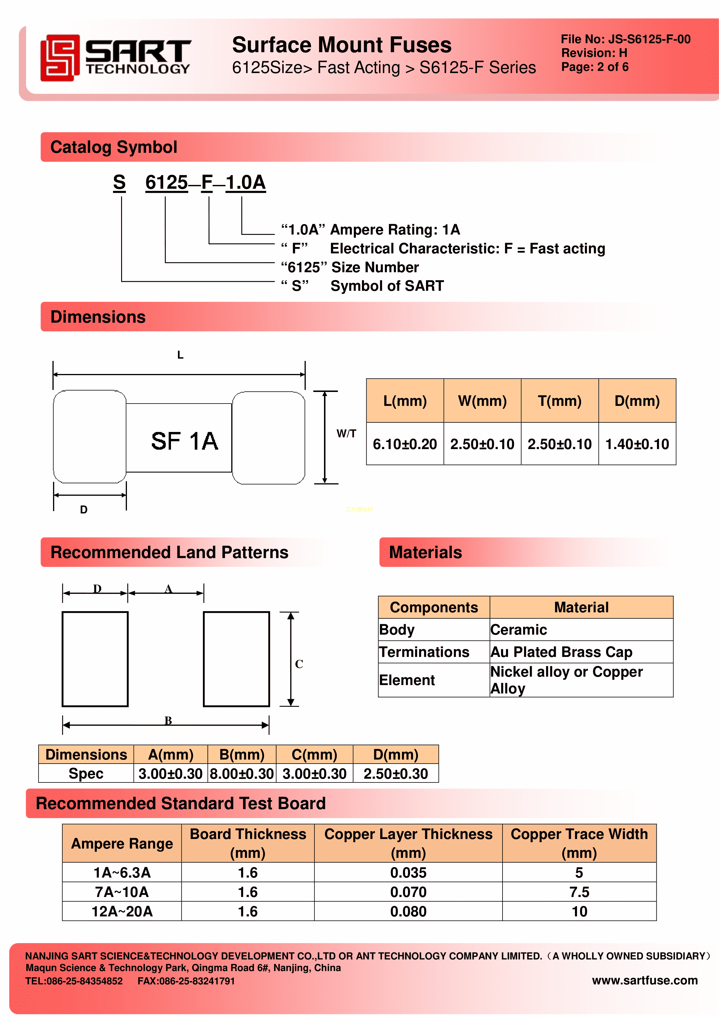 S6125-F-2.0A数据手册SMD封装SART(萨特)PDF规格书,中英文下载