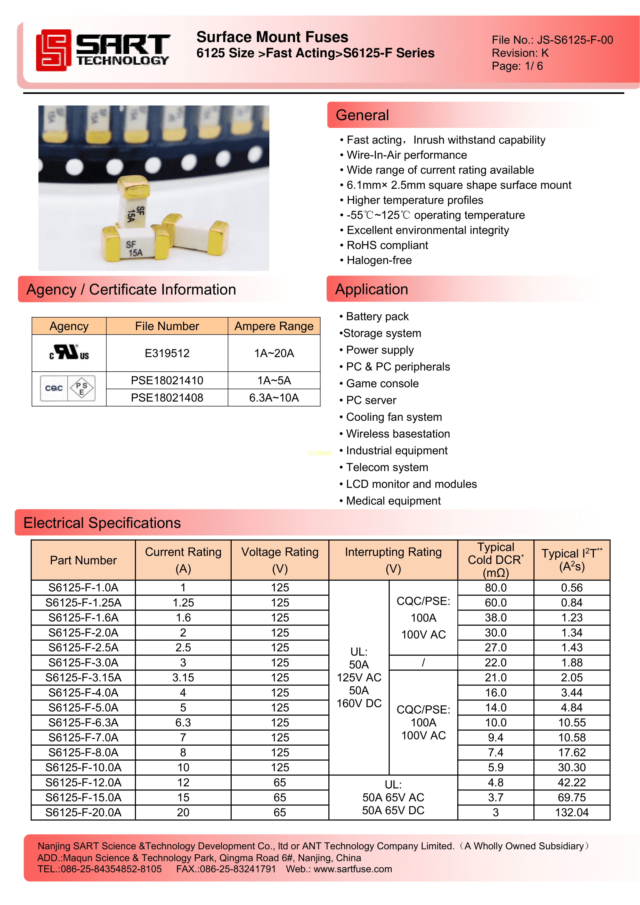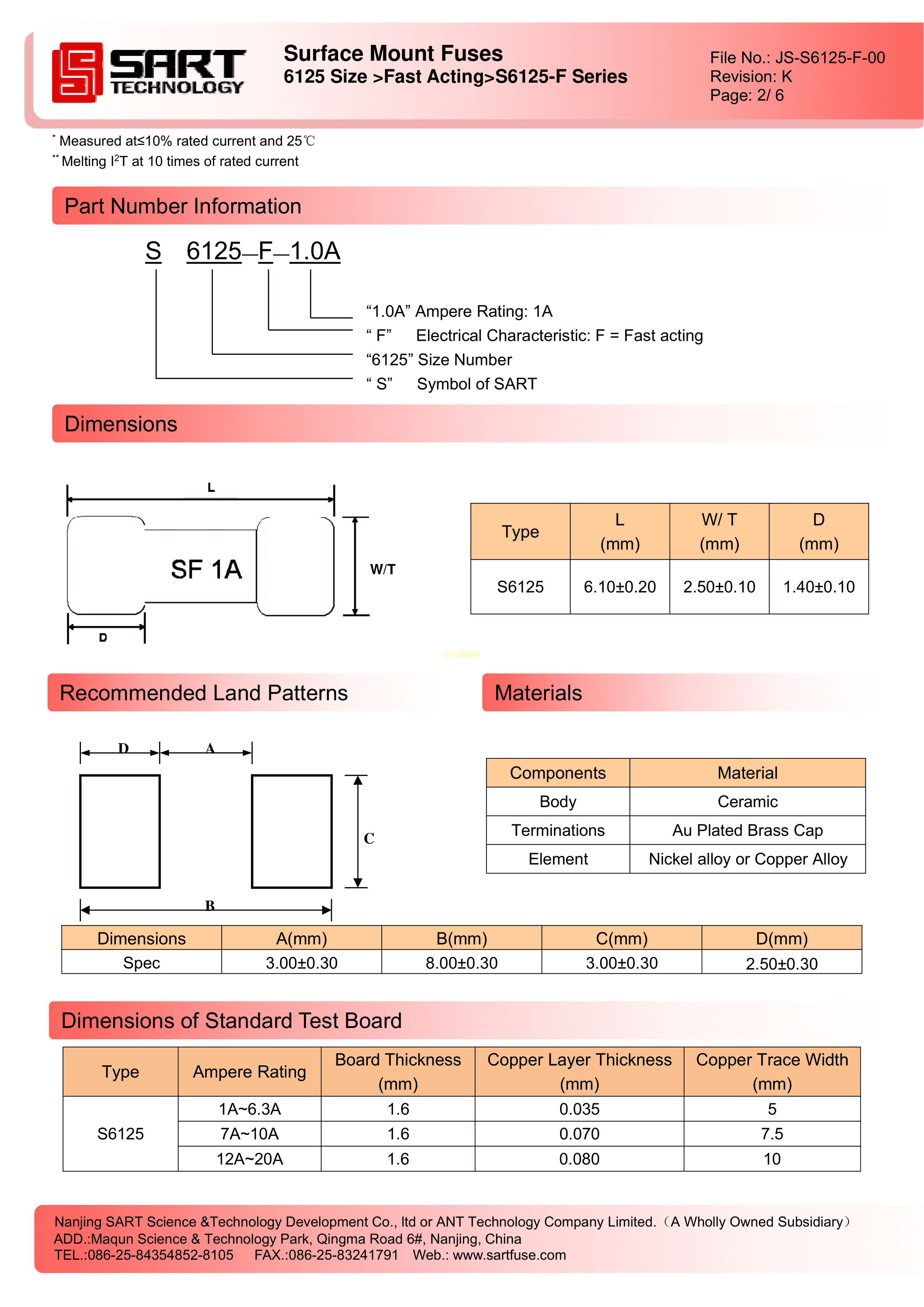 S6125-F-3.15A数据手册SMD封装SART(萨特)PDF规格书,中英文下载