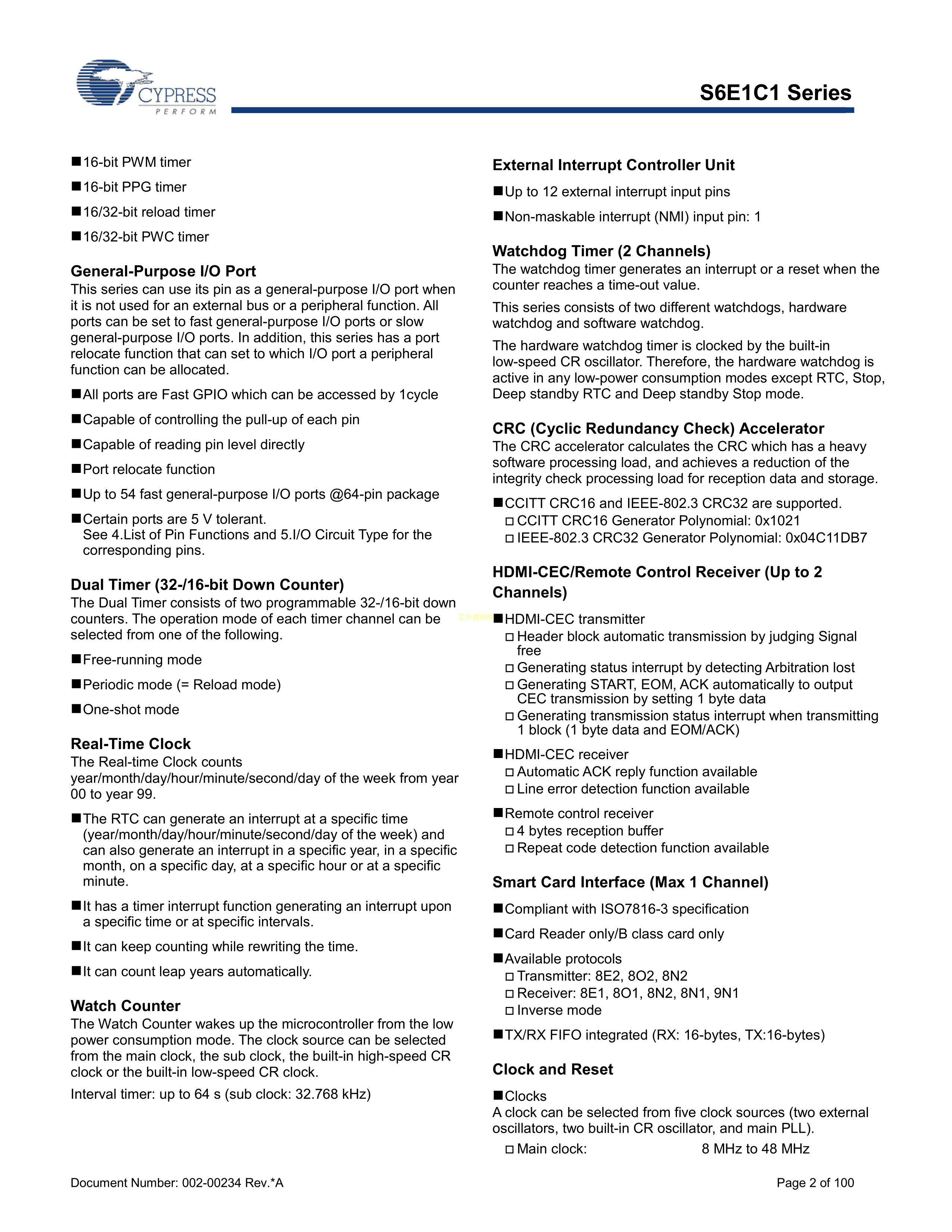S6E1C12D0AGN20000数据手册QFN-64(9x9)封装SPANSION(飞索)PDF规