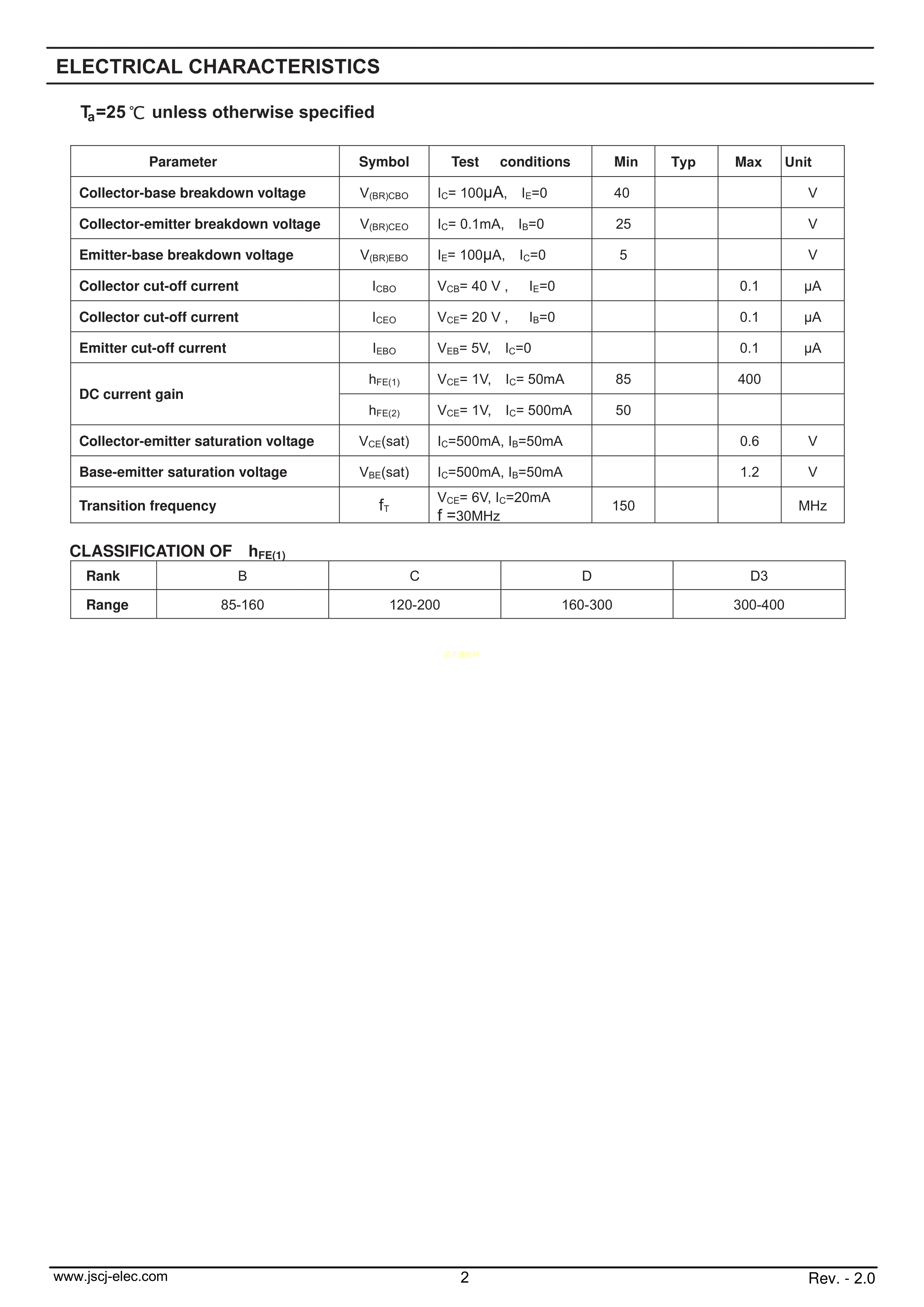 S8050-TA数据手册TO-92封装CJ(江苏长电-长晶)PDF规格书,中英文下载