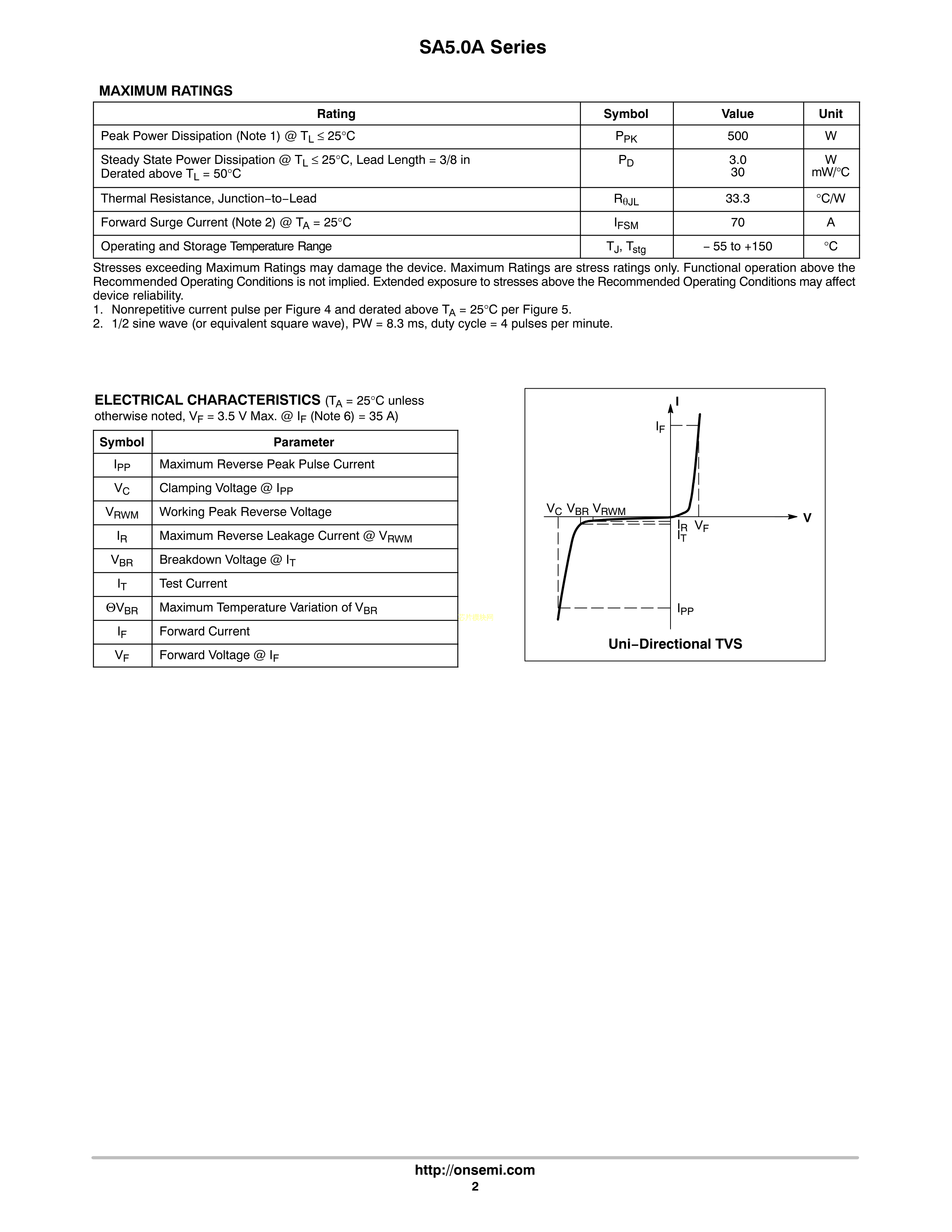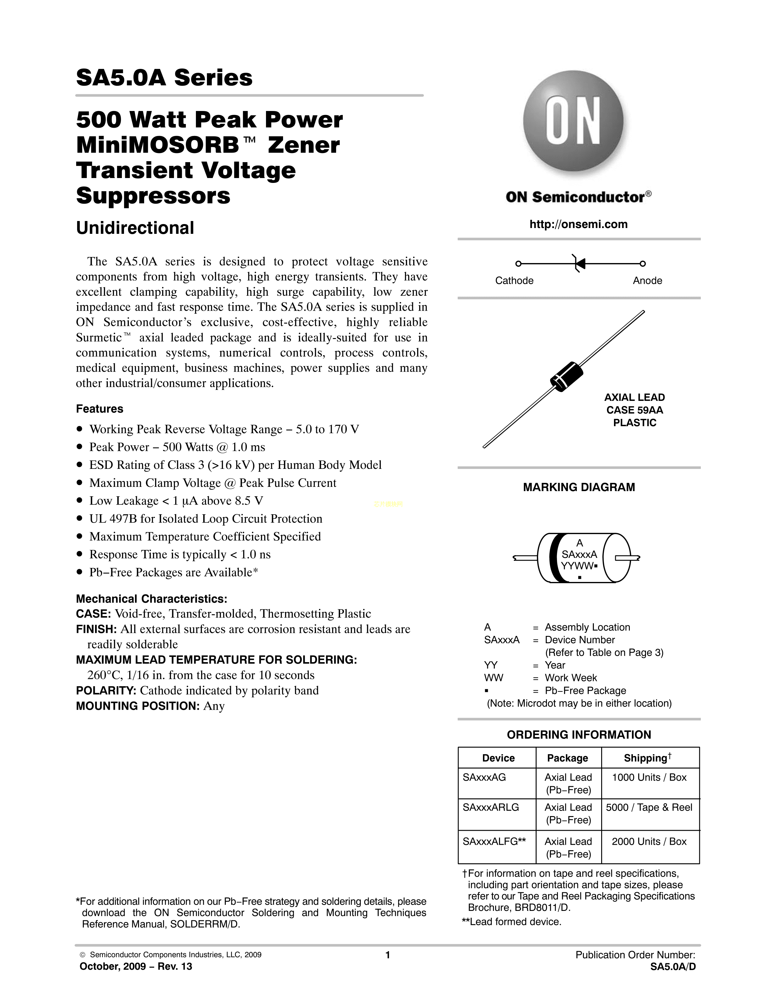 SA12AG数据手册Axial封装onsemi(安森美)PDF规格书,中英文下载