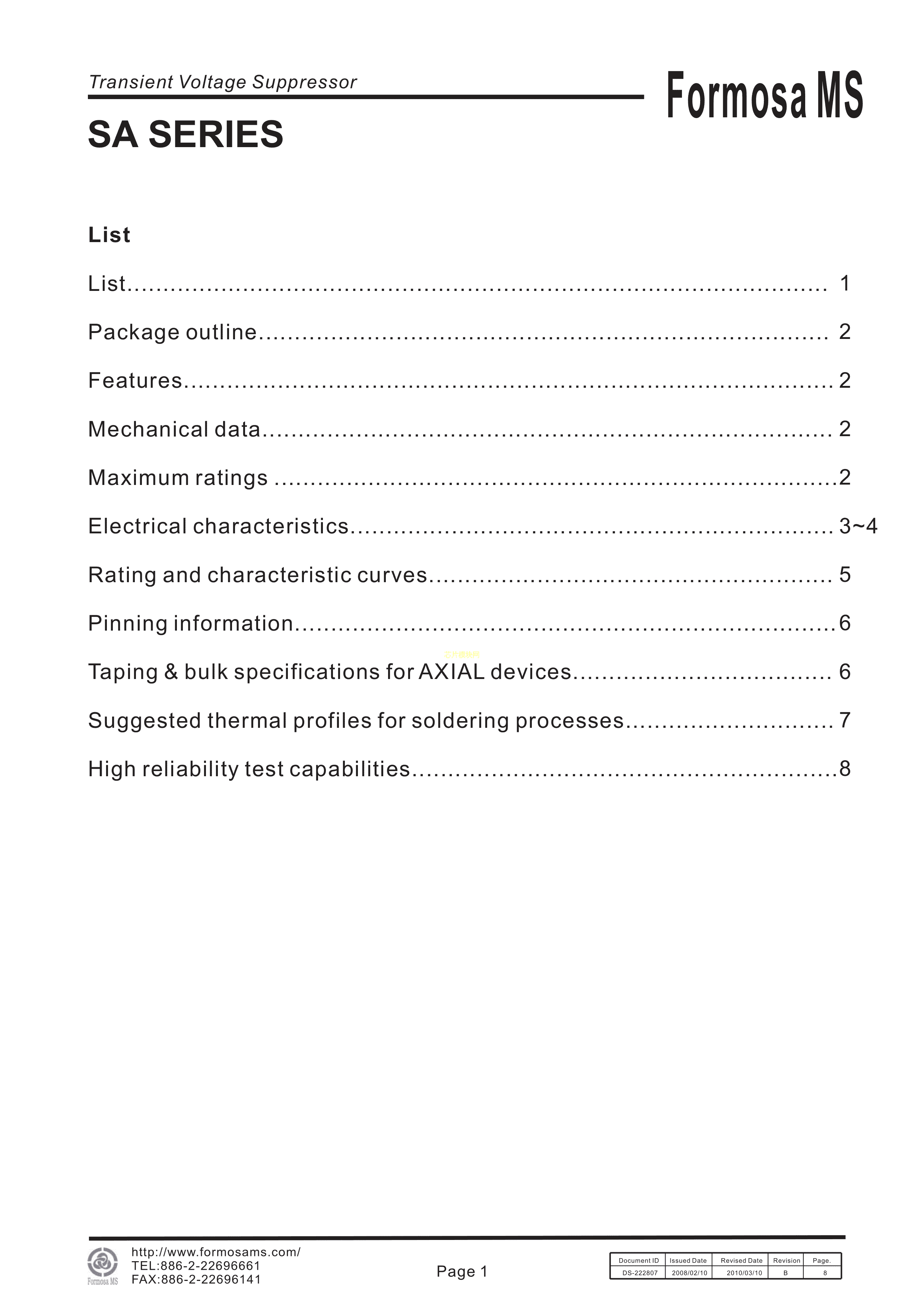 SA5.0A数据手册DO-15封装FMS(台湾美丽微)PDF规格书,中英文下载