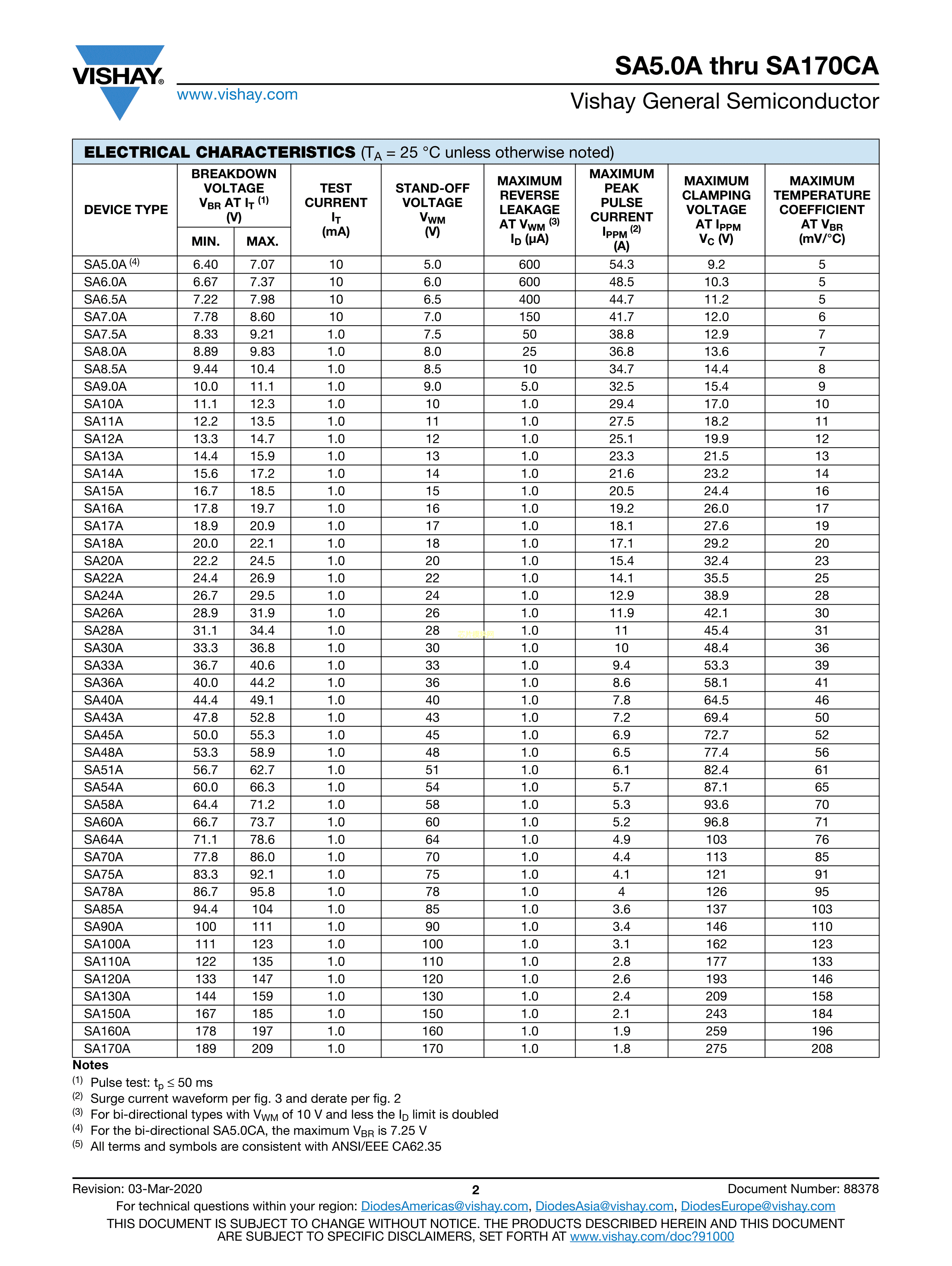 SA5.0CAHE3-73数据手册DO-15(DO-204AC)封装VISHAY(威世)PDF规格书