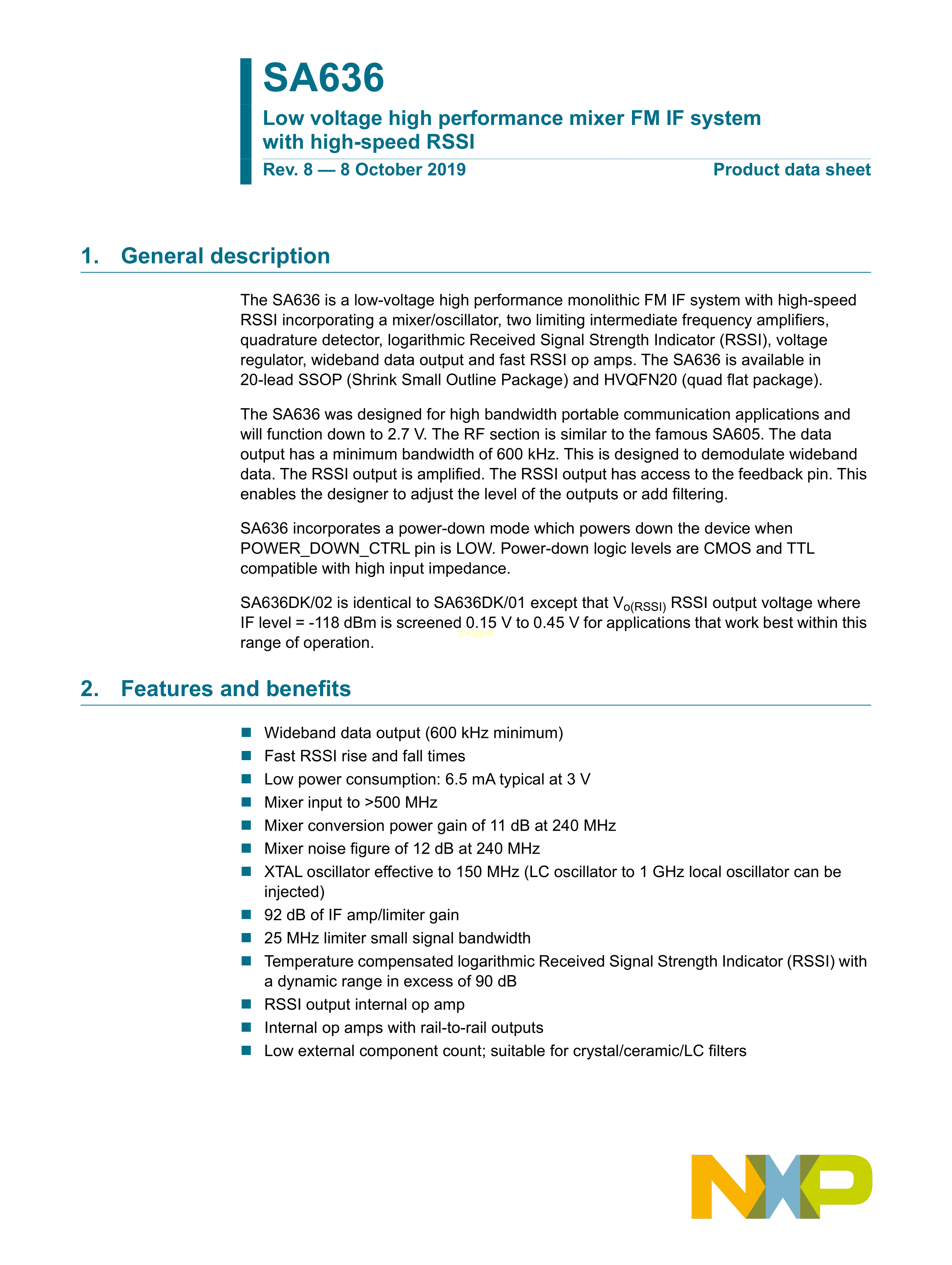 SA636DK-01118数据手册SSOP-20封装NXP(恩智浦)PDF规格书,中英文下载