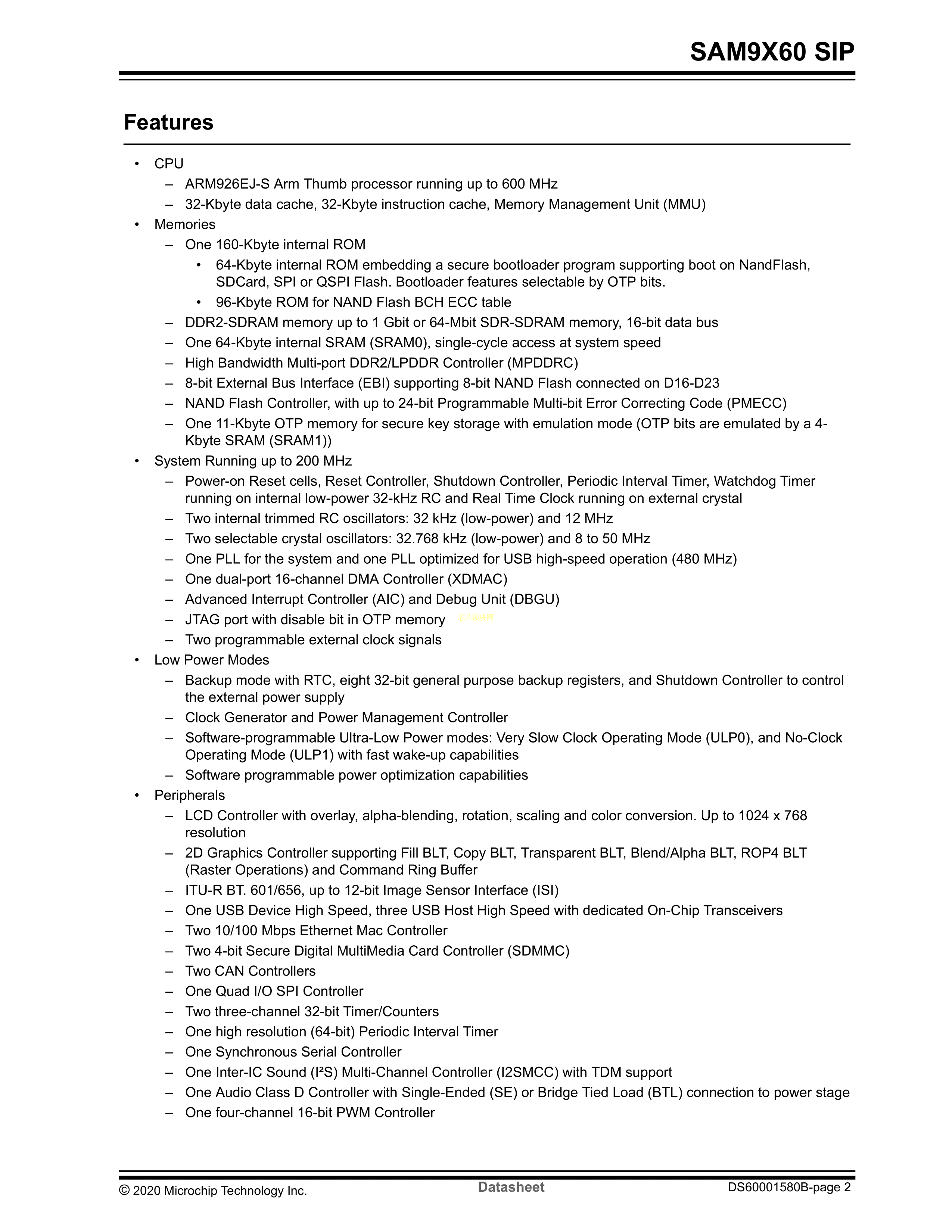 SAM9X60D1G-I-4FB数据手册TFBGA-233(14x14)封装MICROCHIP(美国