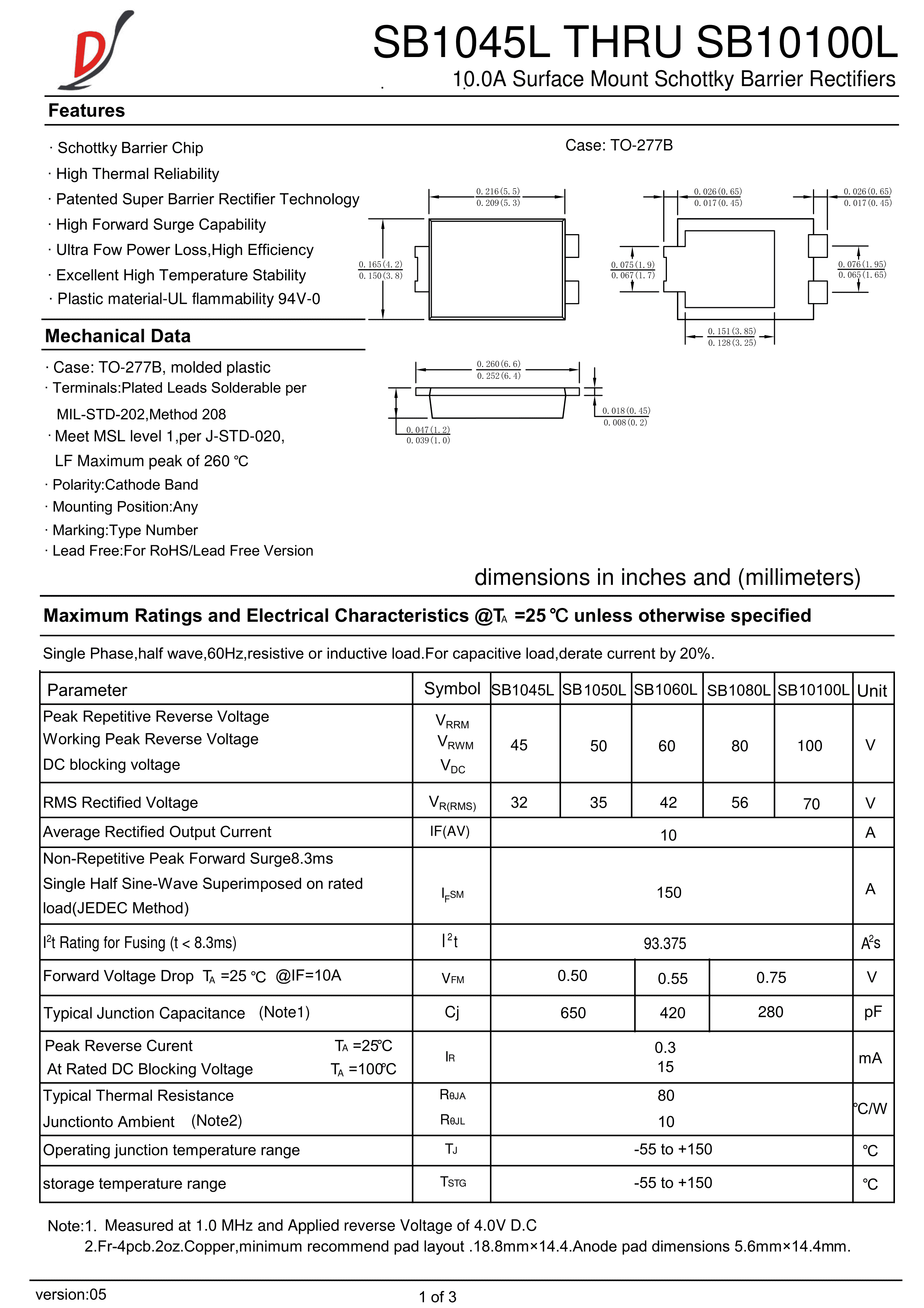 SB1060L数据手册TO-277B封装迪一PDF规格书,中英文下载