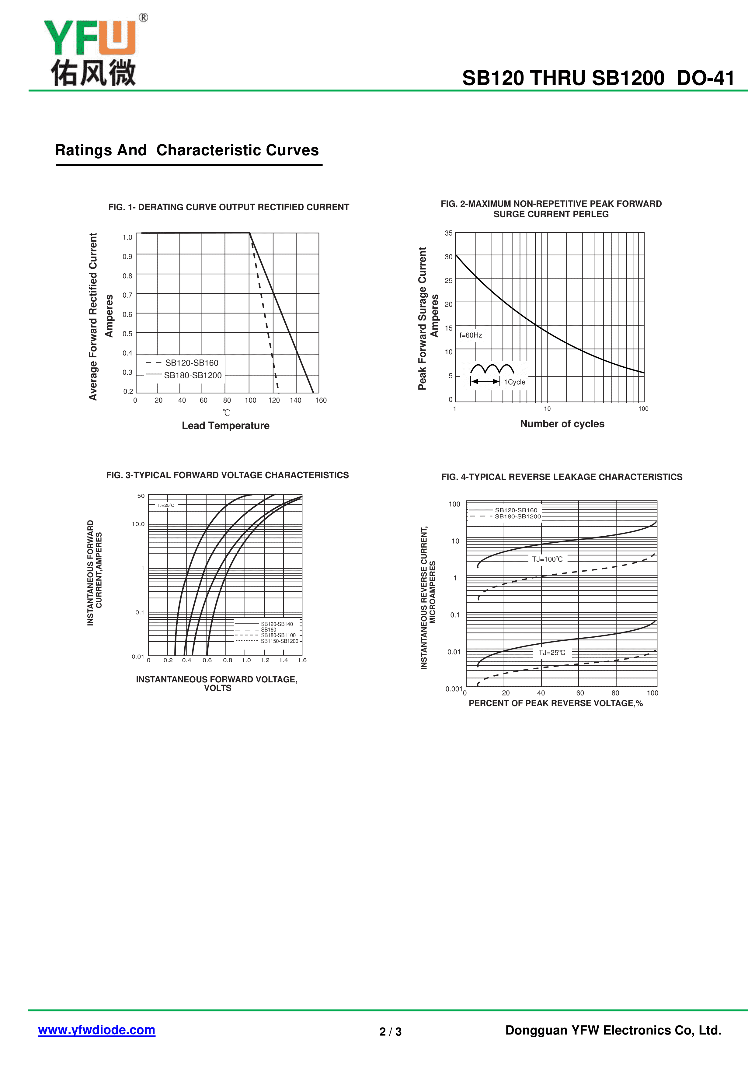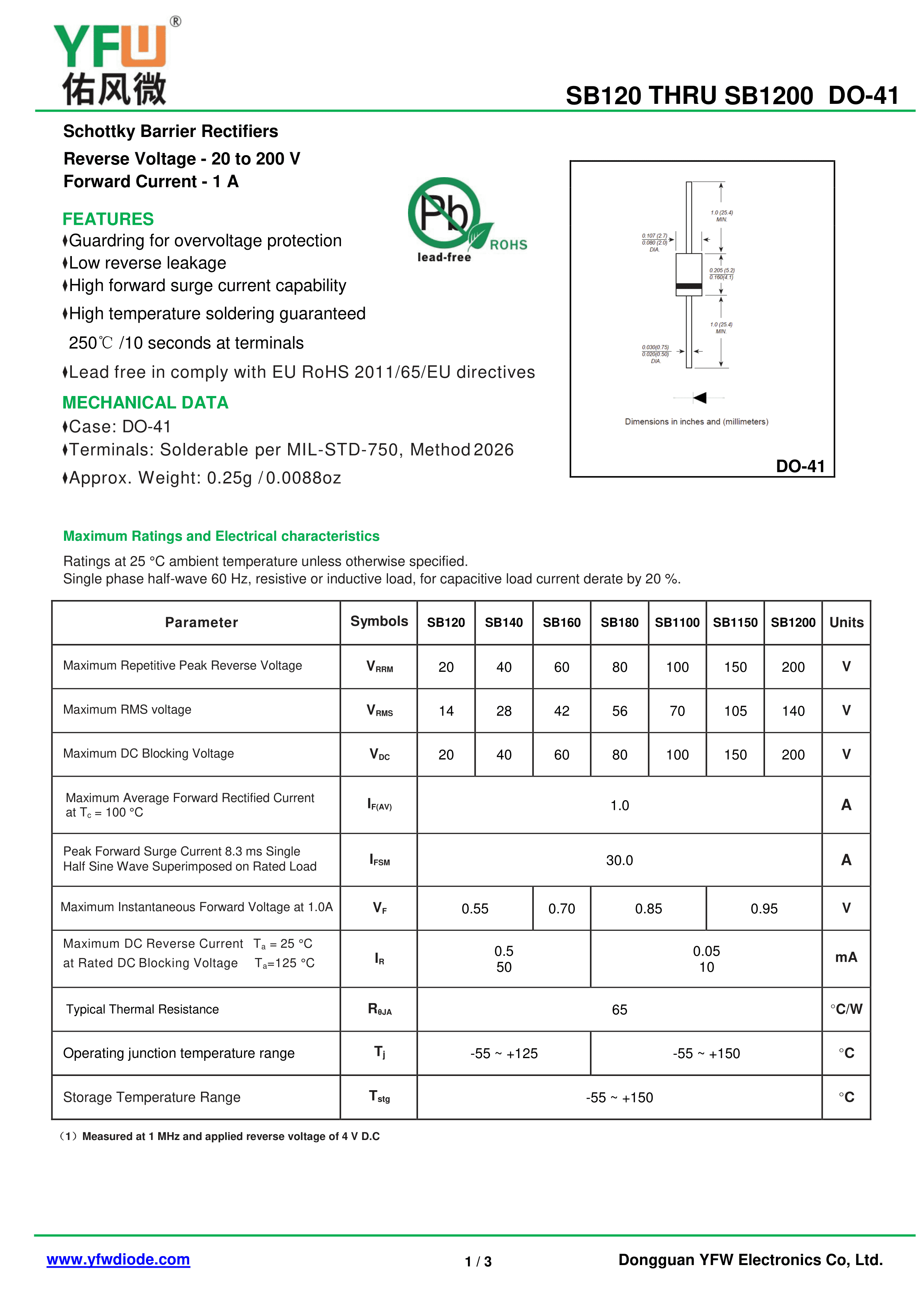 SB1200弯脚N型数据手册DO-41封装YFW(佑风微)PDF规格书,中英文下载