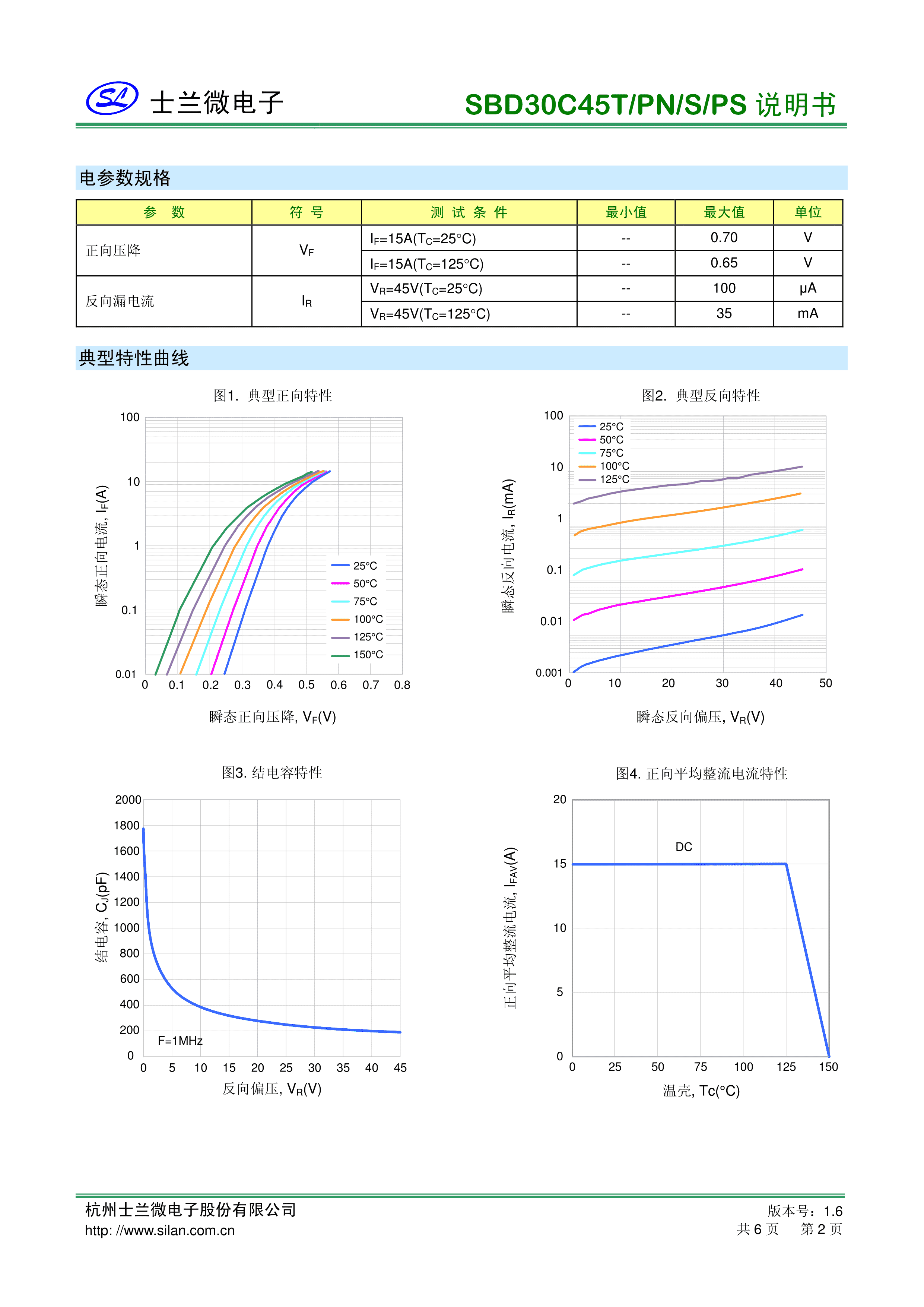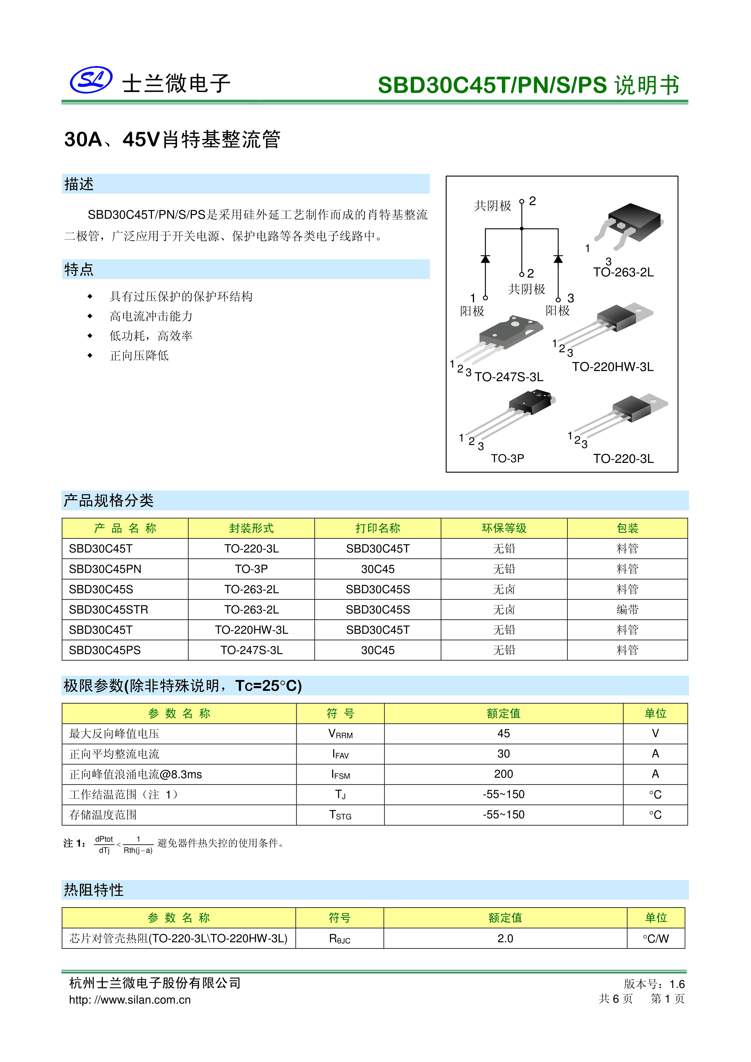 SBD30C45T数据手册TO-220-3L封装SILAN(士兰微)PDF规格书,中英文下载