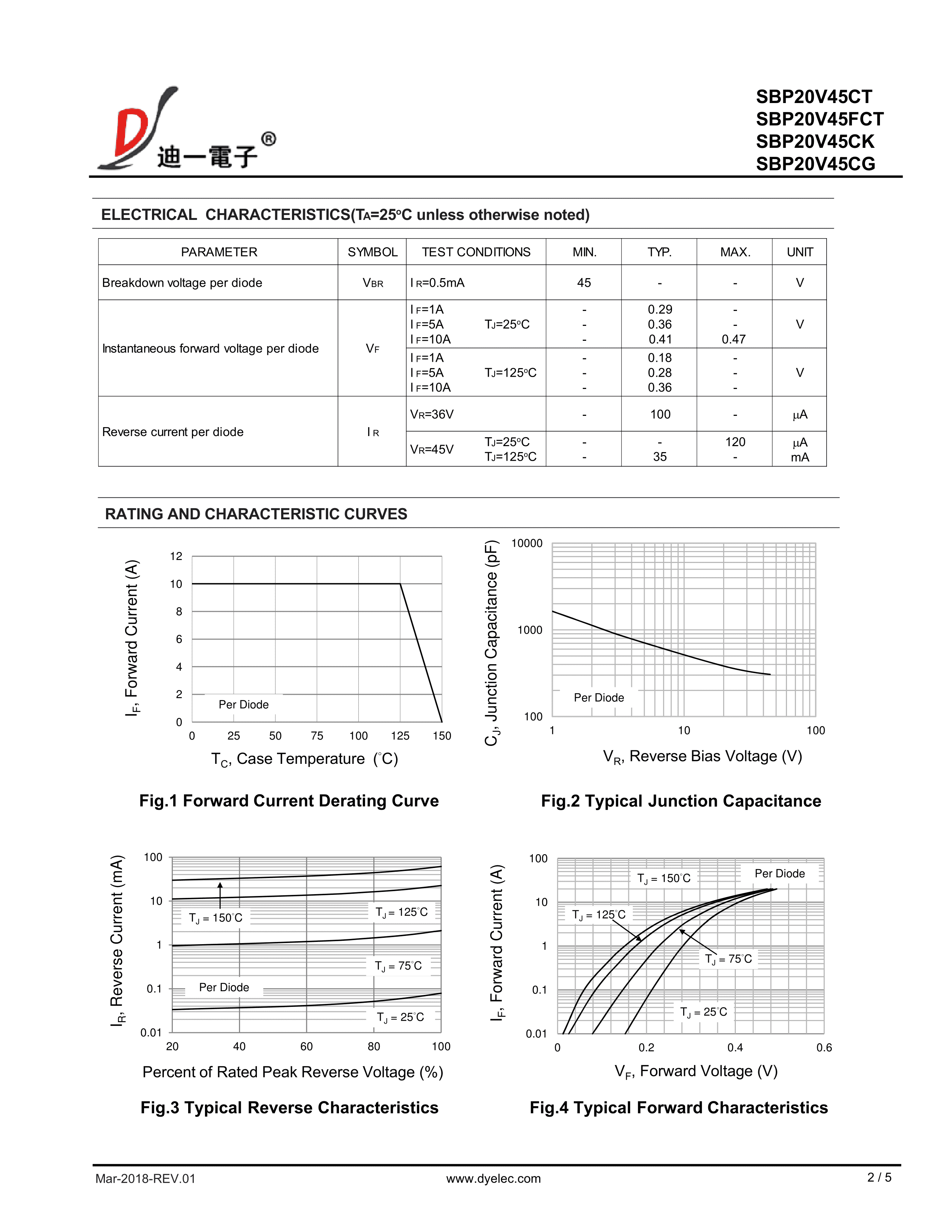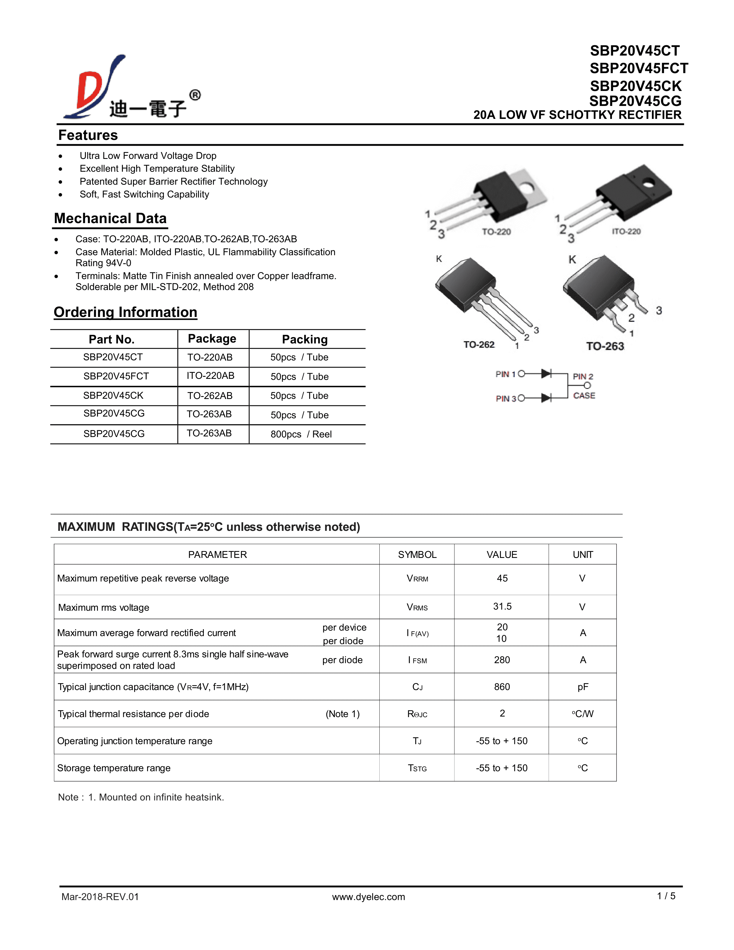 SBP20V45FCT数据手册ITO-220AB封装迪一PDF规格书,中英文下载