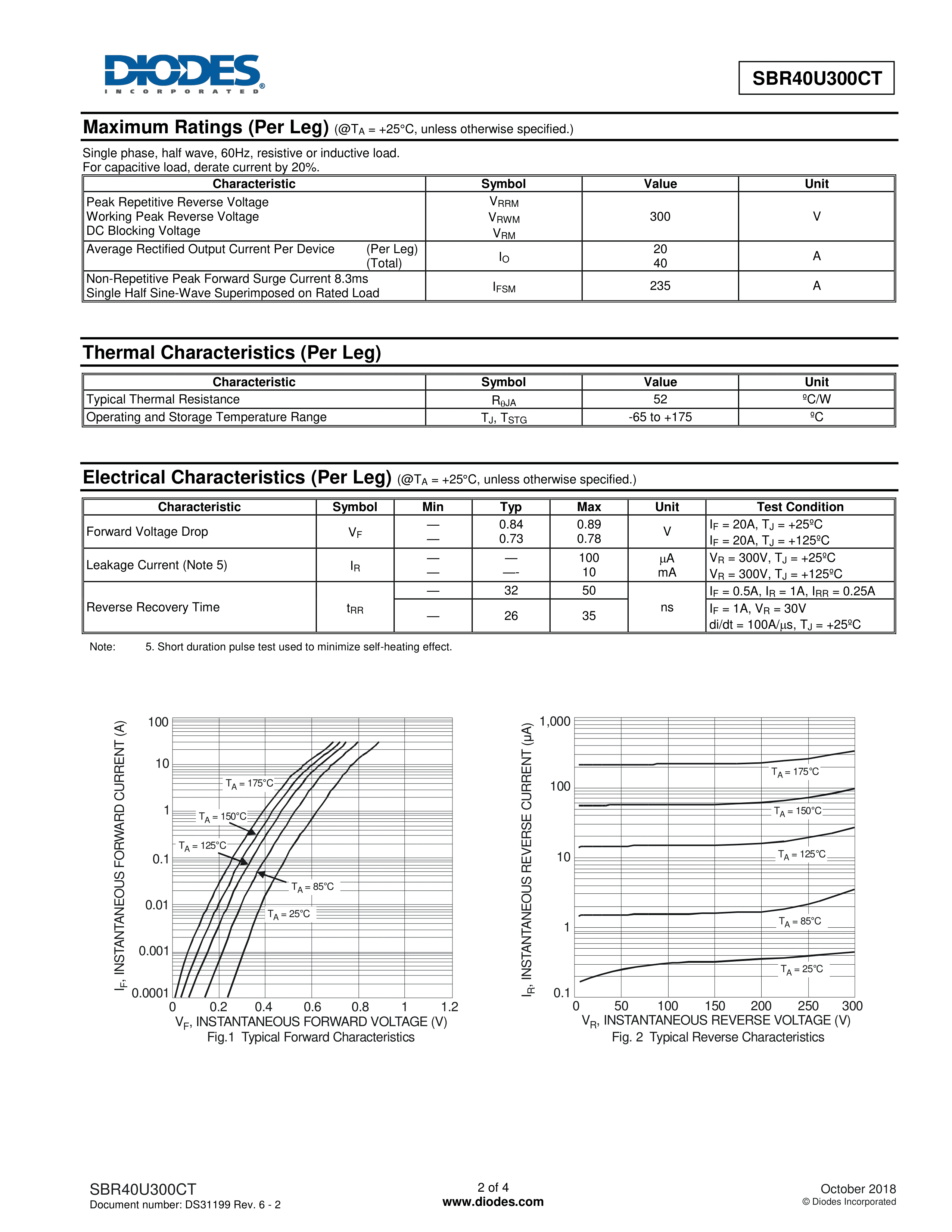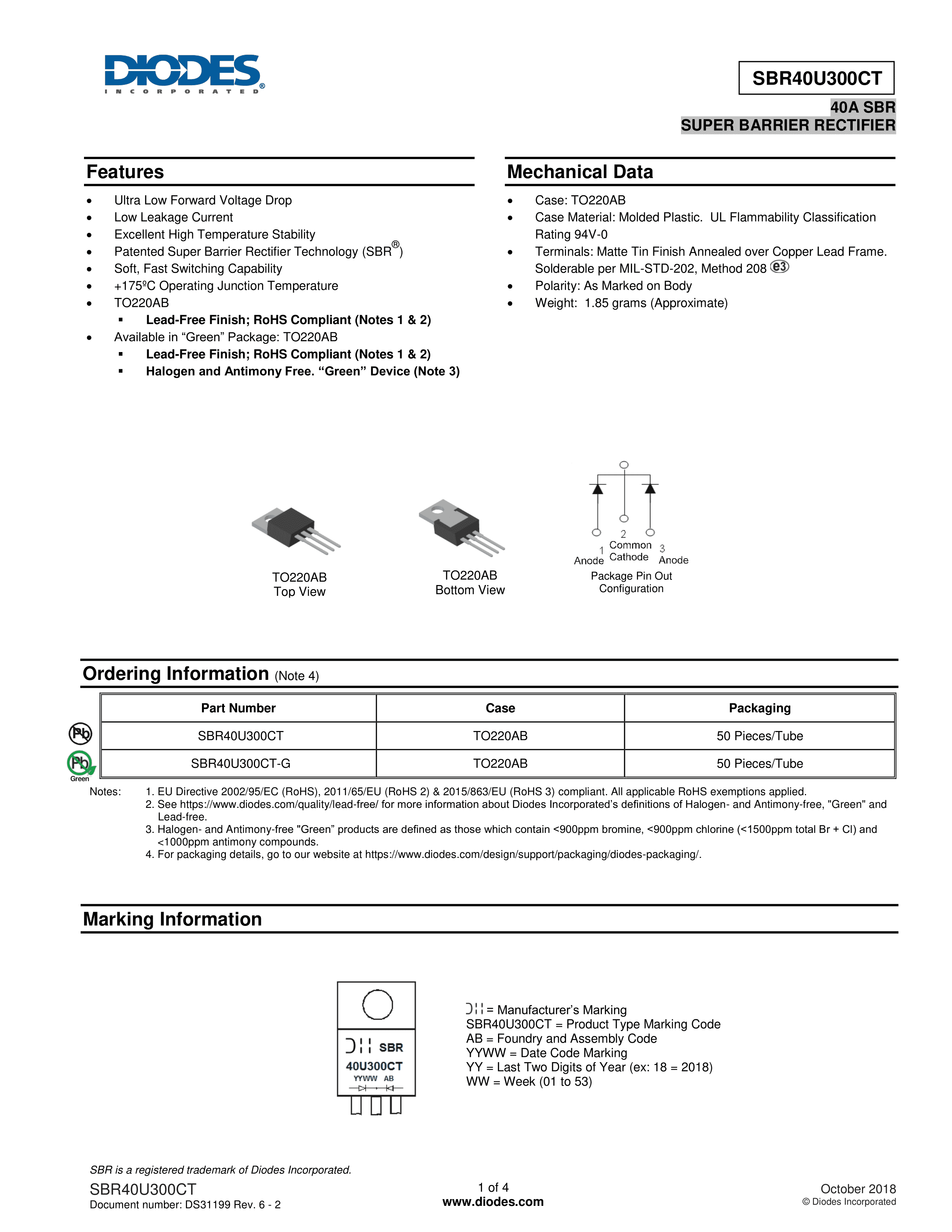 SBR40U300CT数据手册TO-220AB封装DIODES(美台)PDF规格书,中英文下载
