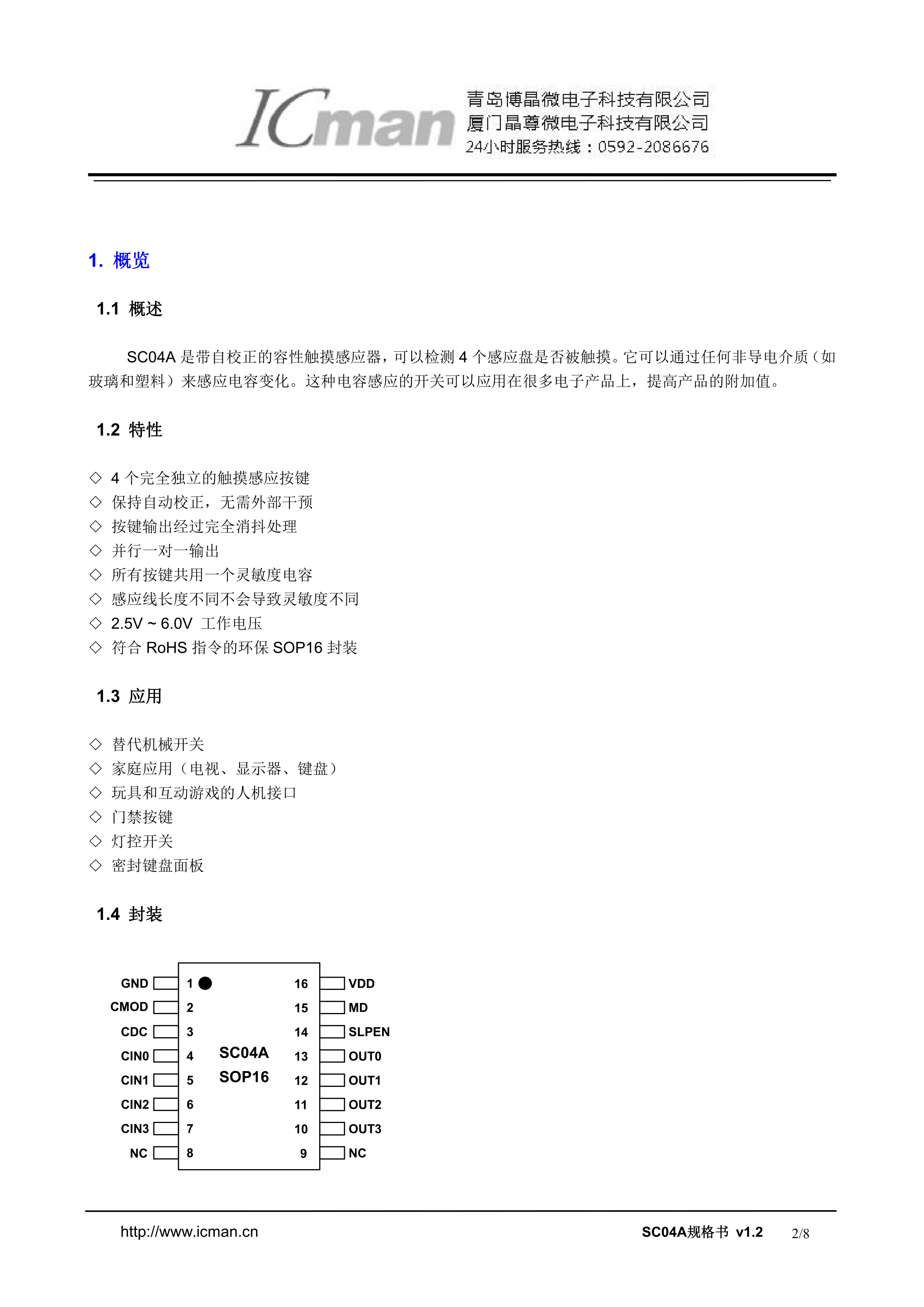 SC04A数据手册SOP-16_150mil封装icman(晶尊微)PDF规格书,中英文下载