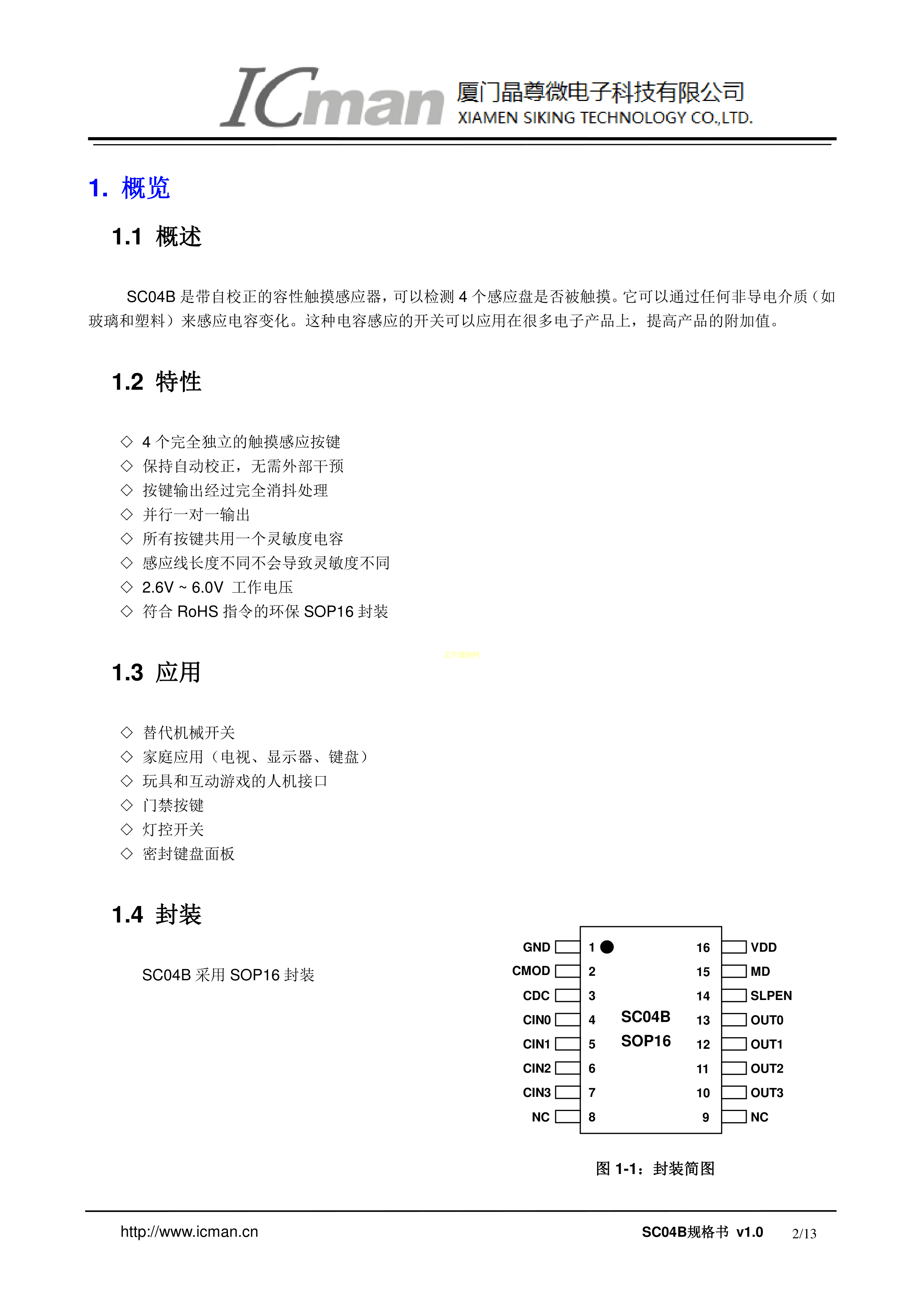 SC04B数据手册SOP-16封装icman(晶尊微)PDF规格书,中英文下载
