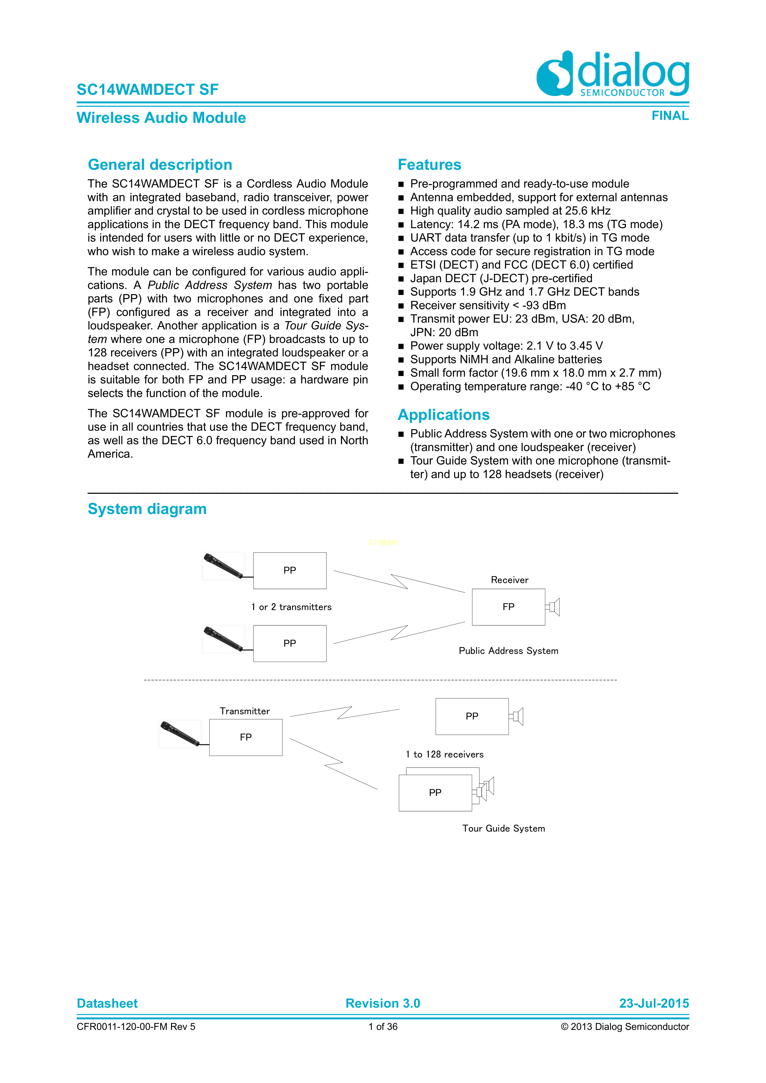 SC14WAMDECT-SF01T数据手册Module封装Dialog-SemiconductorP
