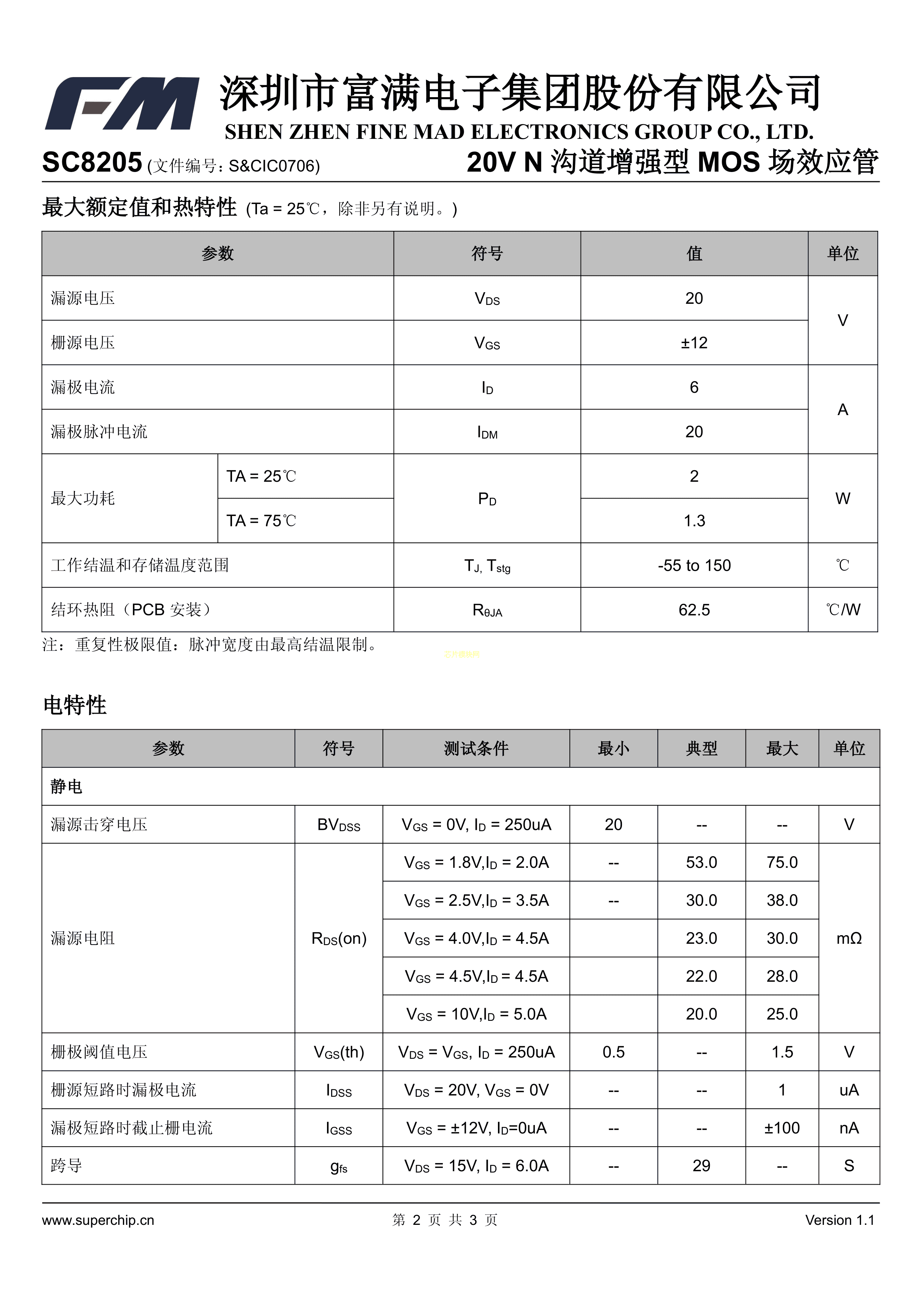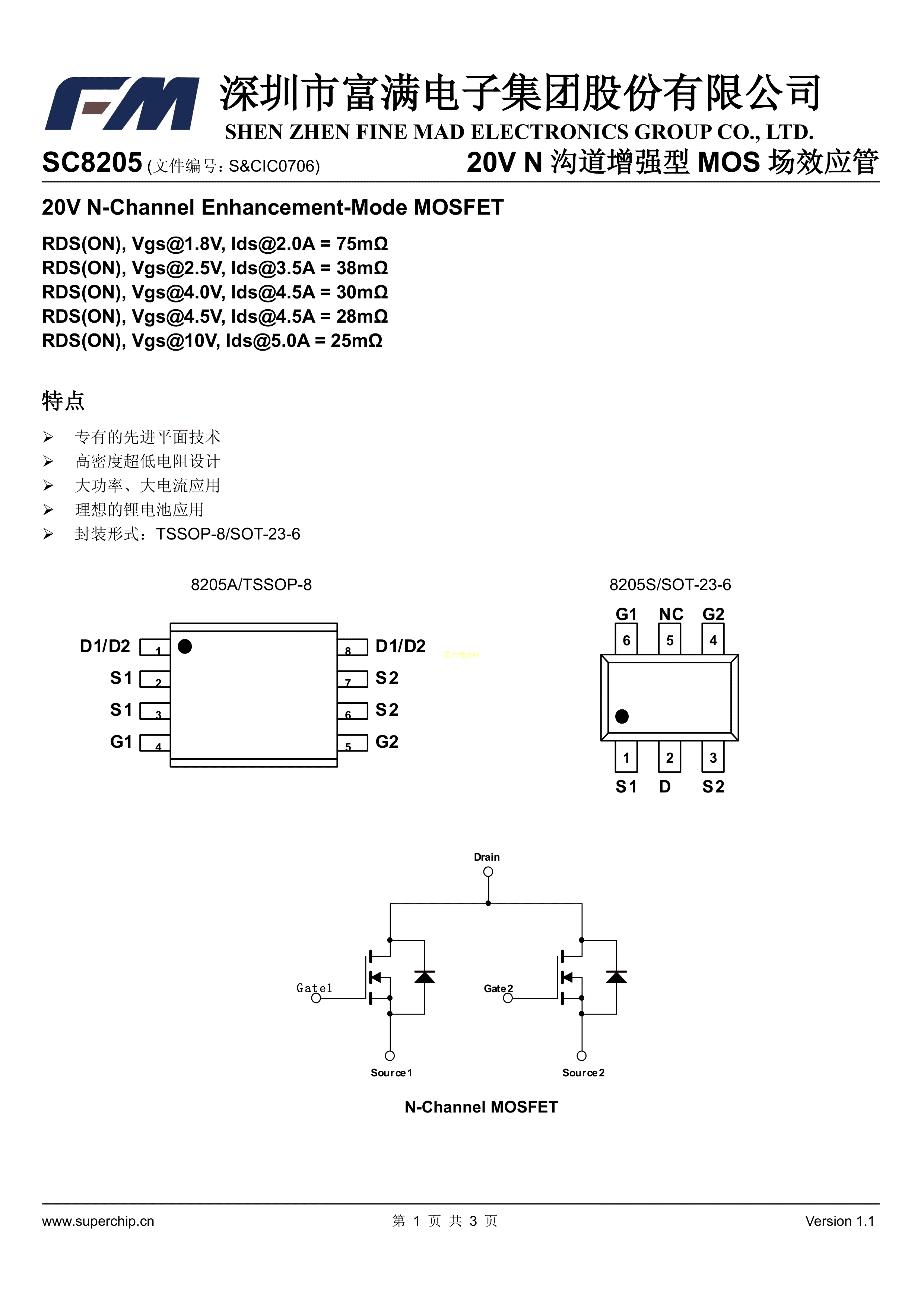 SC8205A数据手册TSSOP-8(3x4.4x0.65)封装FM(富满)PDF规格书,中英文下载