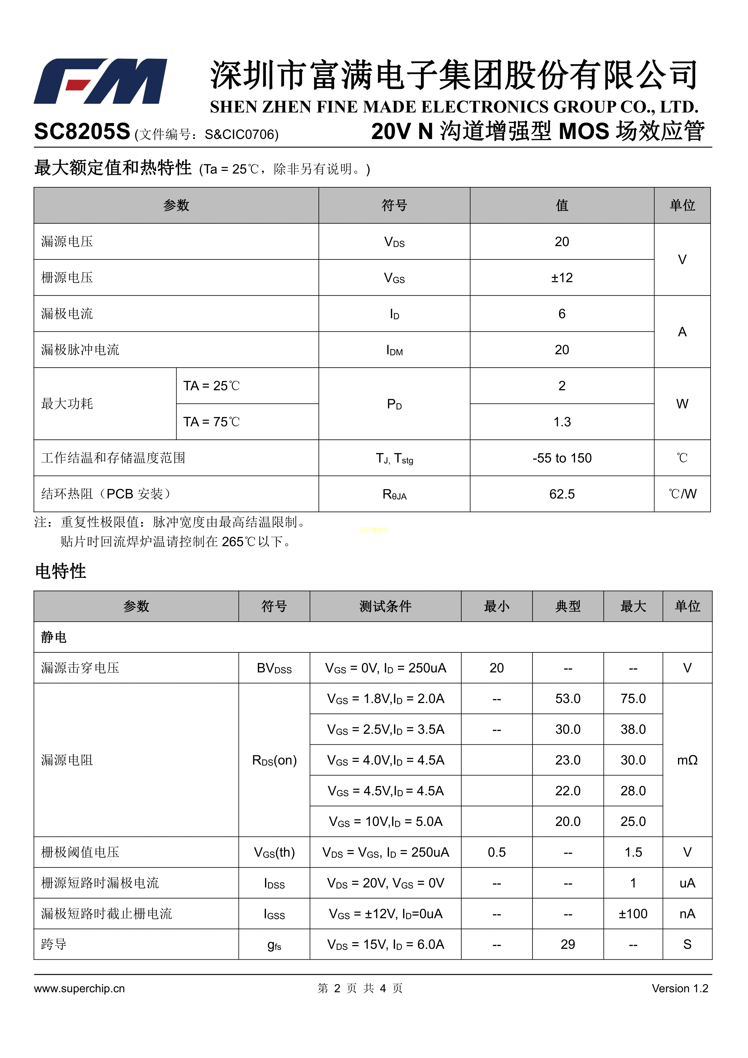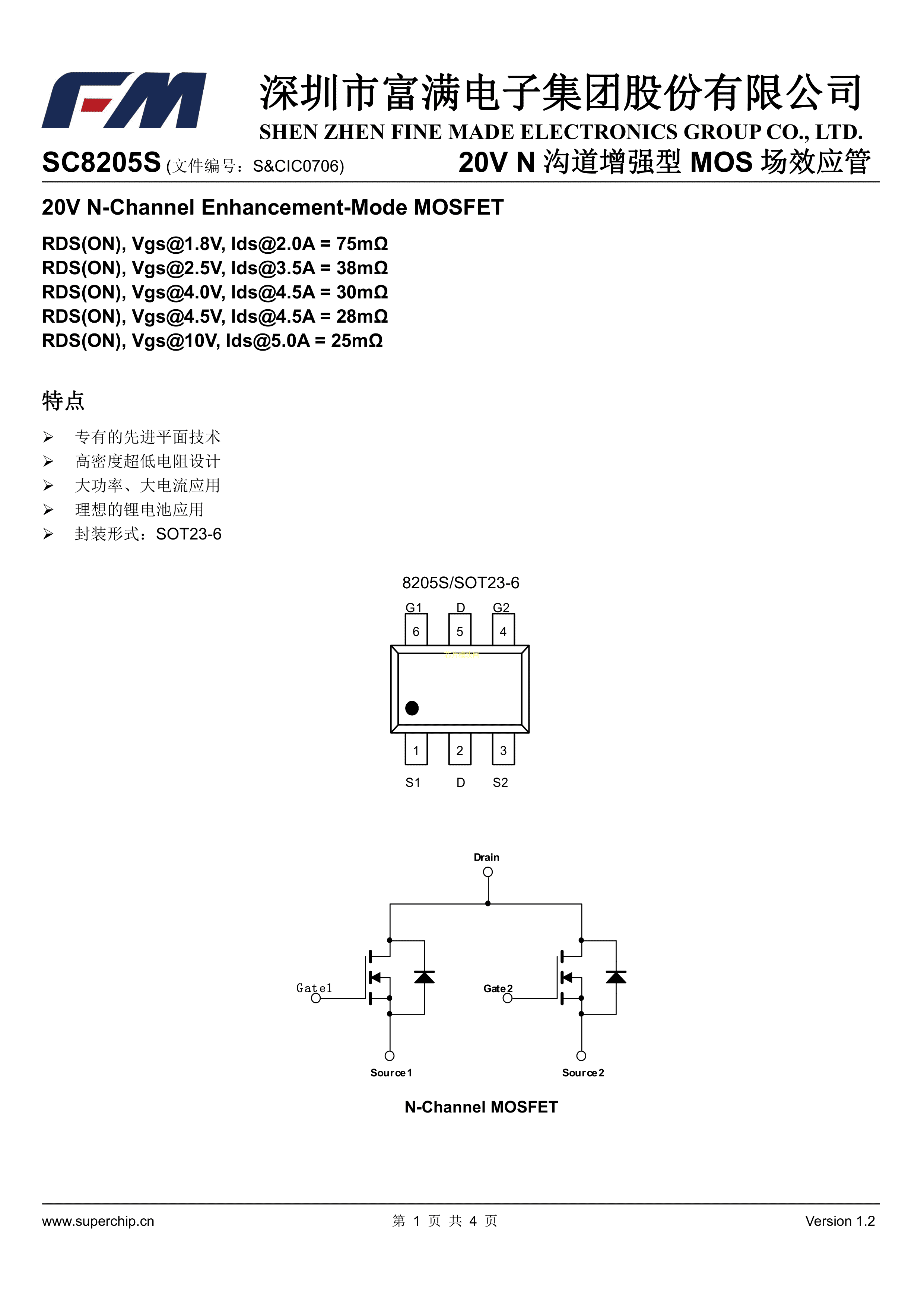 SC8205S数据手册SOT-23-6封装FM(富满)PDF规格书,中英文下载