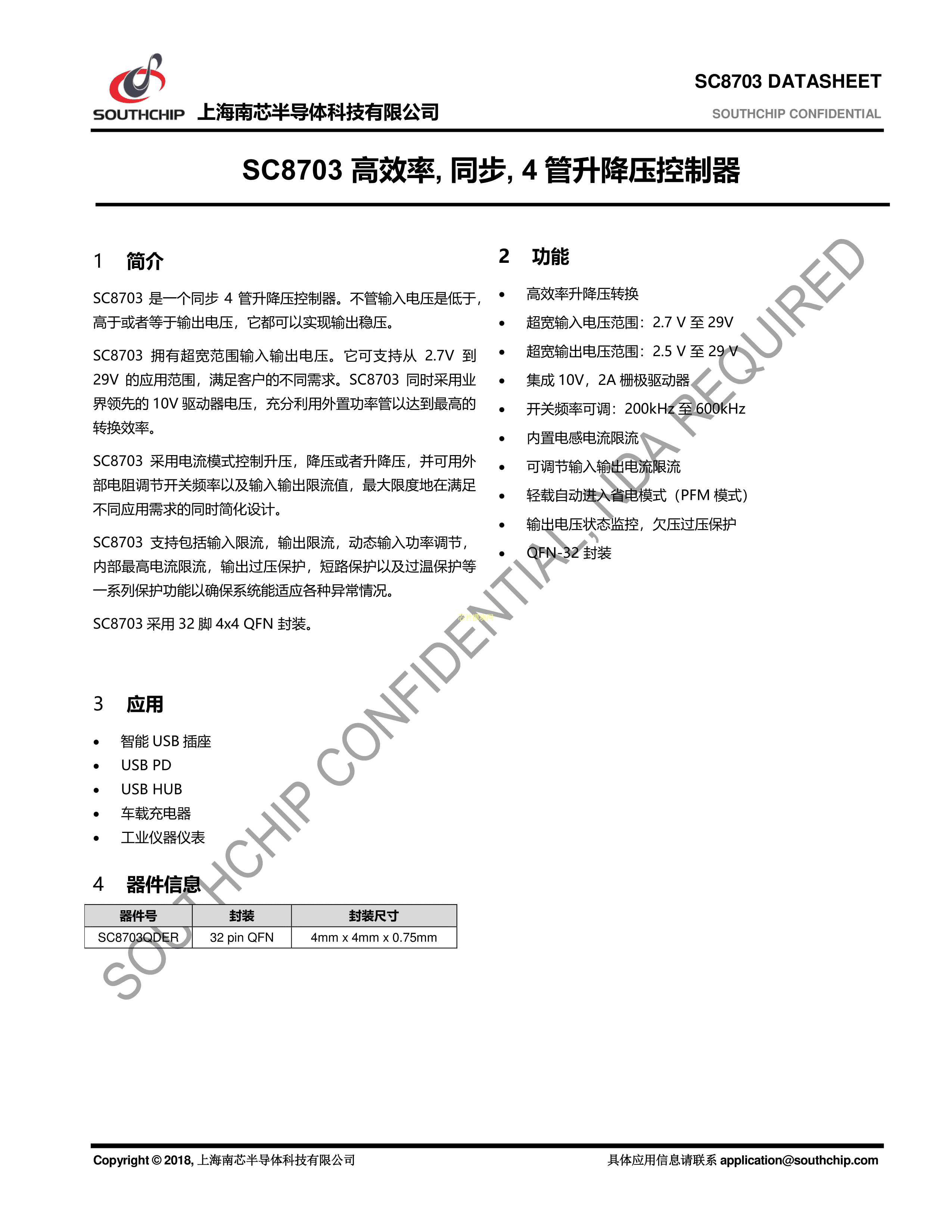 SC8703QDER数据手册QFN-32封装SOUTHCHIP(南芯)PDF规格书,中英文下载