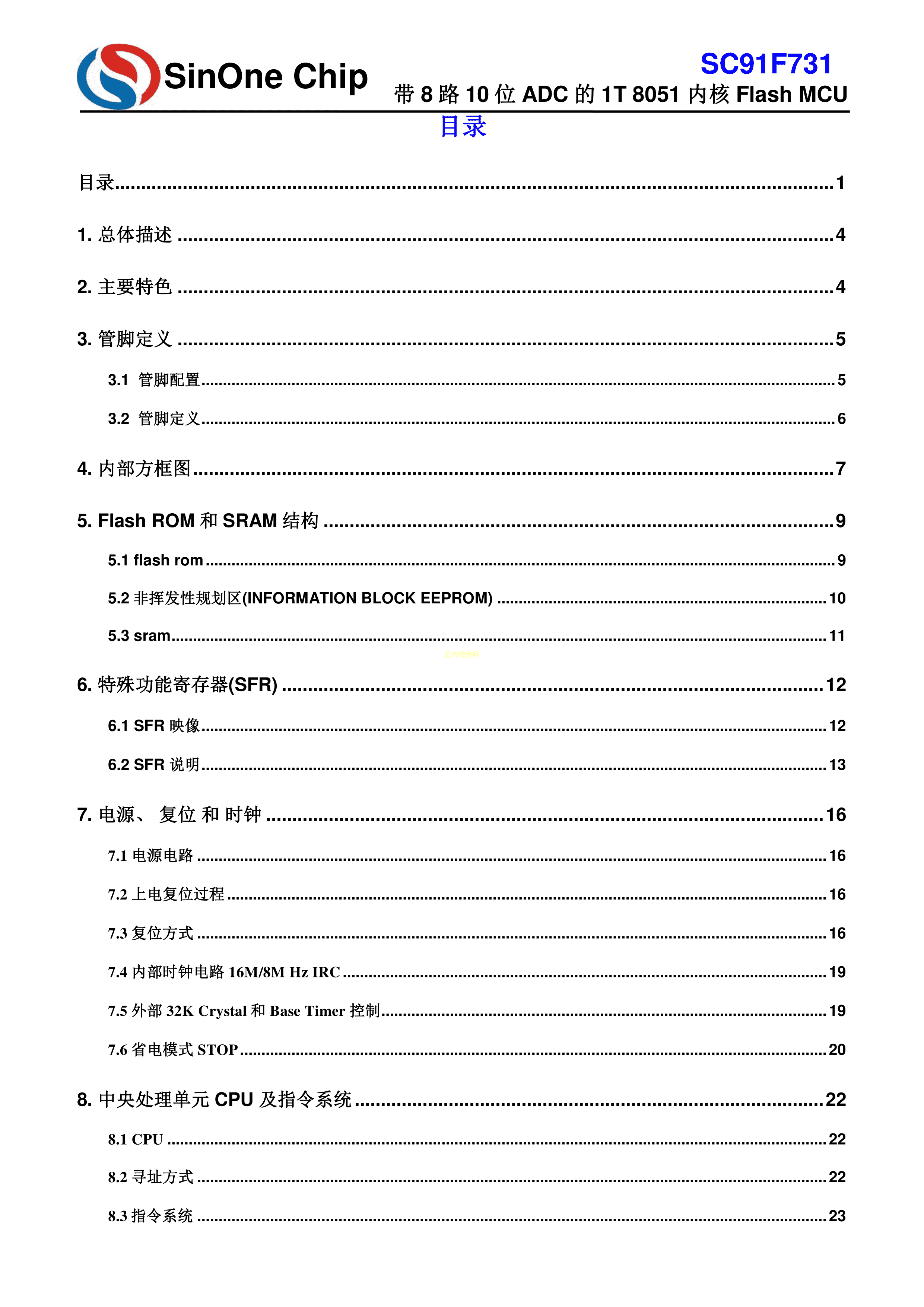 SC91F731M20U数据手册SOP-20封装SOC(赛元)PDF规格书,中英文下载