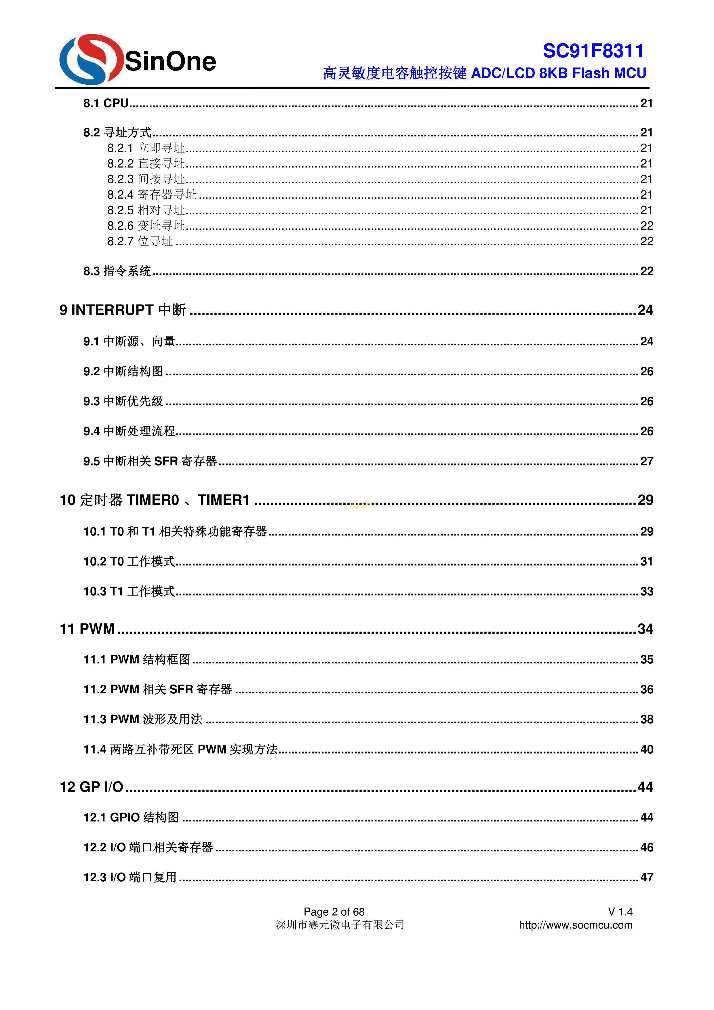 SC91F8311M16U数据手册SOP-16封装SOC(赛元)PDF规格书,中英文下载