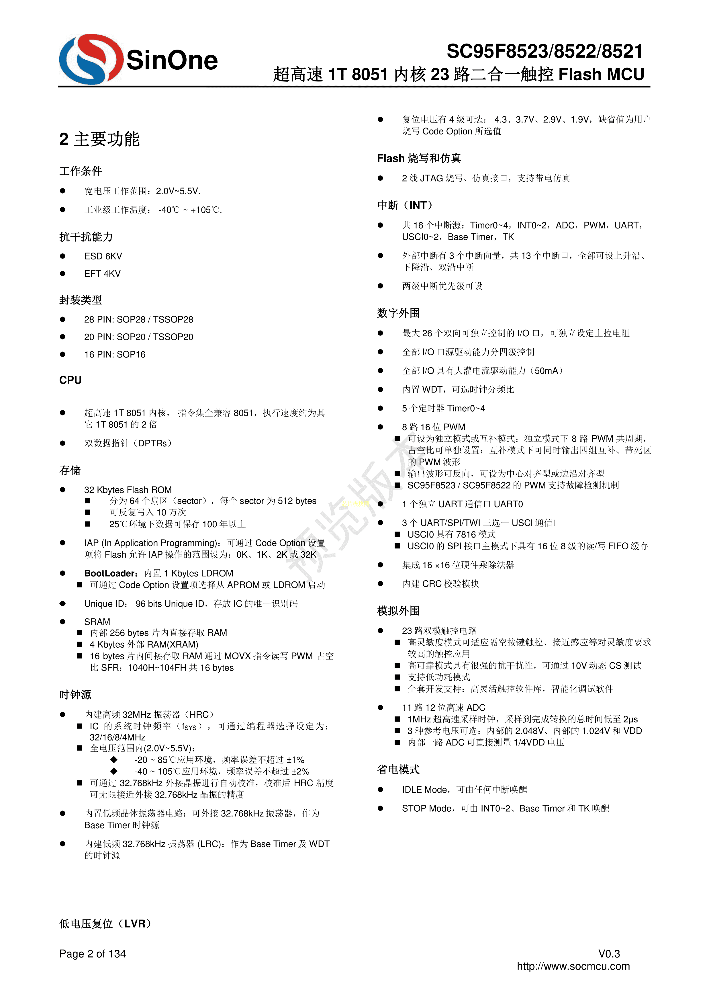 SC95F8523M28U数据手册SOP28封装SOC(赛元)PDF规格书,中英文下载