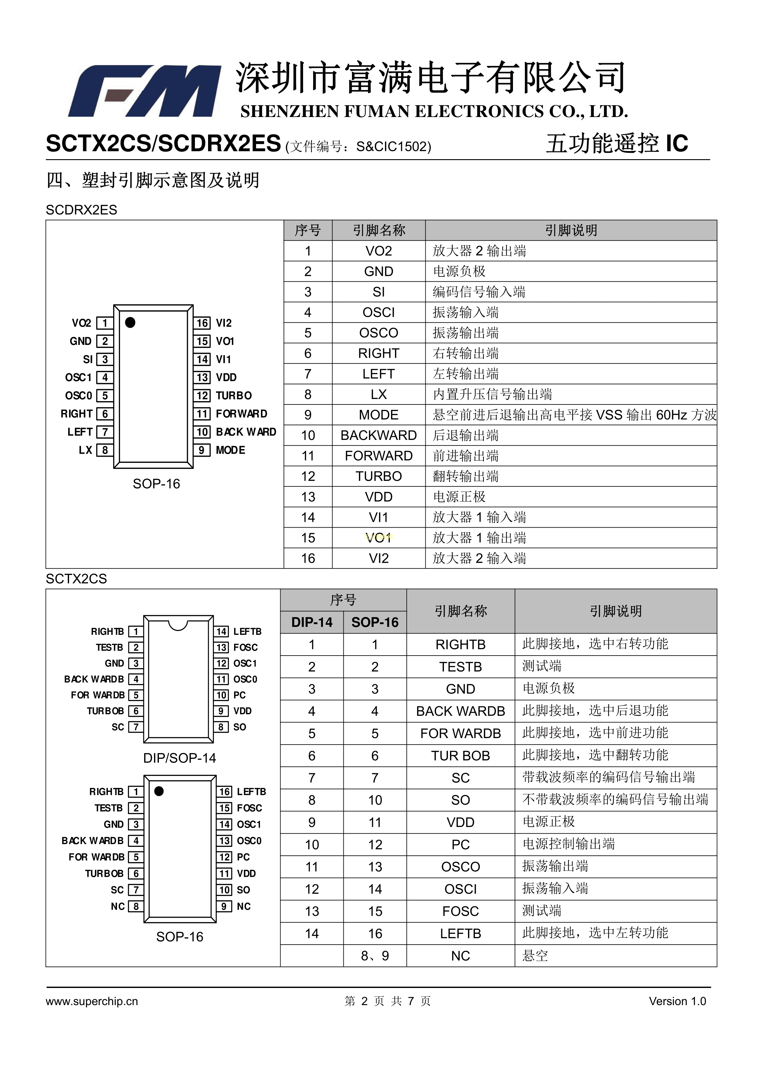 SCDRX2ES数据手册SOP-16封装FM(富满)PDF规格书,中英文下载