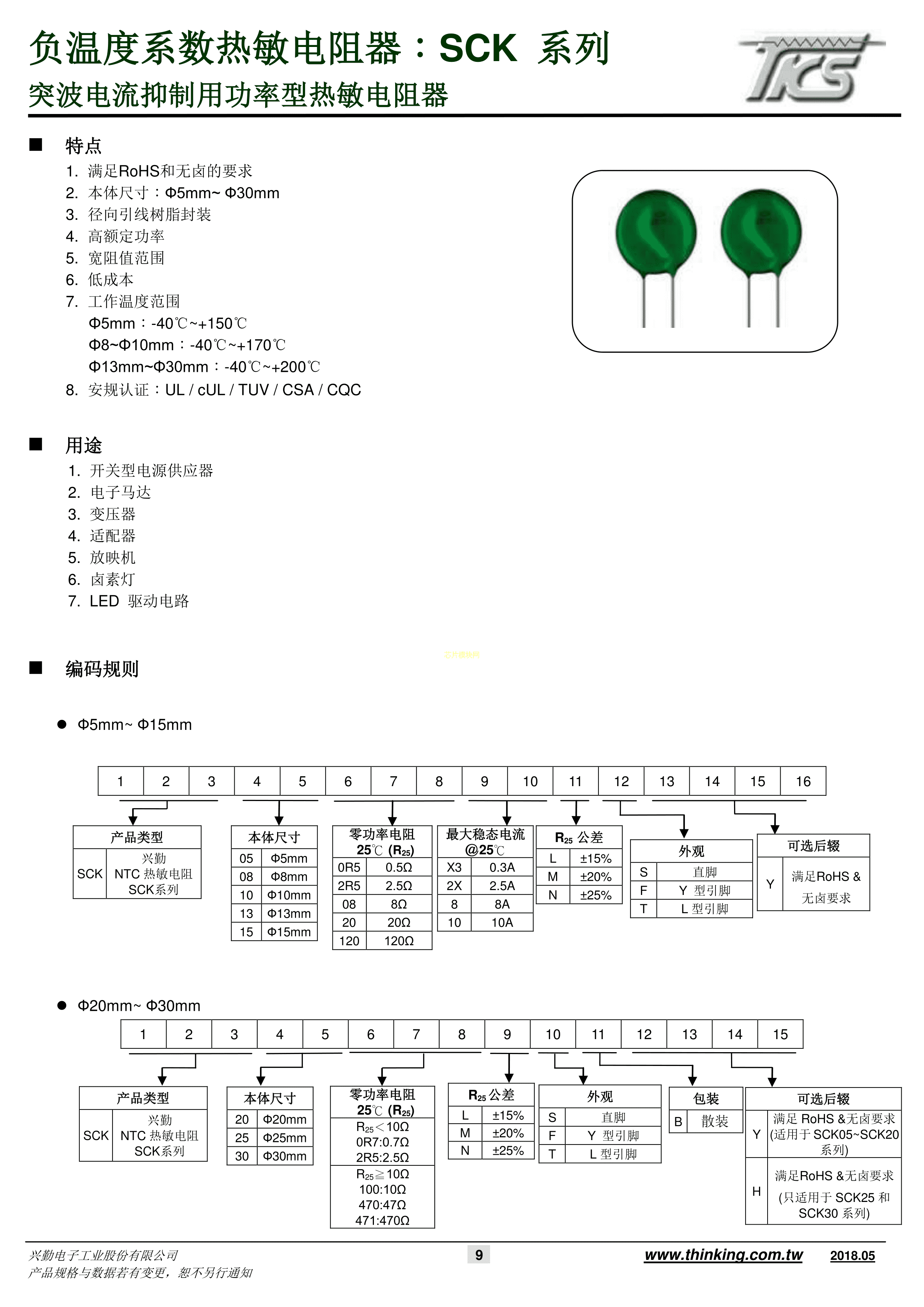 SCK10801数据手册径向引线封装TKS(兴勤)PDF规格书,中英文下载
