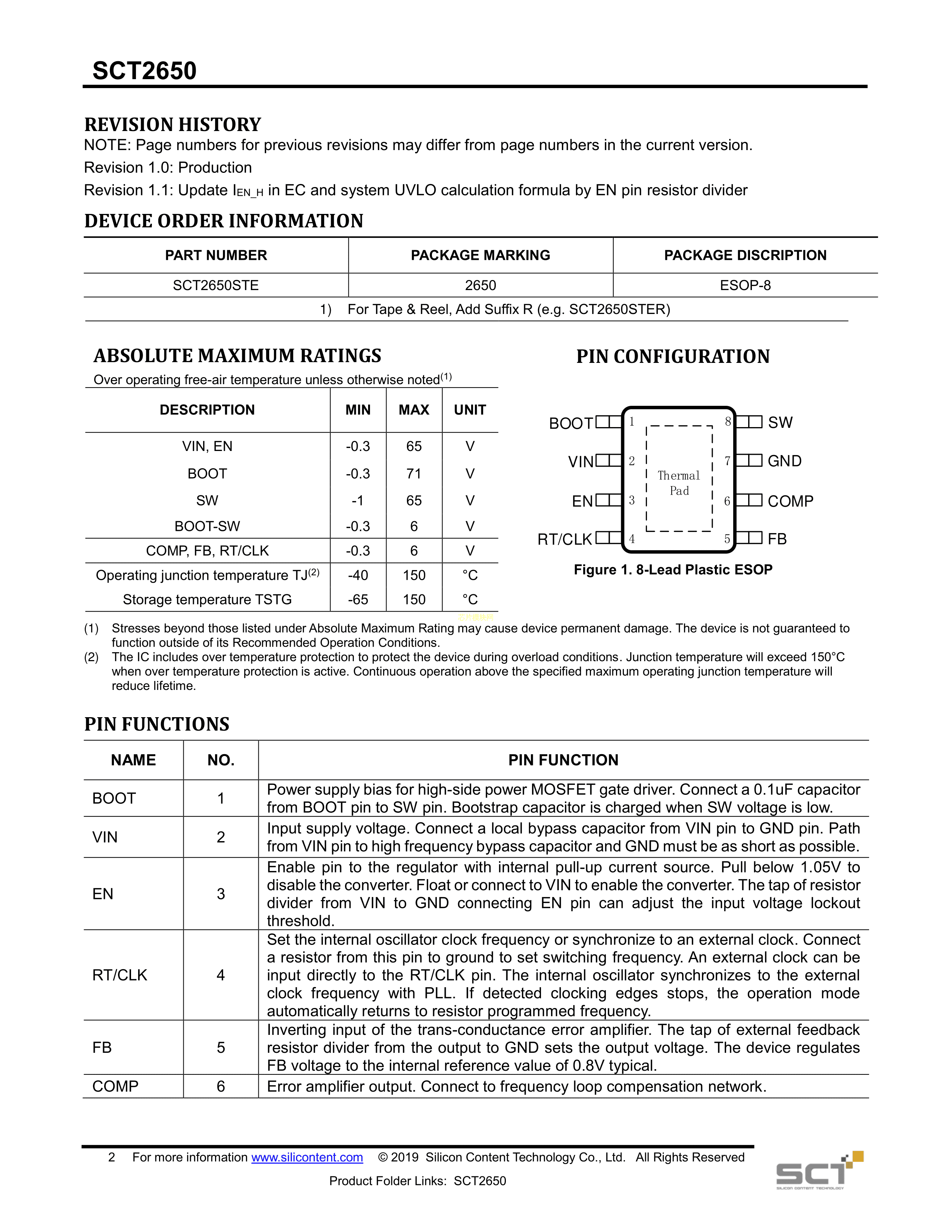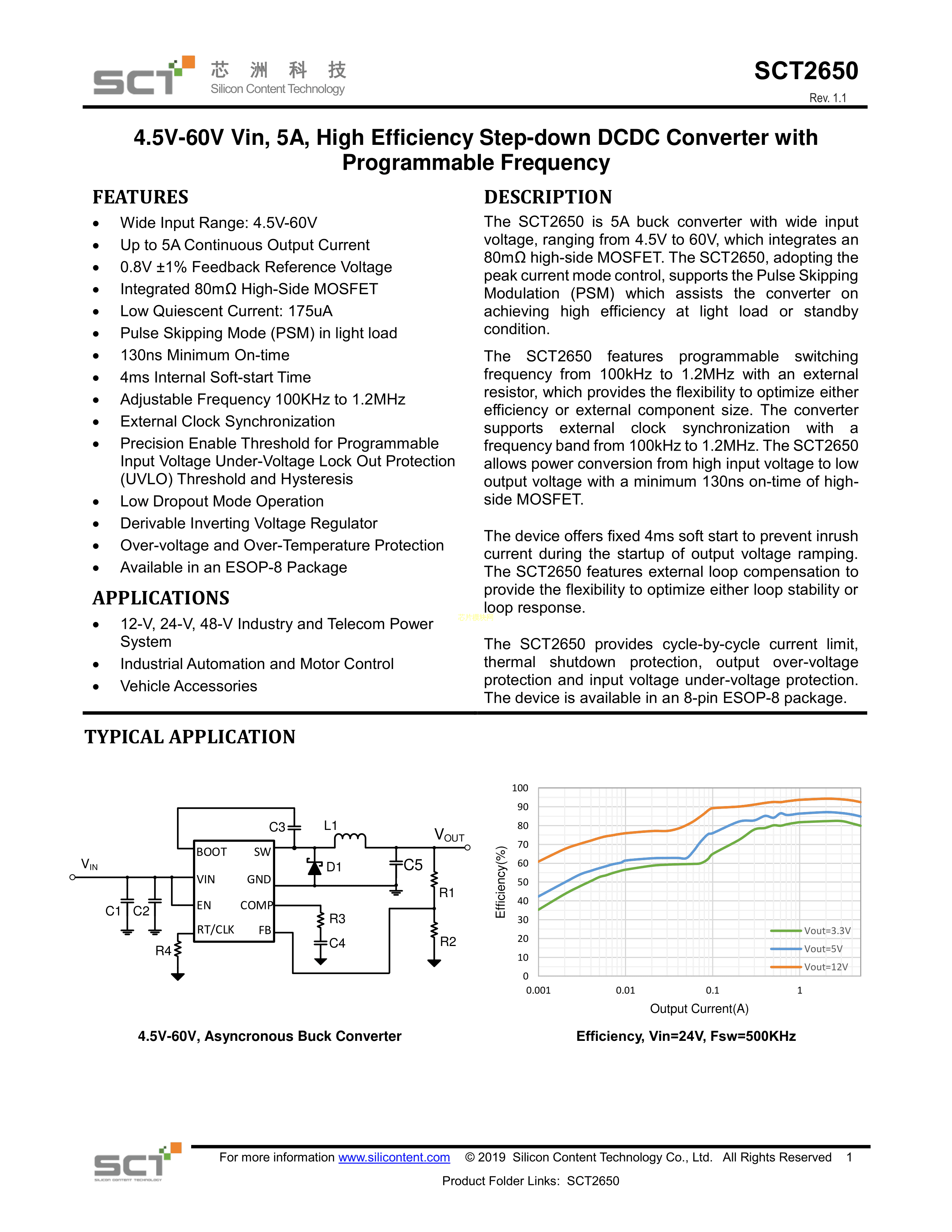 SCT2650STER数据手册ESOP-8封装SCT(芯洲科技)PDF规格书,中英文下载