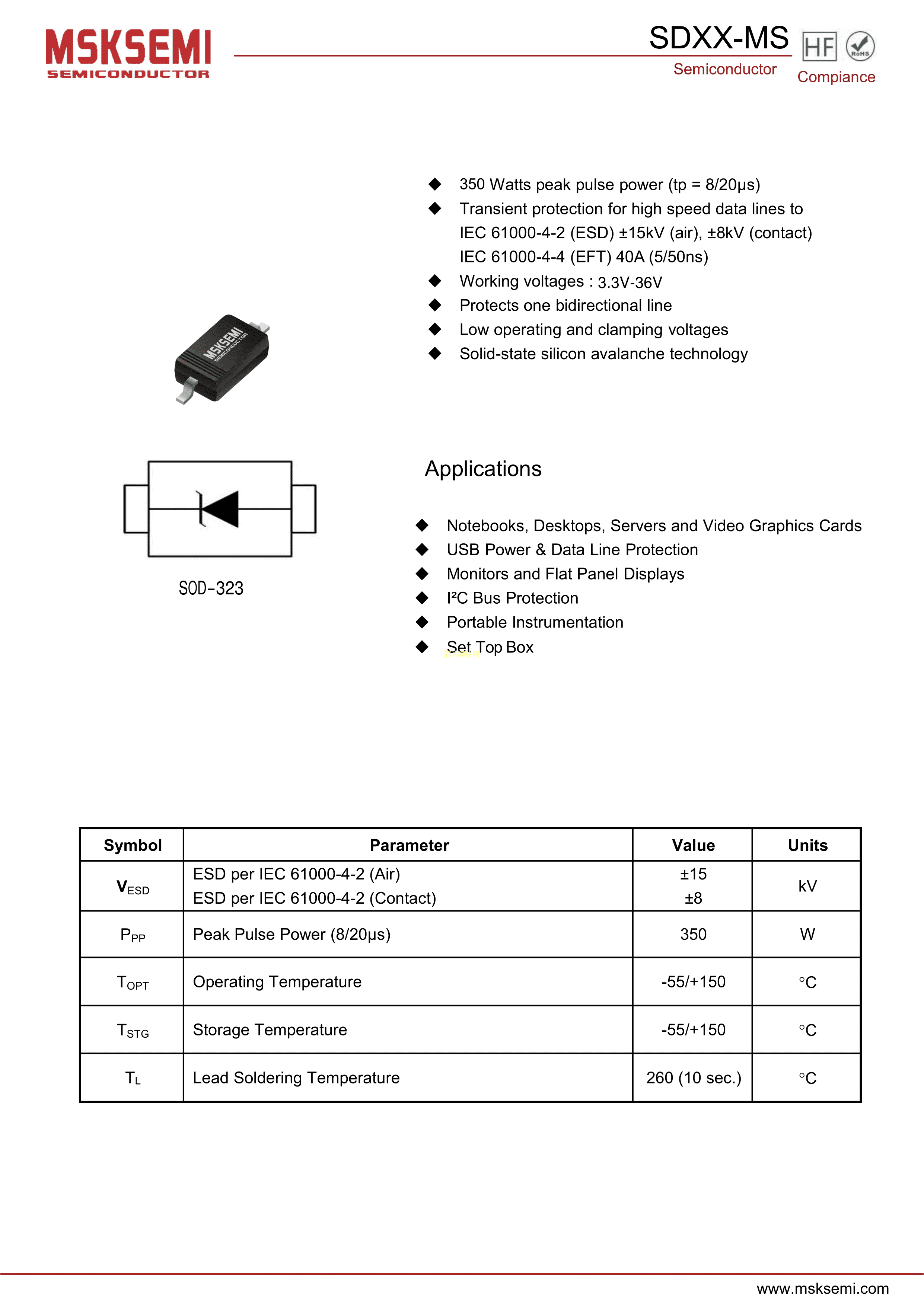 SD18-MS数据手册SOD-323封装MSKSEMI(美森科)PDF规格书,中英文下载